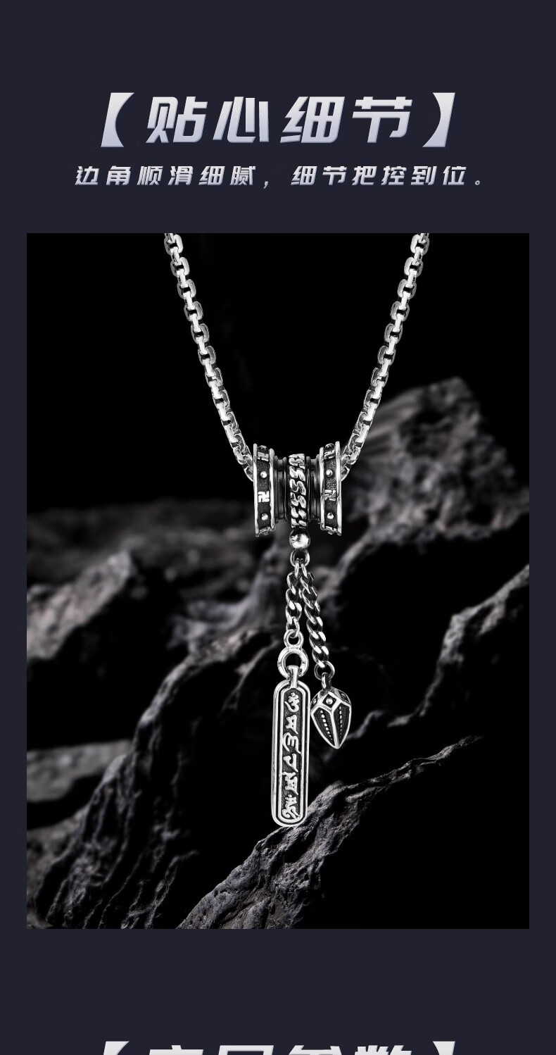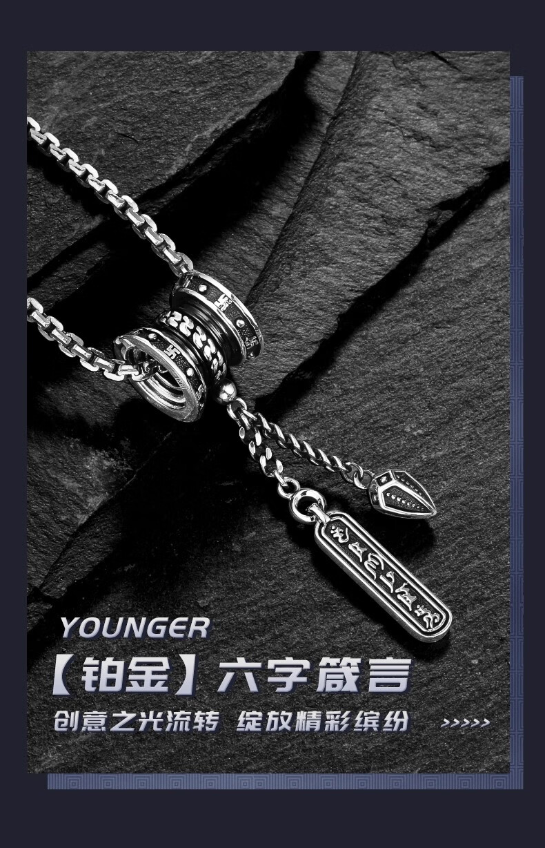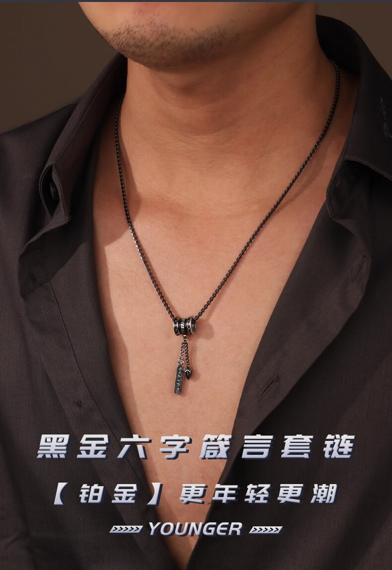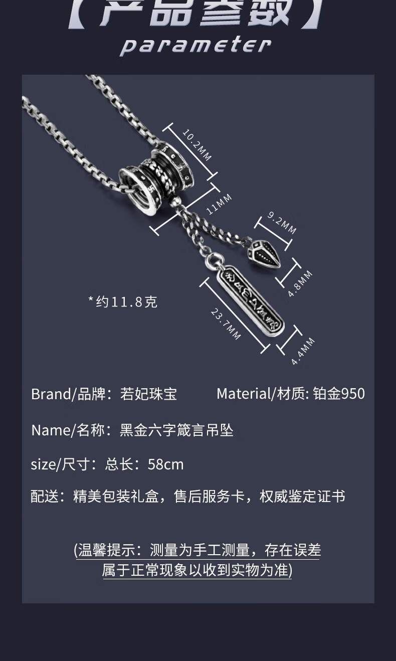 Ruofei platinum necklace men's pt950 dazzling black gold men's chain set personality trendy brand platinum necklace men's six-word motto necklace dazzling black gold six-word motto pendant 11-12g