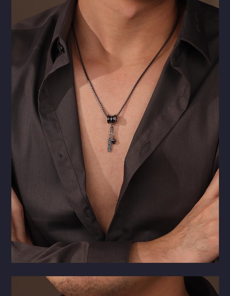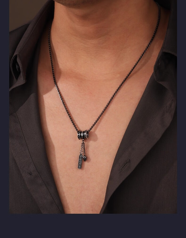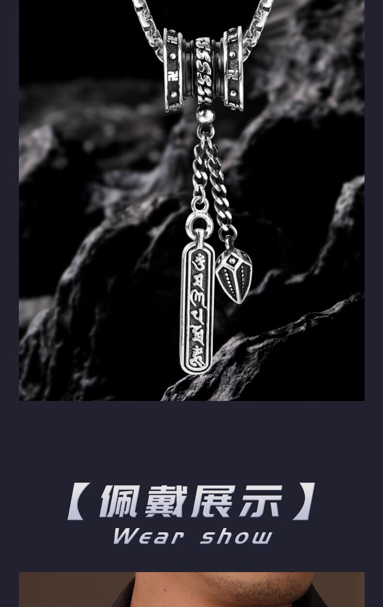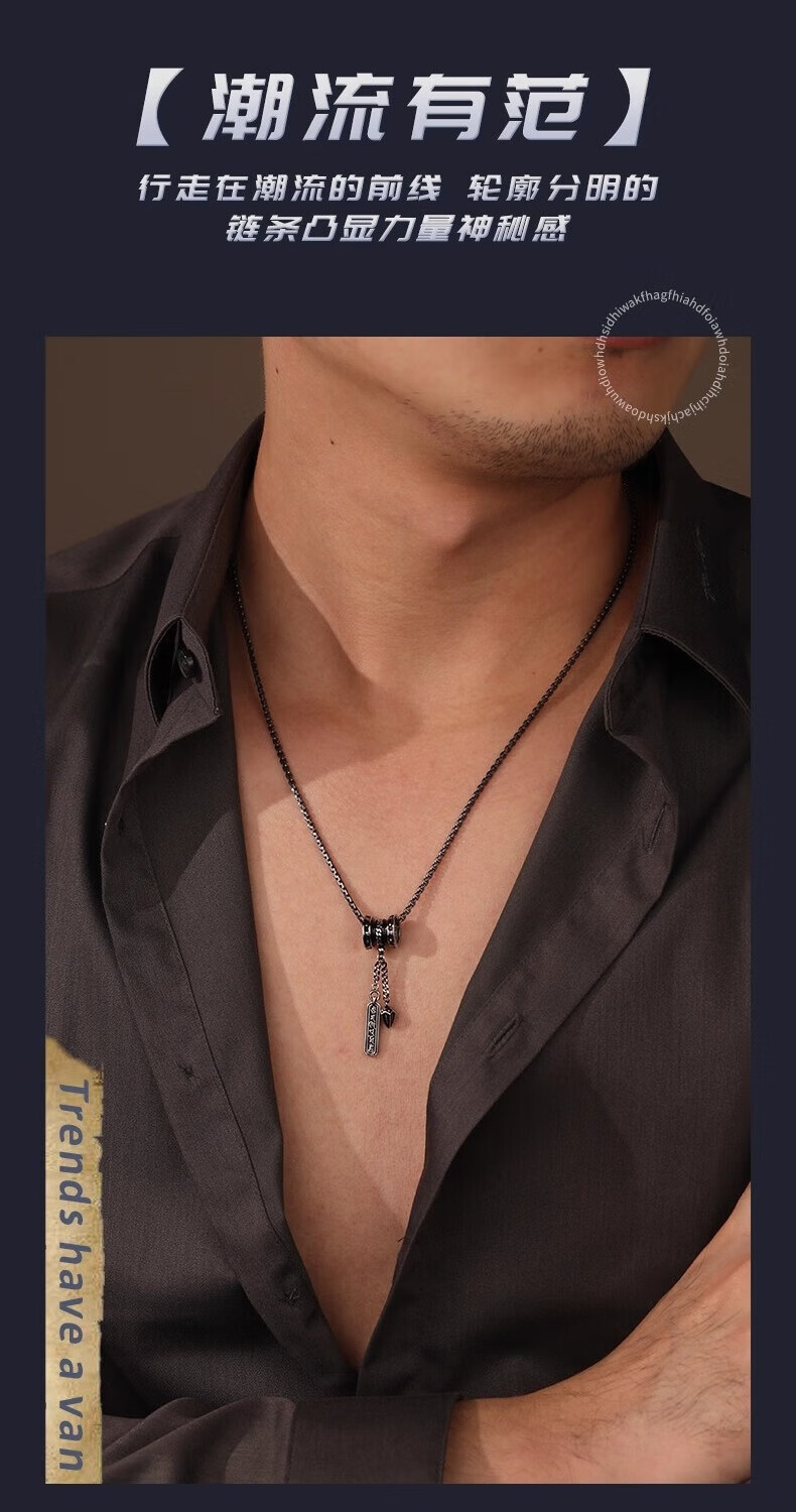 Ruofei platinum necklace men's pt950 dazzling black gold men's chain set personality trendy brand platinum necklace men's six-word motto necklace dazzling black gold six-word motto pendant 11-12g