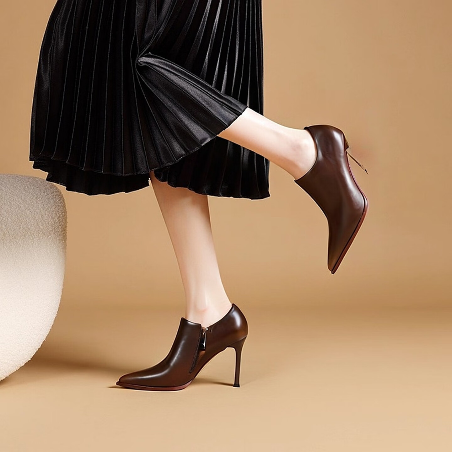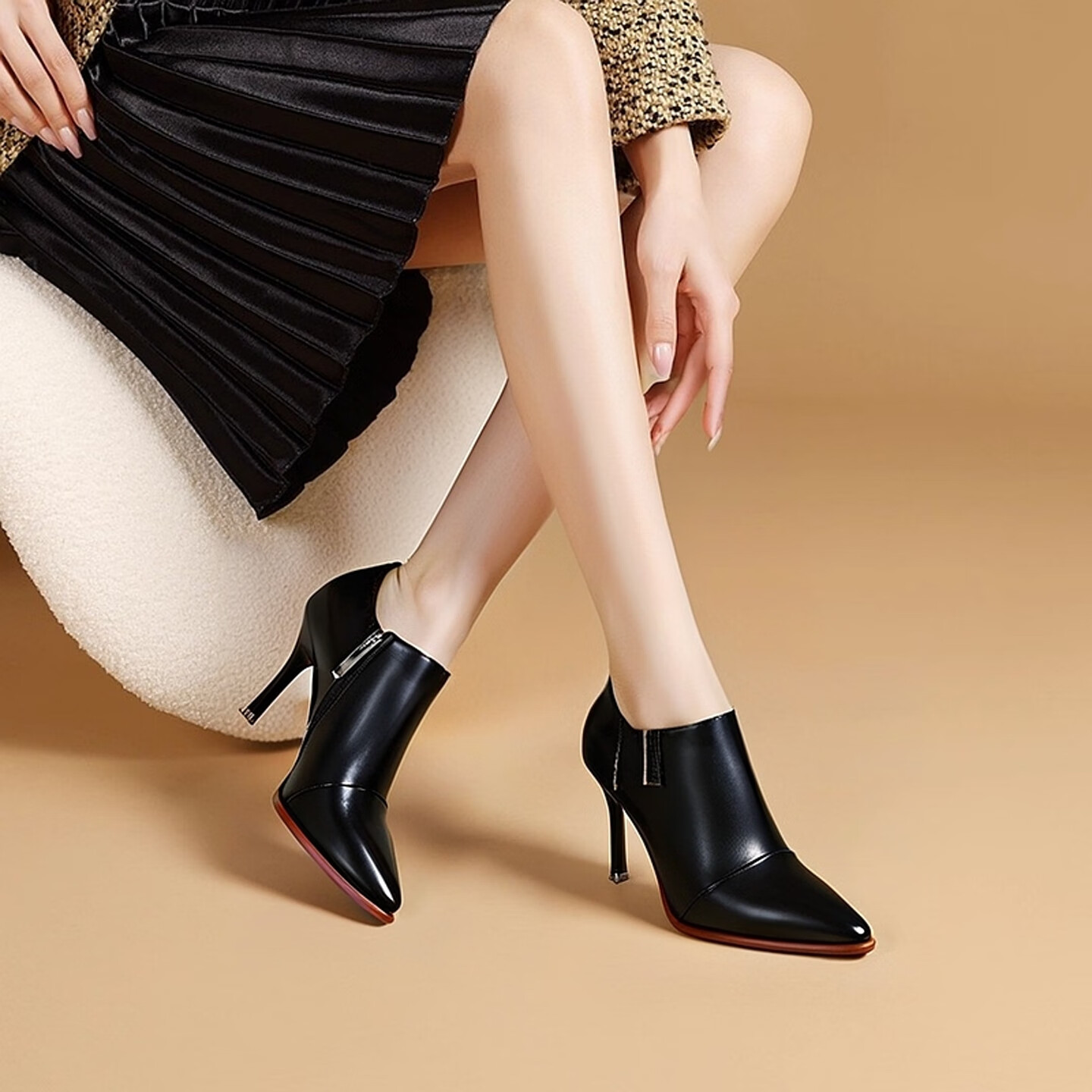 SECHILOUIS brand pointed toe super high heel ankle boots for women 2025 autumn new versatile slimming French deep mouth stiletto shoes black 37