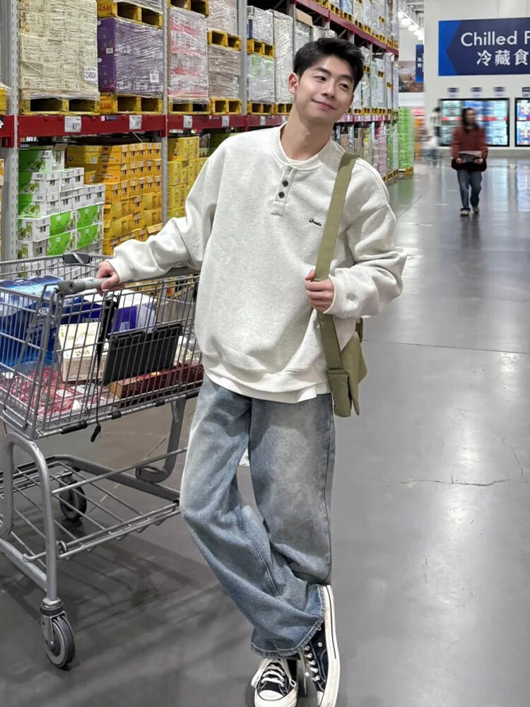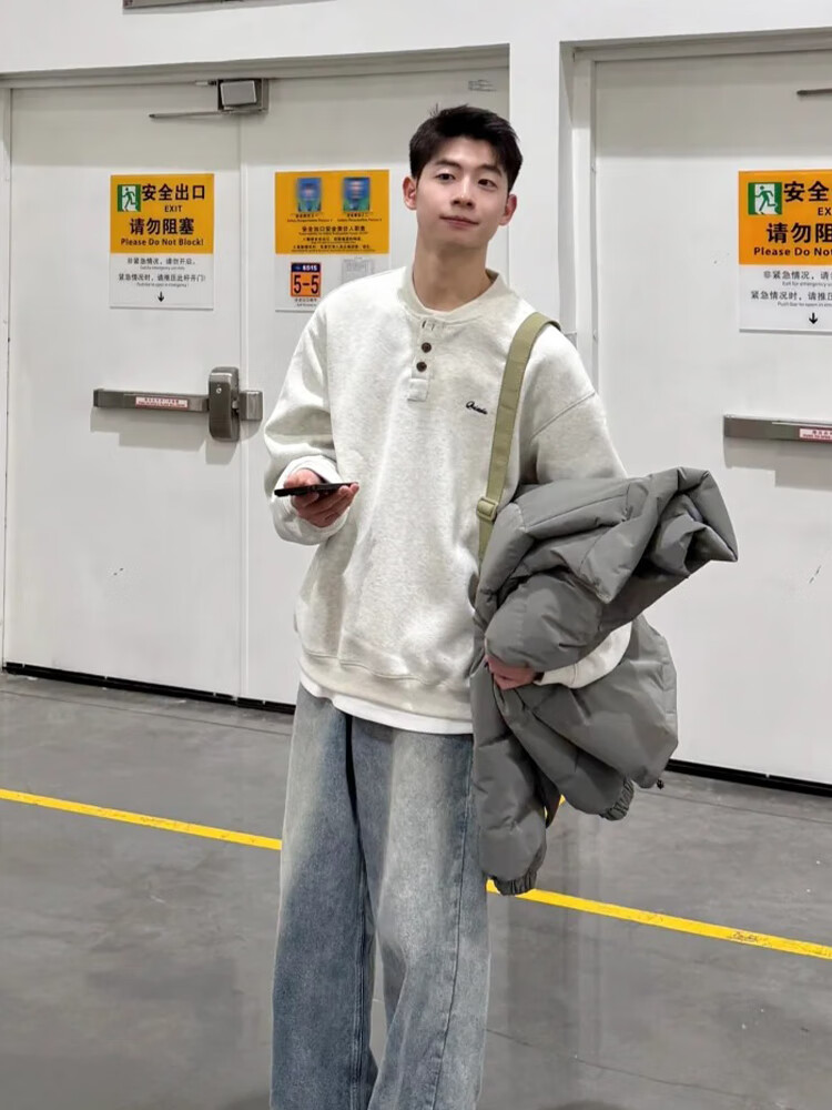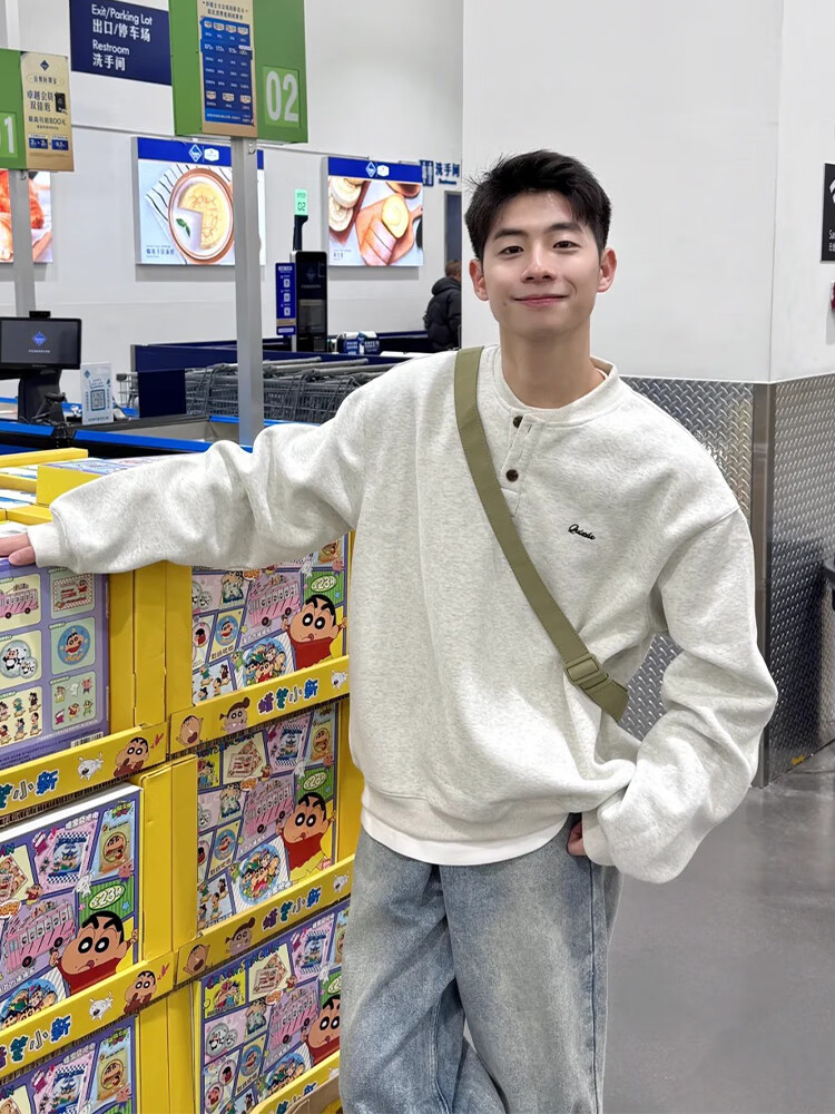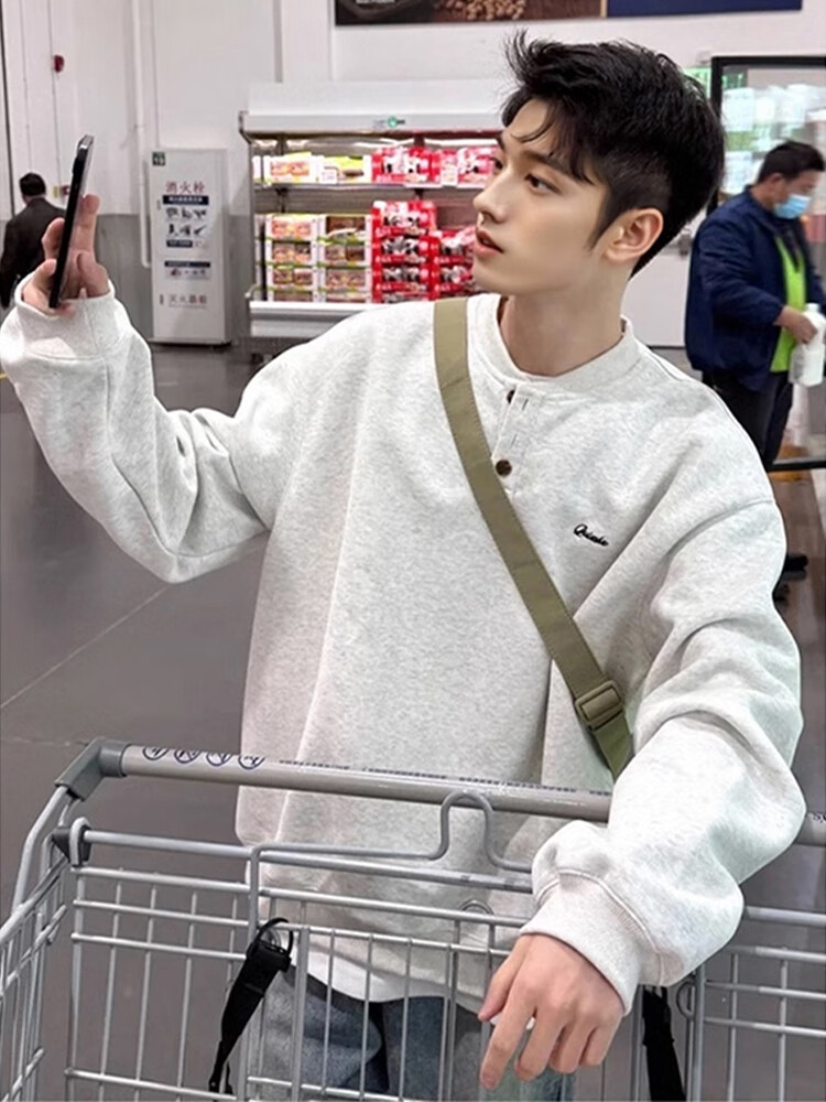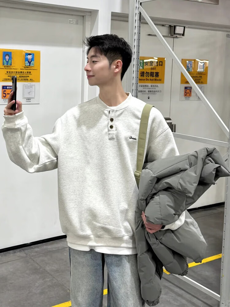 JEEP SPIRIT Henry collar sweatshirt men's spring and autumn hoodless American cleanfit bottoming shirt loose trendy long-sleeved T-shirt with spring dark gray upgraded model XL 130 to 145Jin Jin equals 0.5 kg can be worn