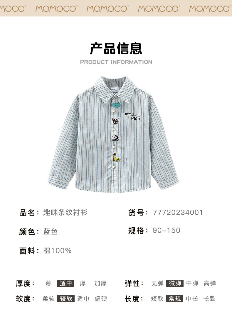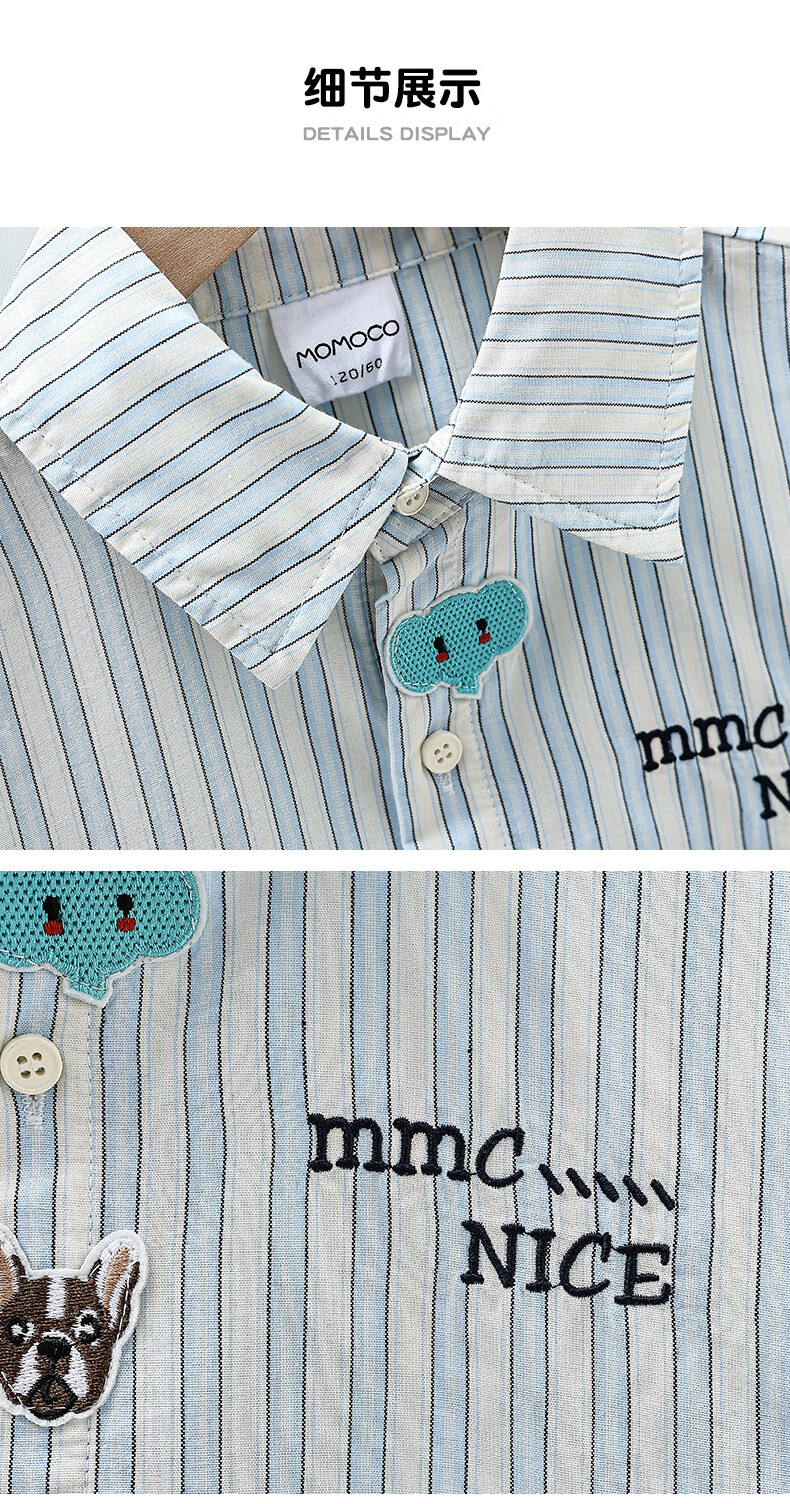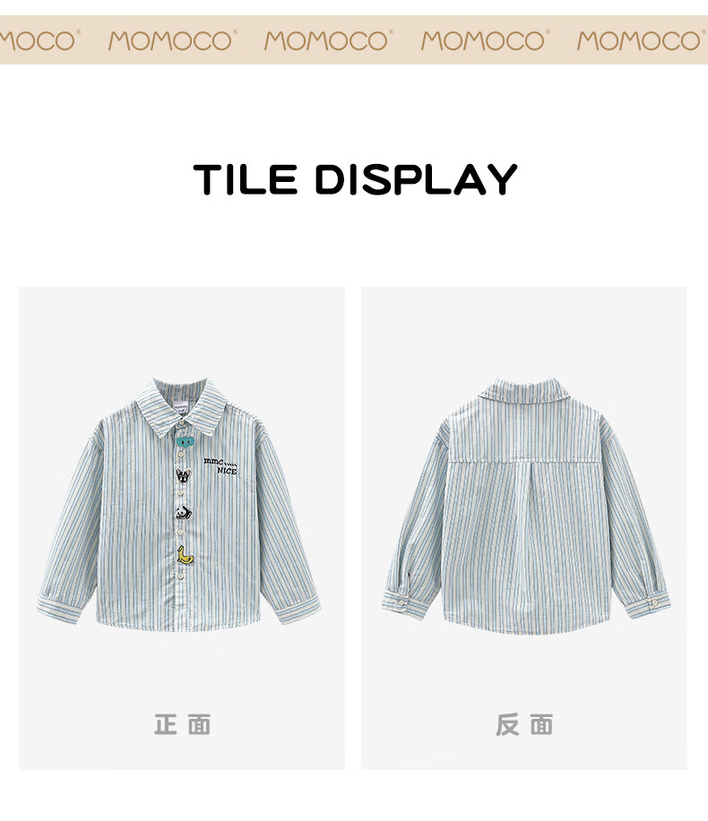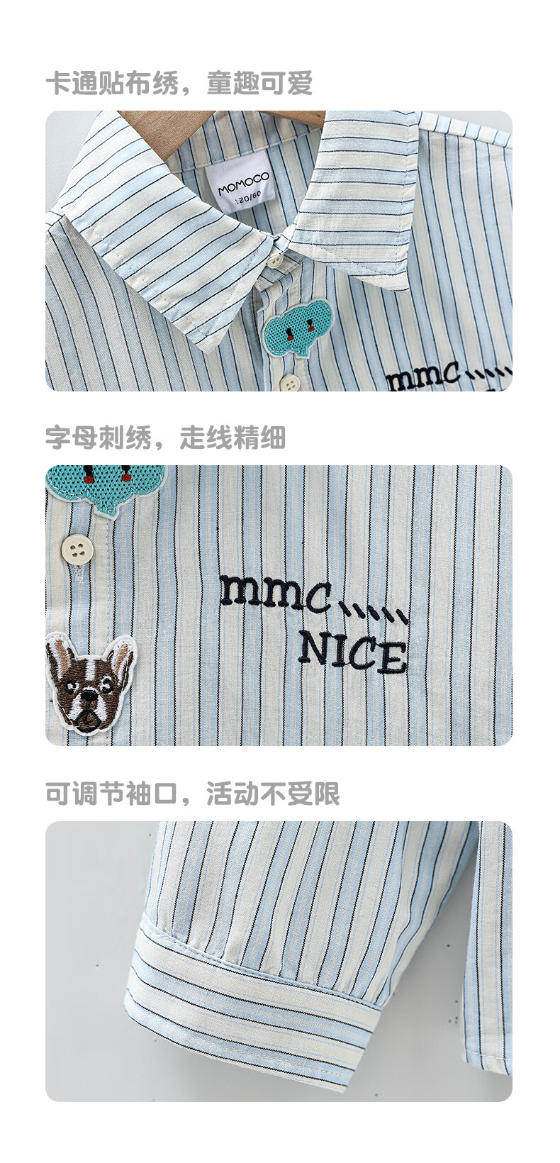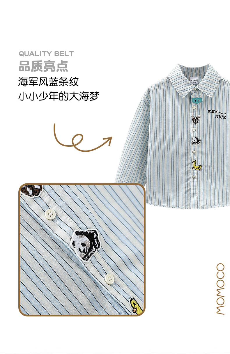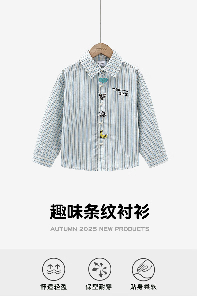 Mami Maka (MOMOCO) Children's Clothing Girls' Shirts 2025 Autumn Medium and Large Children's Fun Striped Shirts 001 Blue 105