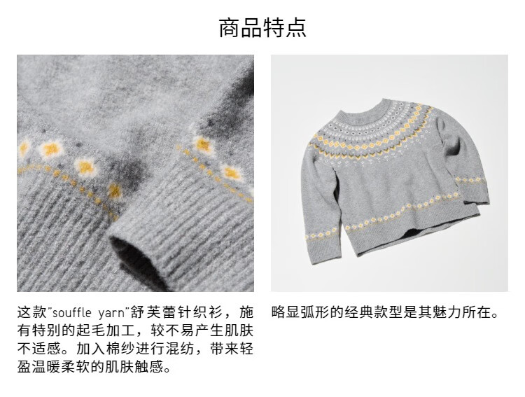 Uniqlo children's clothing boys and girls souffle yarn souffle sweater long-sleeved sweater 473551 01 milky white 110