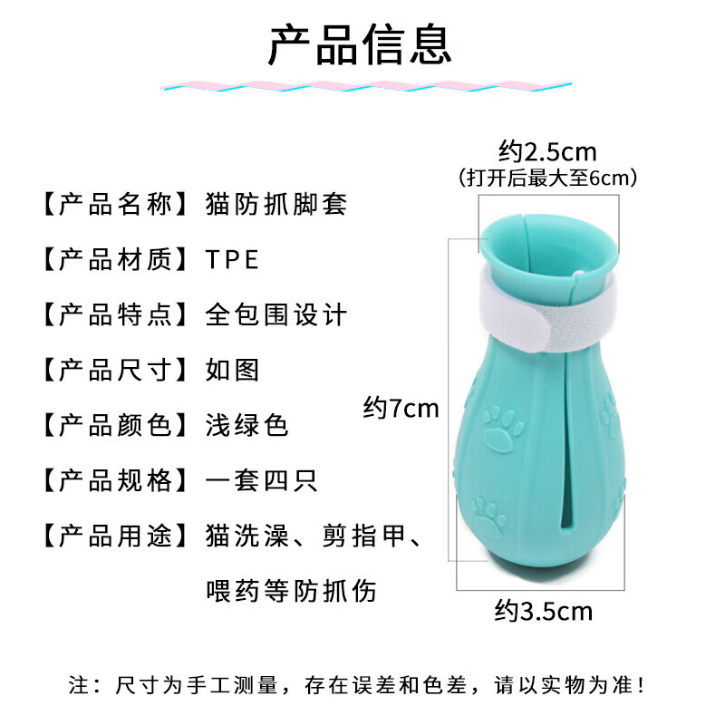 Cat foot caps to cut nails, wash cats, prevent cat claws, shoe covers to hug cats, feed medicine, anti-scratch artifact, cat bathing artifact, upgraded flat silicone cat nail covers, light green, set of 4