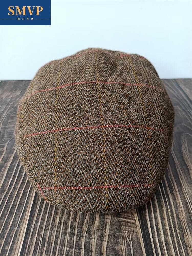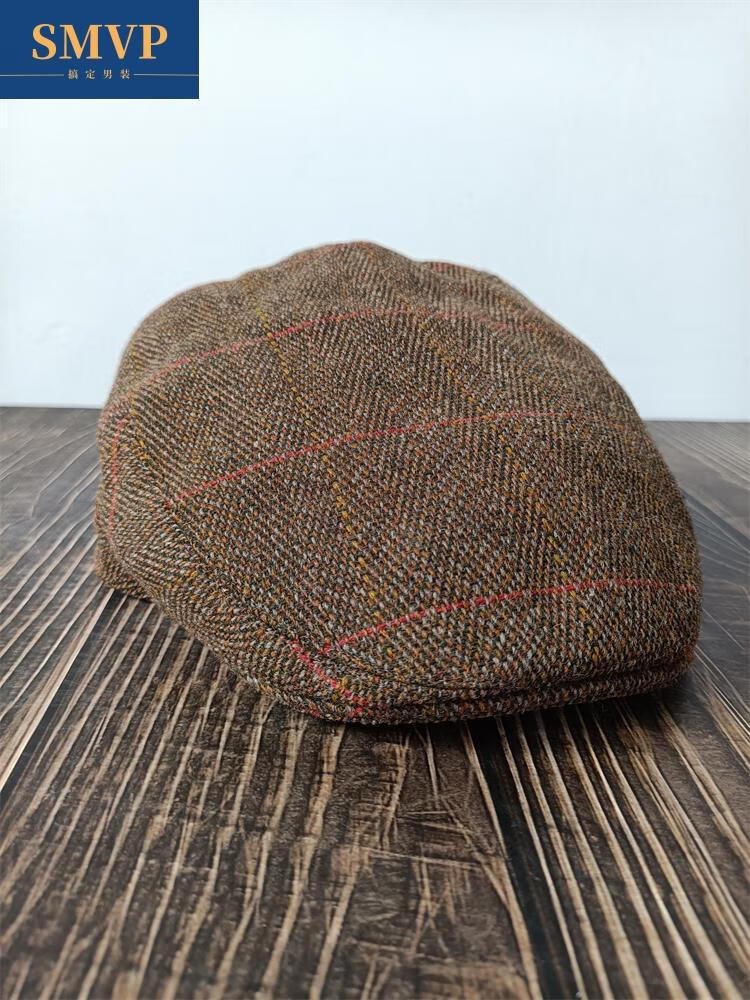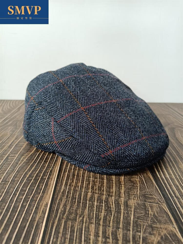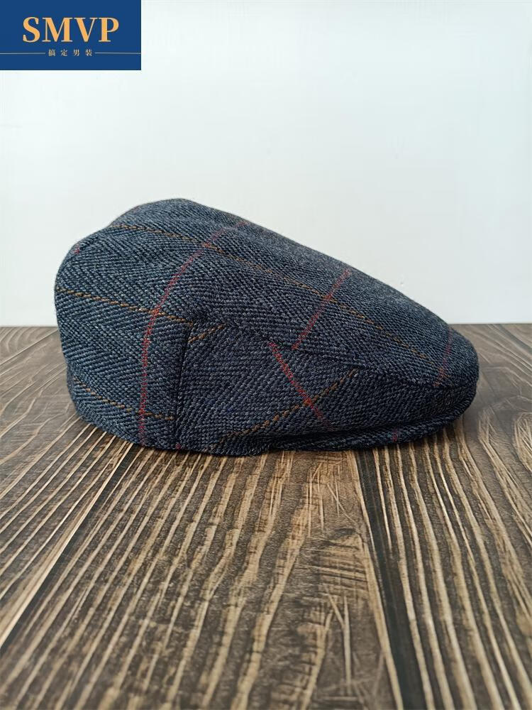SMVP Shelby Hat British Derby Tweed Peaked Cap for Men and Women Spring and Autumn Flat Top Covered with Antique Plaid Couple Versatile Blue M L (58-60c)