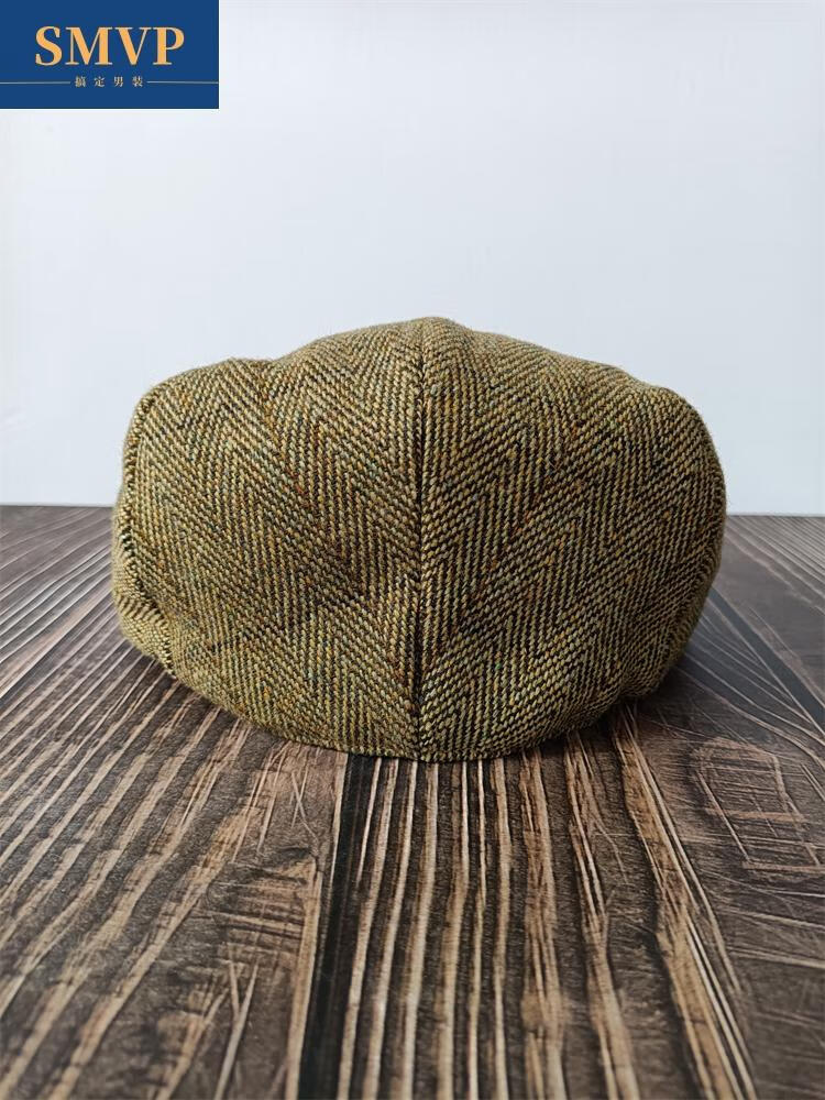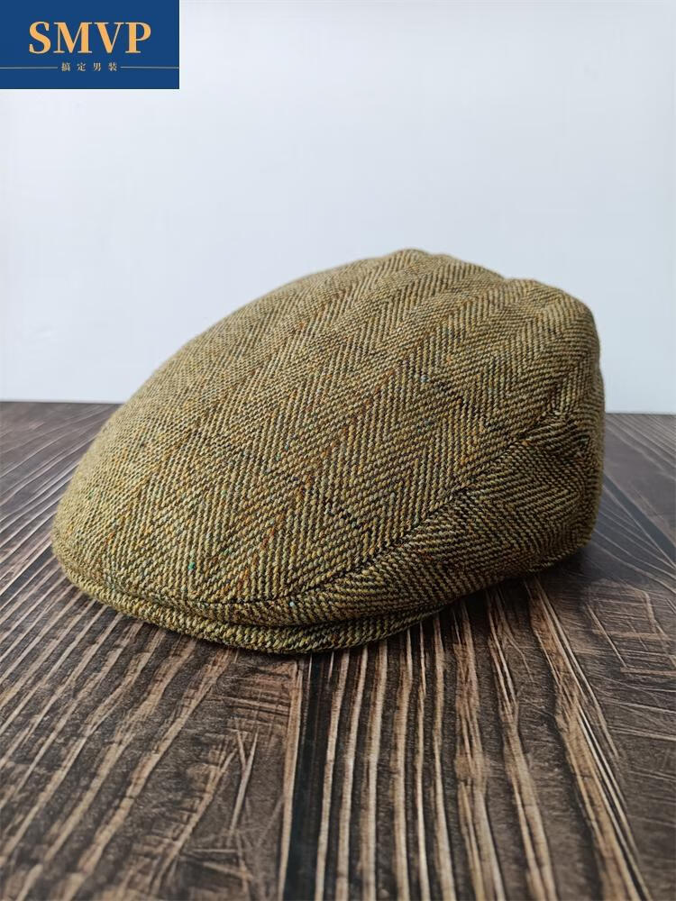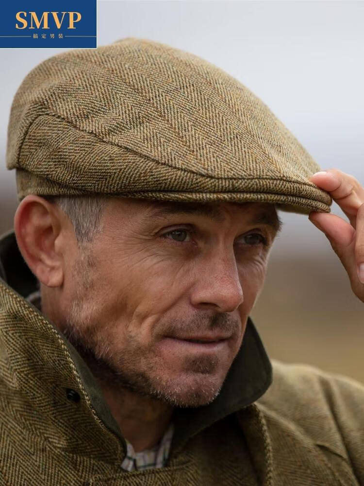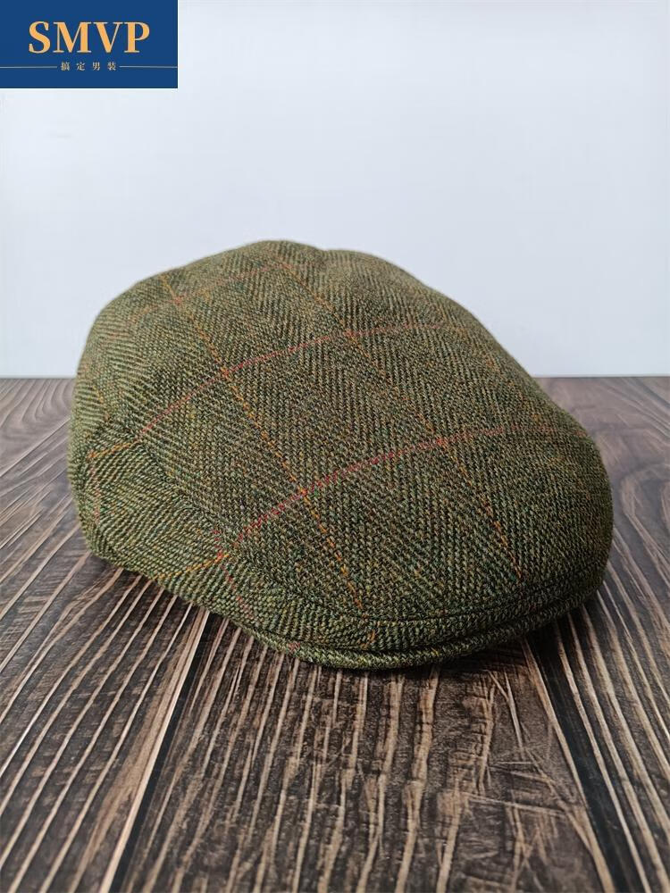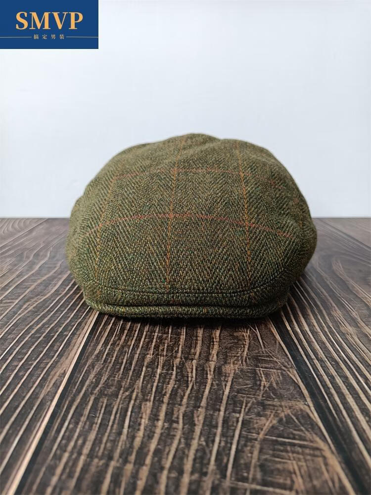SMVP Shelby Hat British Derby Tweed Peaked Cap for Men and Women Spring and Autumn Flat Top Covered with Antique Plaid Couple Versatile Blue M L (58-60c)