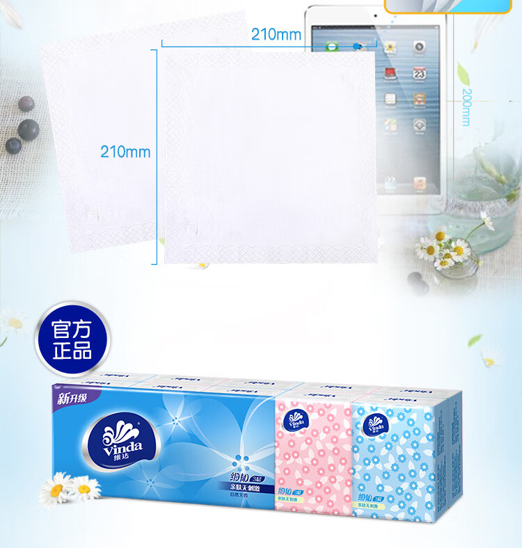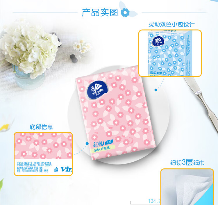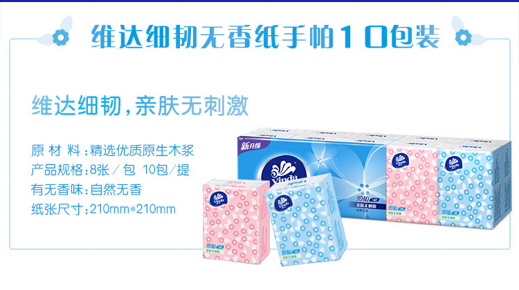 Vinda portable delicate handkerchief paper unscented handkerchief napkin toilet paper small package paper towel is not easy to break when wet 3 layers 8 pieces * 20 pack