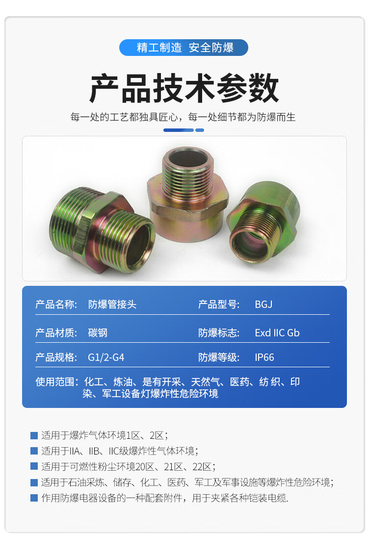 BGJ explosion-proof pipe joint bridge non-standard reducing joint large and small head adapter M20*1.5 carbon steel G1/2NPT G3/4 inner M20*1.5 outer