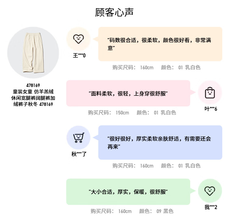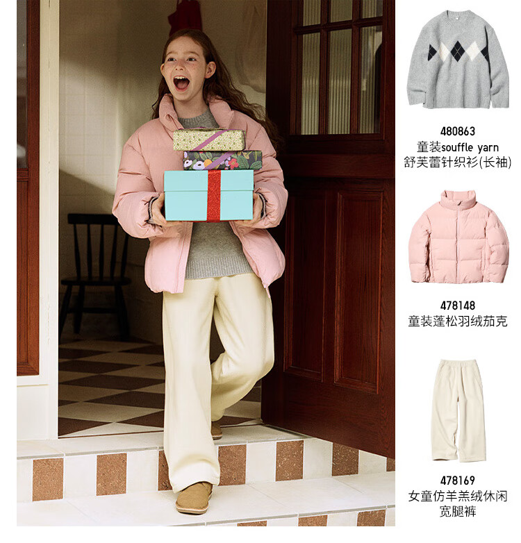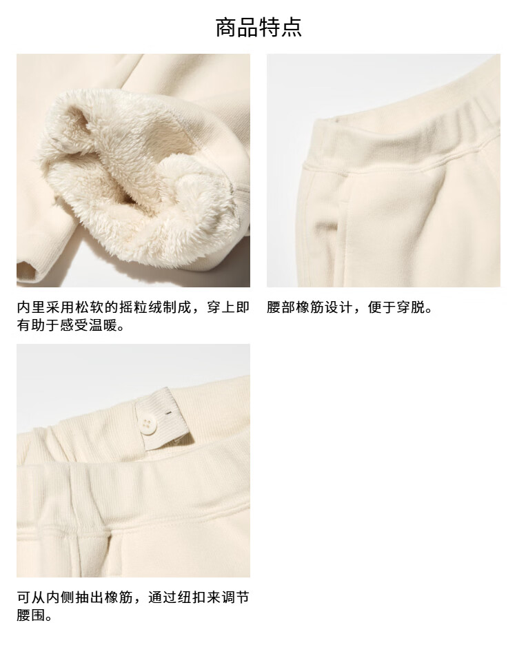Uniqlo children's clothing girls' imitation sherpa casual wide-leg pants wide-leg pants plus velvet pants autumn and winter new style 478169 01 milky white 160