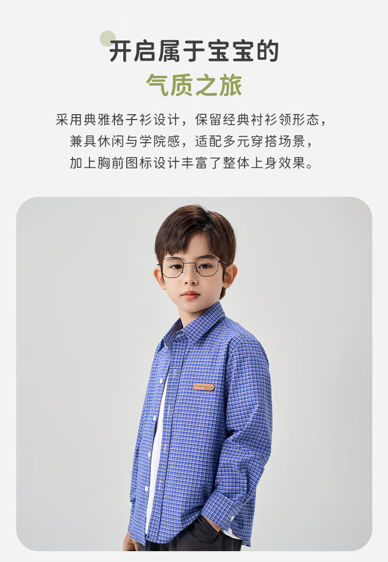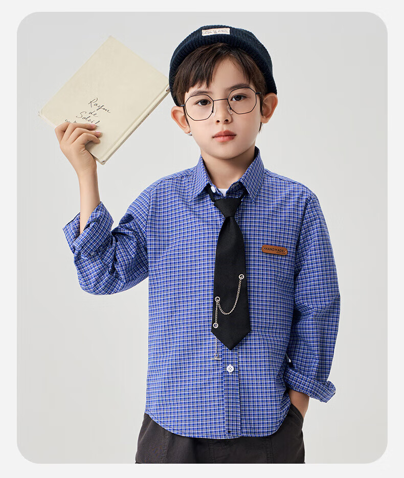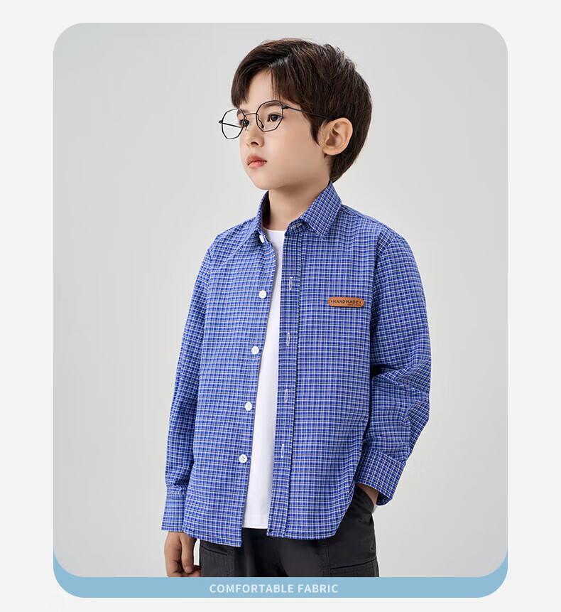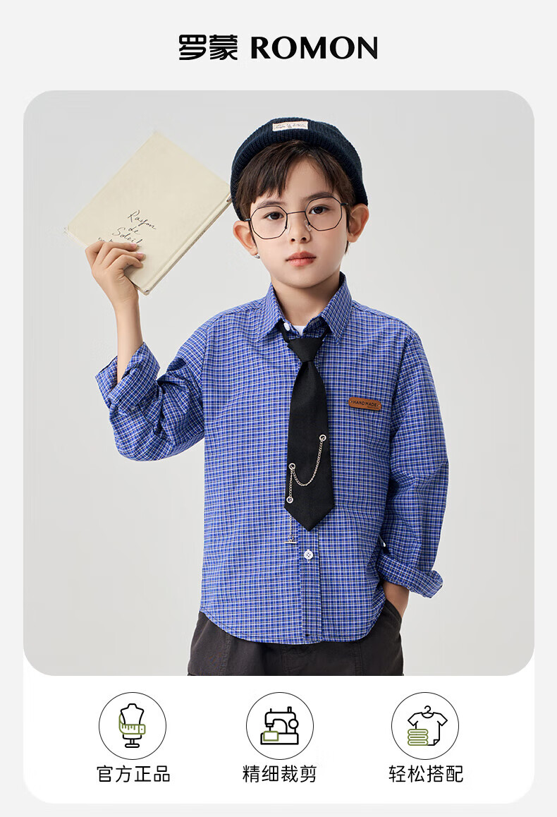 Romon Boys' Shirt Jacket Spring and Autumn Children's 2026 New Medium and Large Boys' Tops Plaid All-match Shirt Blue 110