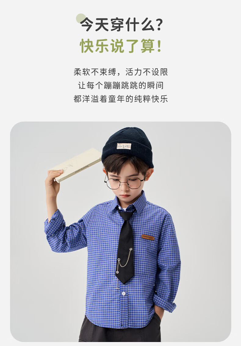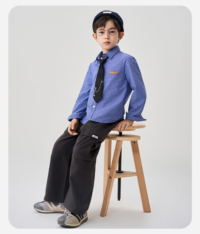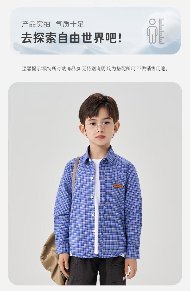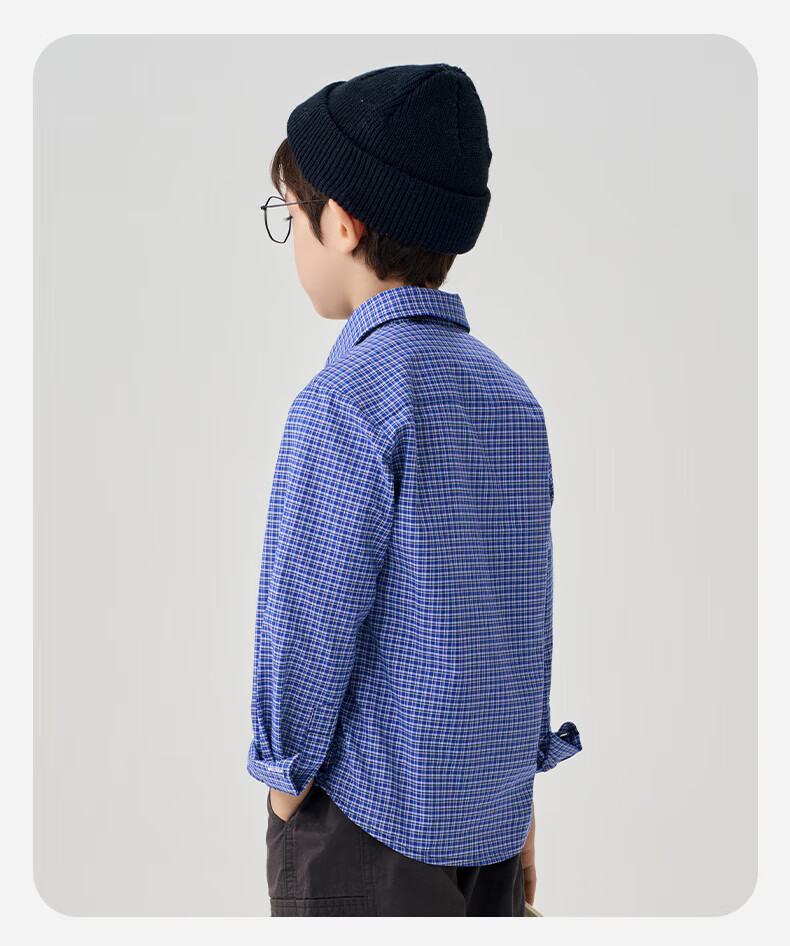 Romon Boys' Shirt Jacket Spring and Autumn Children's 2026 New Medium and Large Boys' Tops Plaid All-match Shirt Blue 110