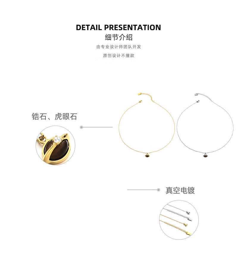 Albana copper-plated 18K gold platinum fashion tiger eye zircon inlaid necklace autumn and winter Maillard style sweater chain gold
