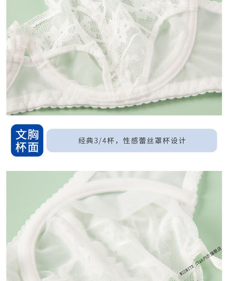 MIDNITE STAR New Dezhifen Big Breast Summer Sexy Underwear Women's Bra Breast-Reducing Transparent Bra Lace Set M04-White (Full Set) S 70A+
