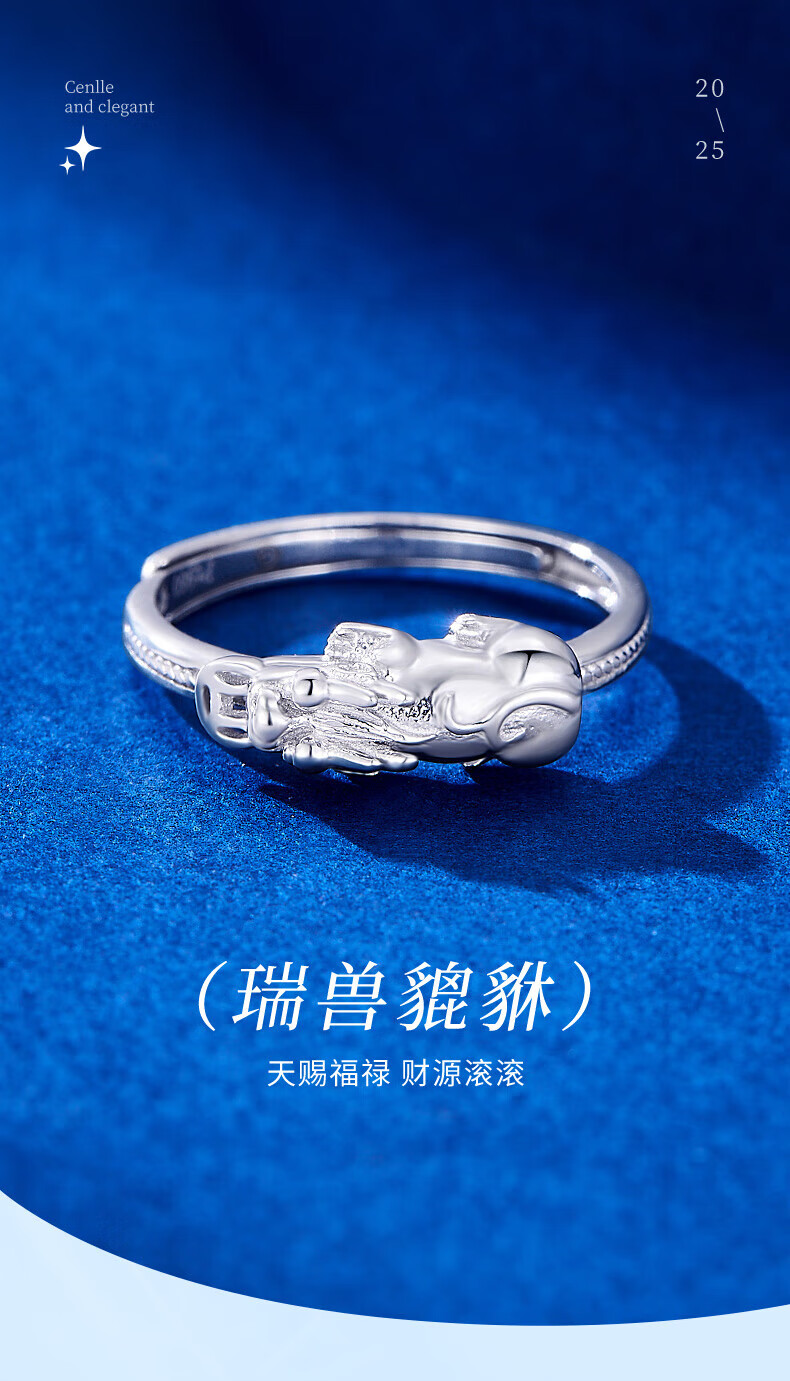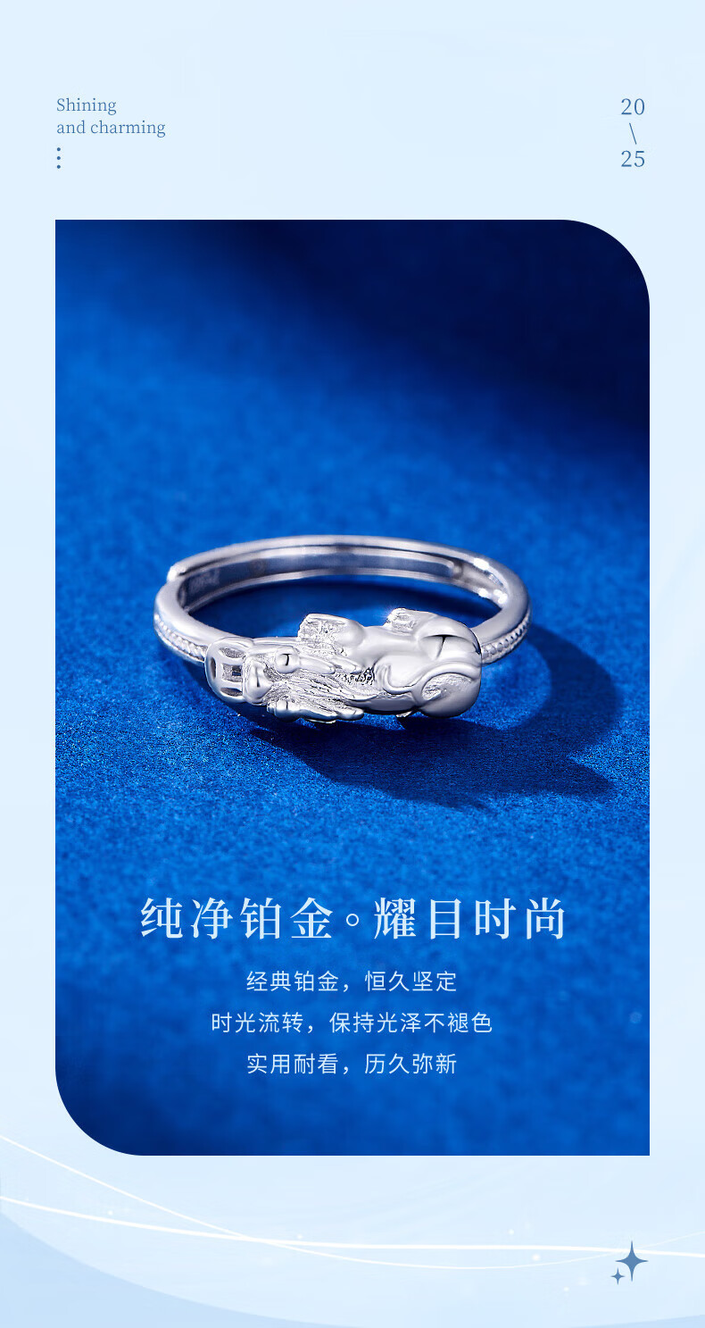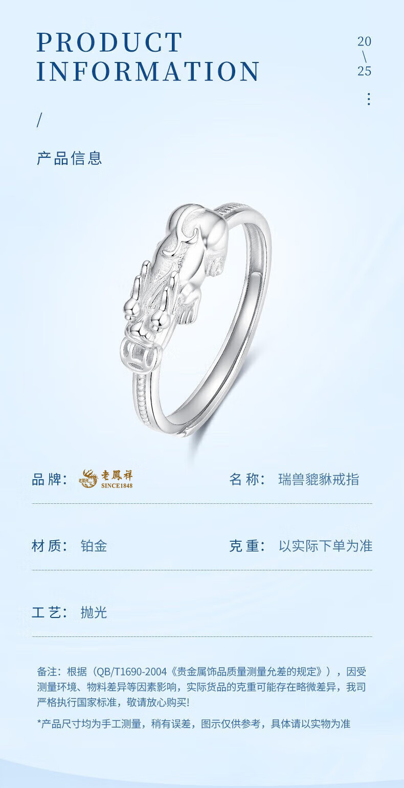 Lao Fengxiang PT950 Platinum Auspicious Beast Pixiu Ring for Women Fashionable Platinum Birthday Gift for Wife and Mid-Autumn Festival Gift for Girlfriend Platinum Auspicious Beast Pixiu Ring About 3.7g Brand Gift Box