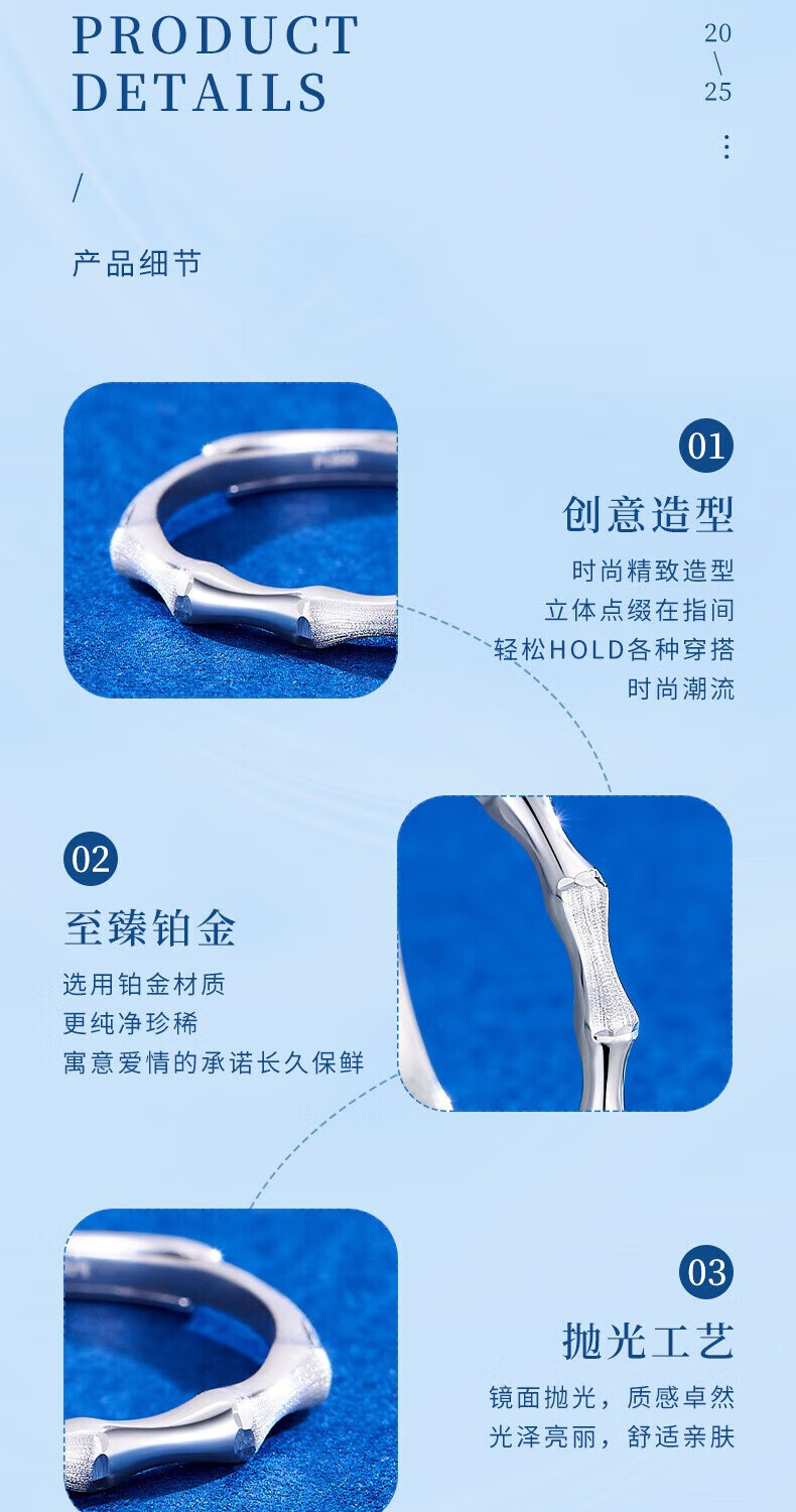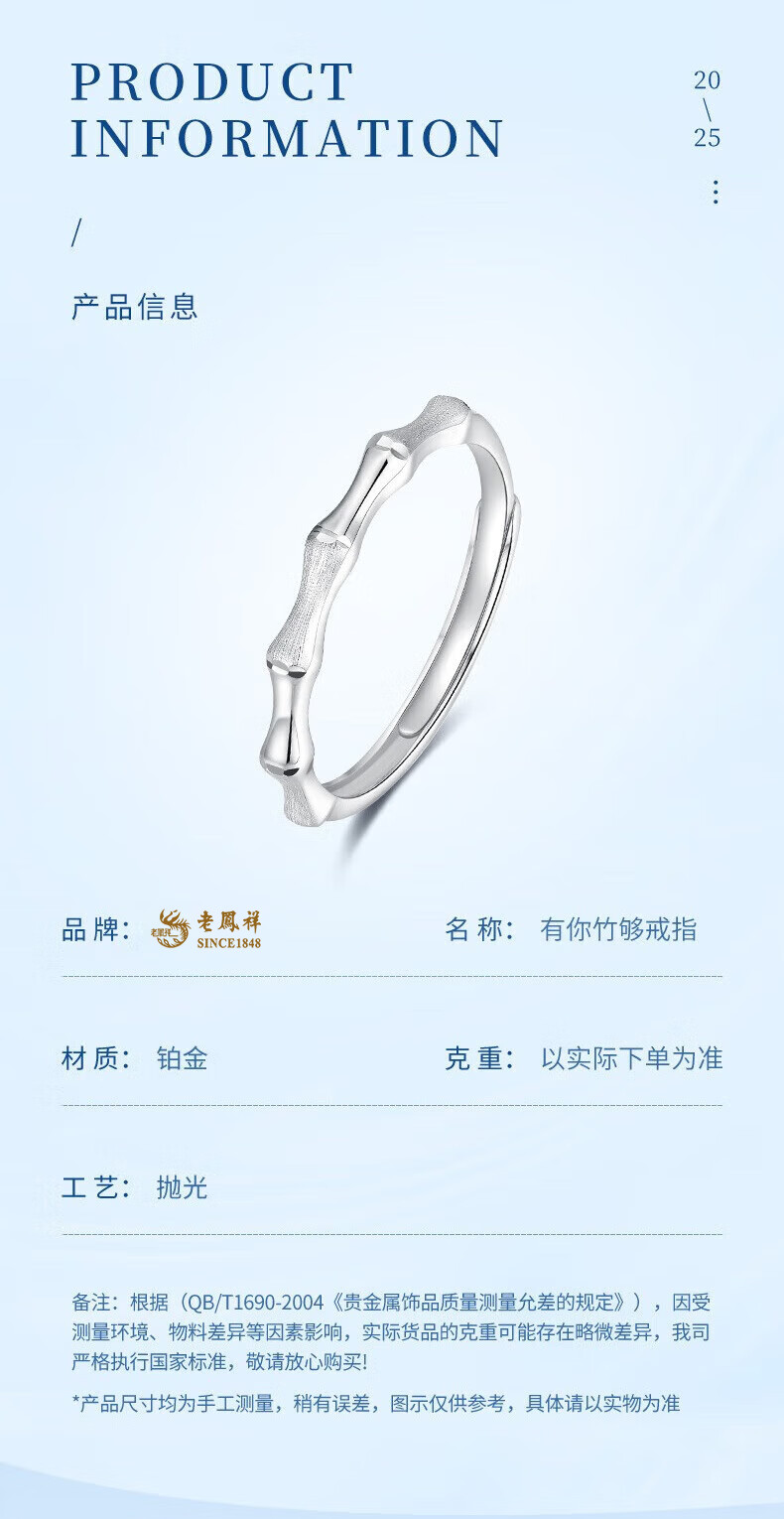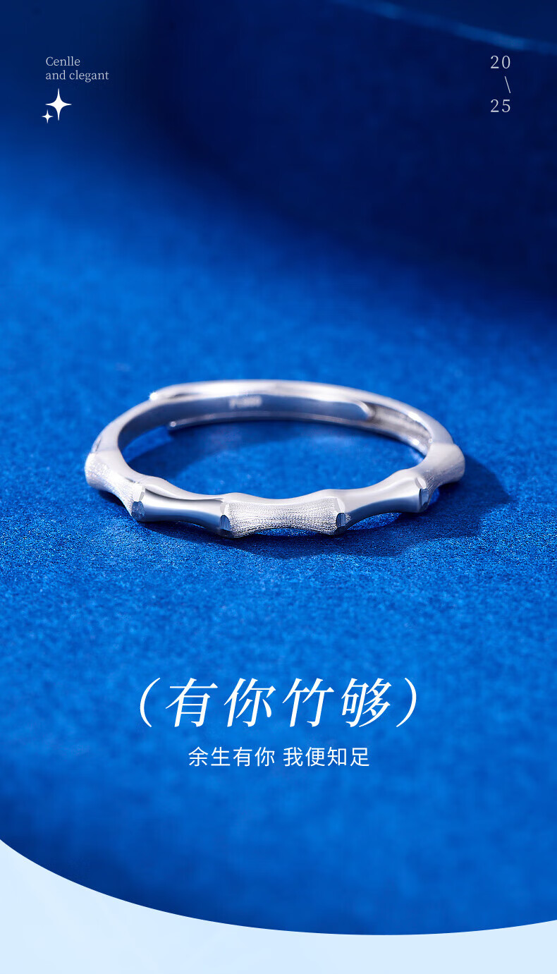 Lao Fengxiang PT950 Platinum You Are Bamboo Ring for Women New Platinum Birthday Gift for Girlfriend and Wife Mid-Autumn Festival Gift Platinum You Are Bamboo Ring About 2.1g Brand Gift Box