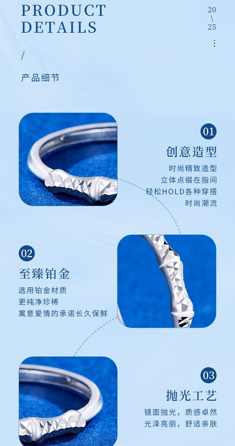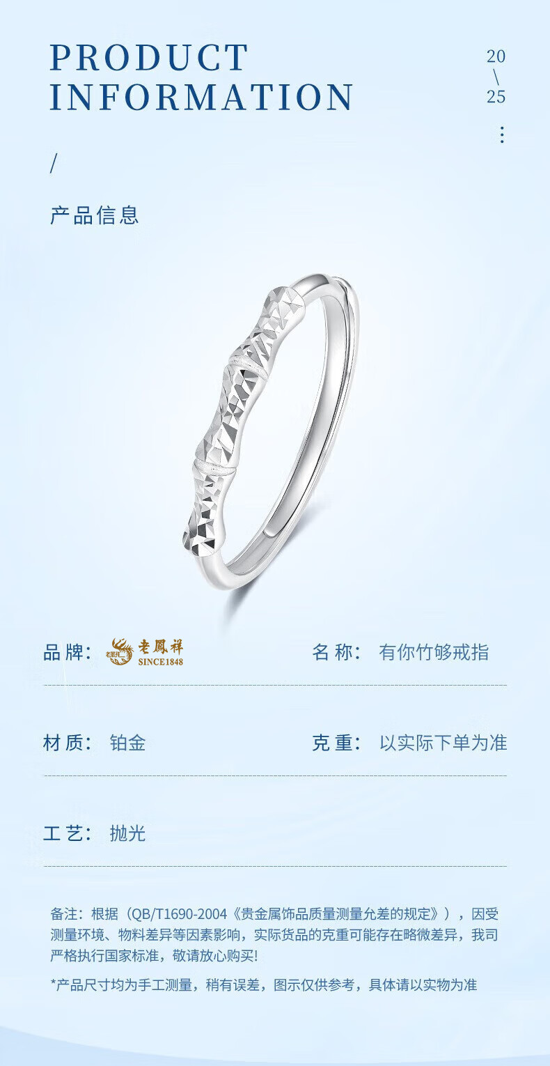Lao Fengxiang PT950 Platinum You Are Bamboo Ring for Women New Platinum Ring Mid-Autumn Birthday Gift for Girlfriend and Wife Platinum You Are Bamboo Ring About 1.7g Brand Gift Box