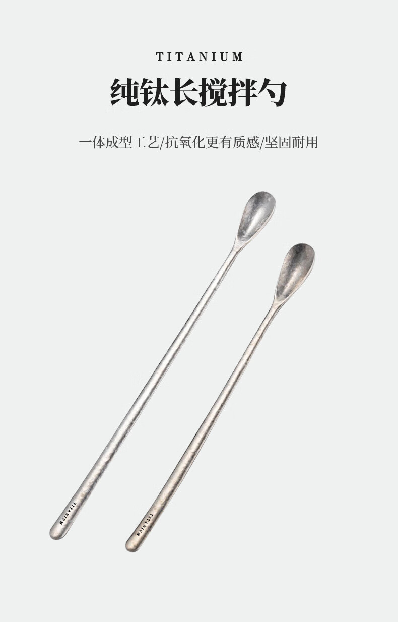 Pure titanium coffee spoon juice milk stirring stick long handle coffee powder quantitative spoon baking measuring spoon seasoning spoon pure titanium long handle coffee spoon - noble silver
