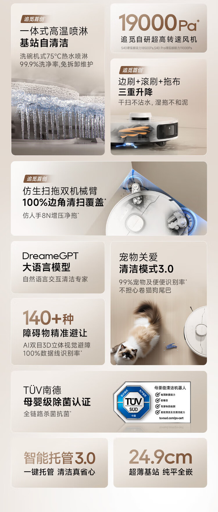 Zhuimi S40Pro enhanced version. Inquiry and enjoy discounts on national subsidy. Sweeping robot, sweeping, mopping, washing and drying, fully automatic cleaning base station, bionic double robotic arm obstacle mopping machine. Inquiry and enjoying discounts. S40Pro enhanced version - ultra-thin embedded