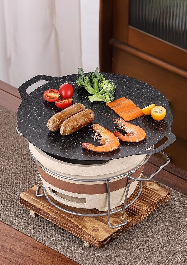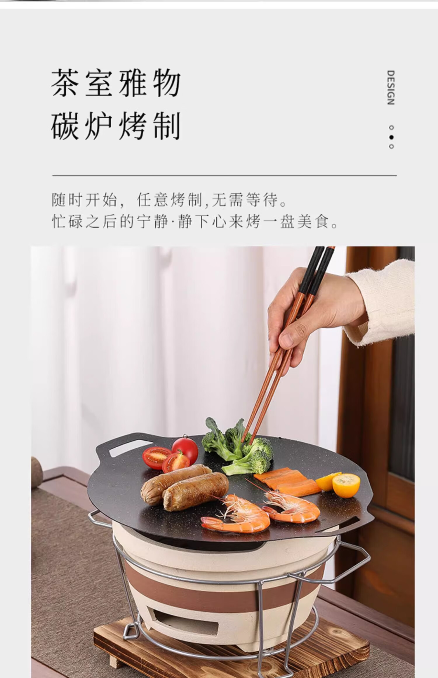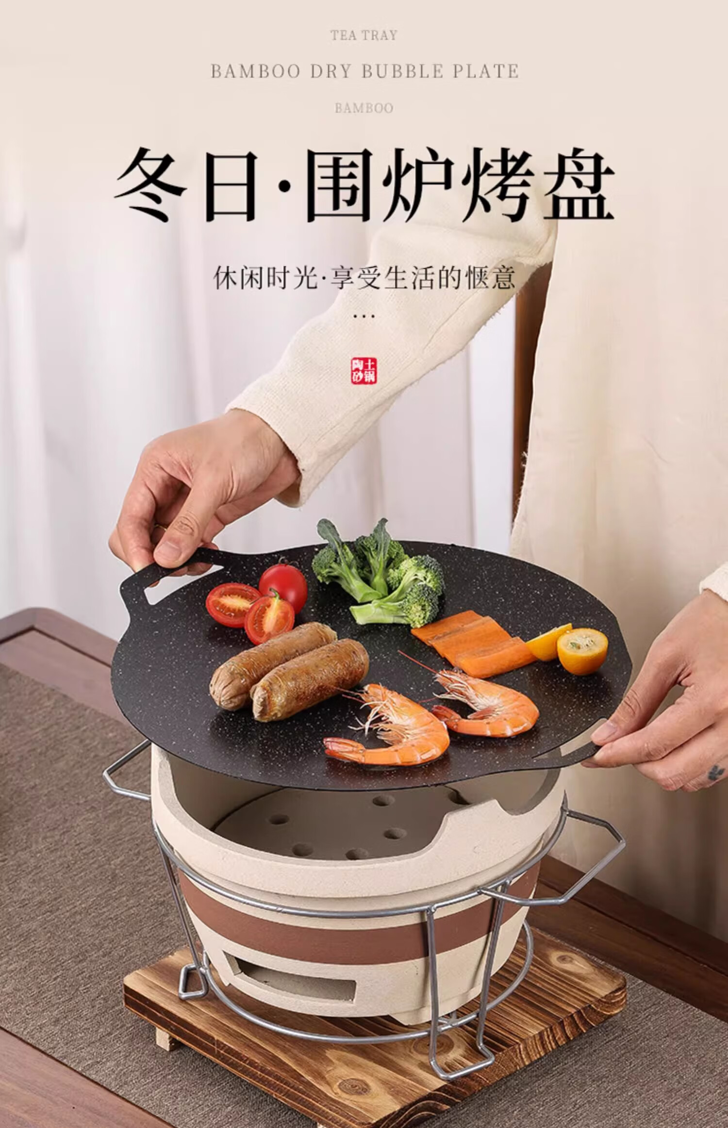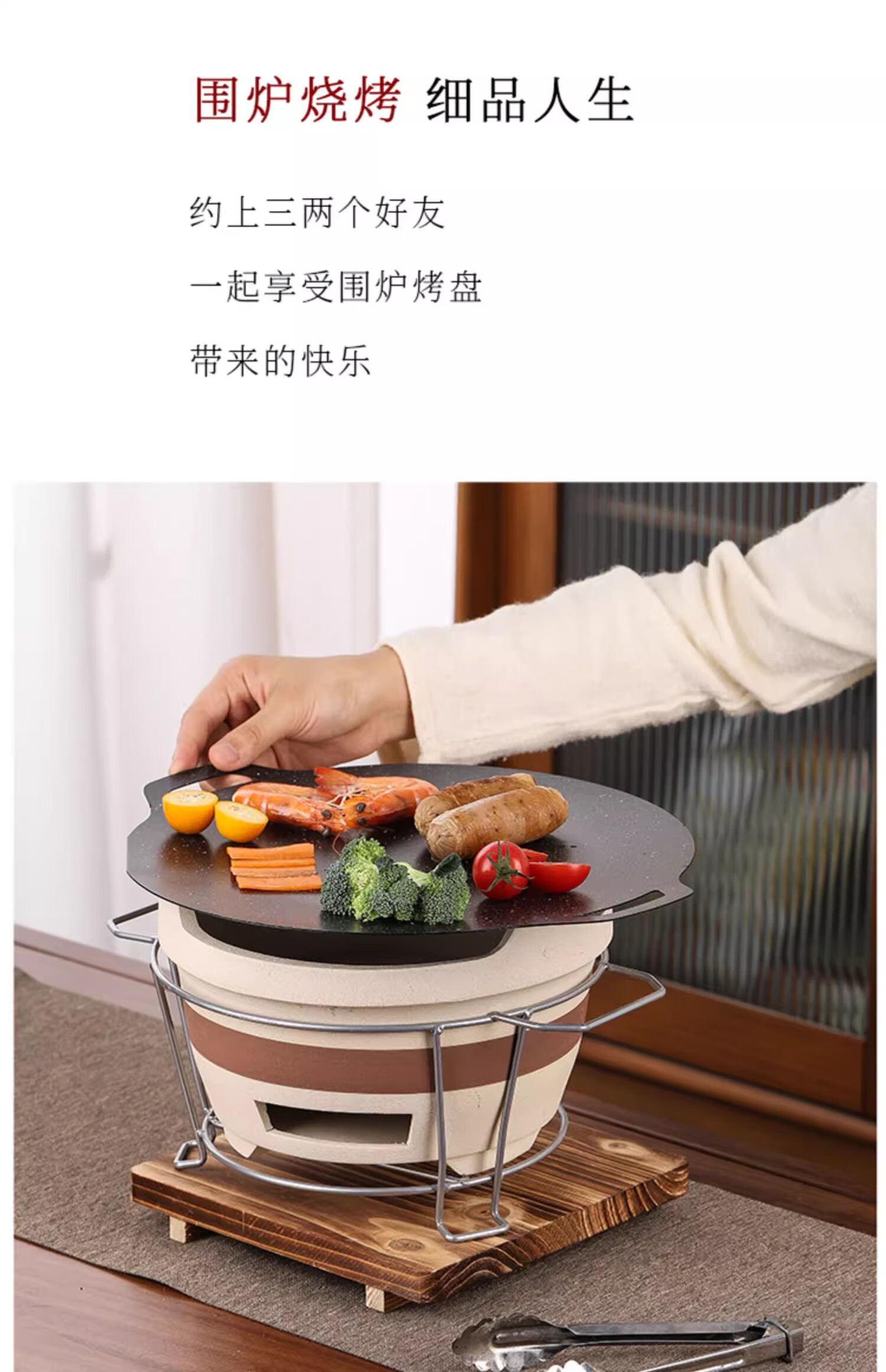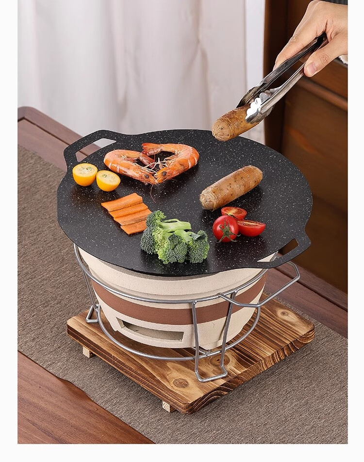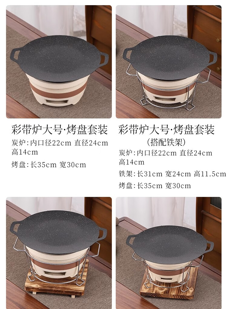 Barbecue stove charcoal outdoor commercial clay oven grill pan Teppanyaki around the stove tea roasting stove charcoal stove old-fashioned side stove charcoal stove large + 30cm baking pan + iron rack + wooden mat + net
