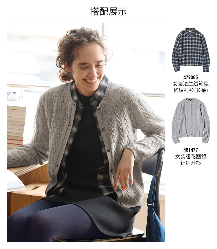 Uniqlo Women's New Jersey Round Neck Knitted Cardigan/Sweater Jacket Air Conditioned Shirt Commuting Autumn and Winter New Style 481477 16 Red L