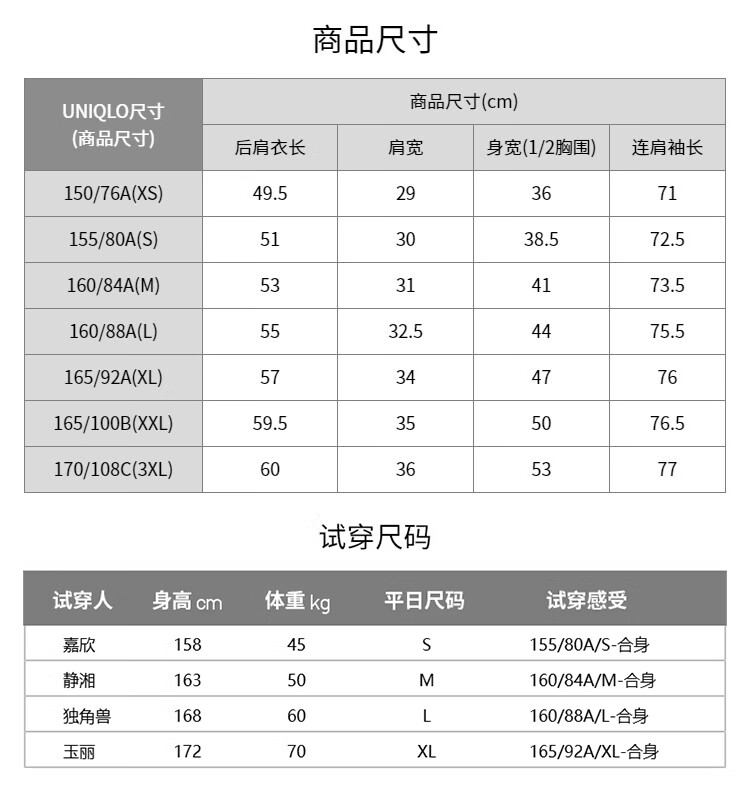 China (cm) 160-165/84-86 165-170 / 88-90 167-172 / 92-96 168-173 / 98-102 170-176 / 106-110
