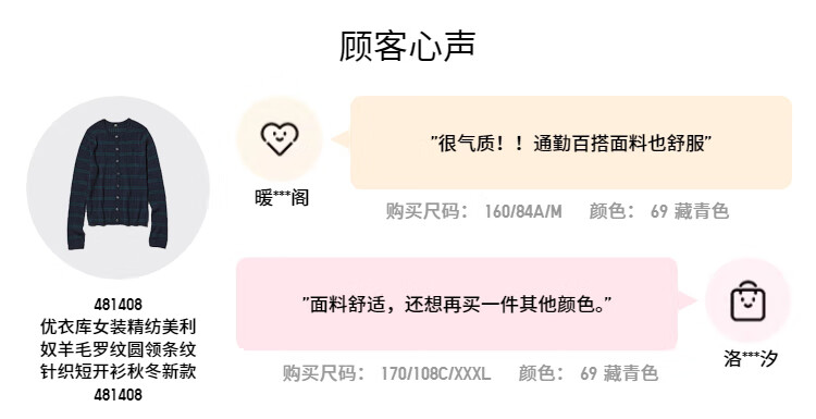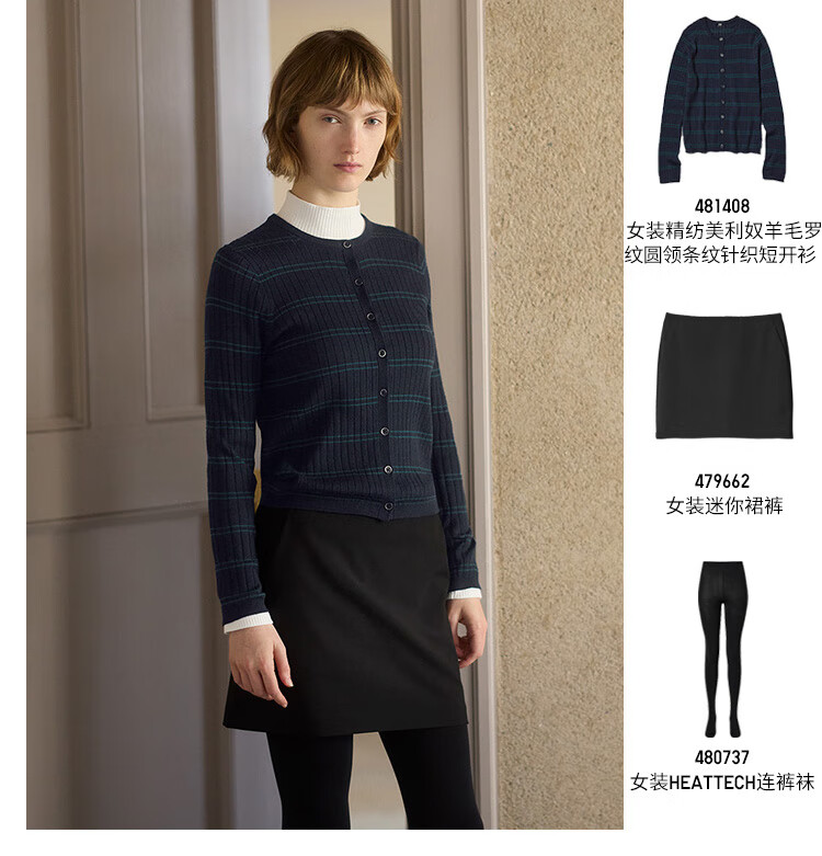 Uniqlo Women's Worsted Merino Wool Ribbed Round Neck Striped Knitted Short Cardigan 481408 69 Navy Blue XL/165/92A