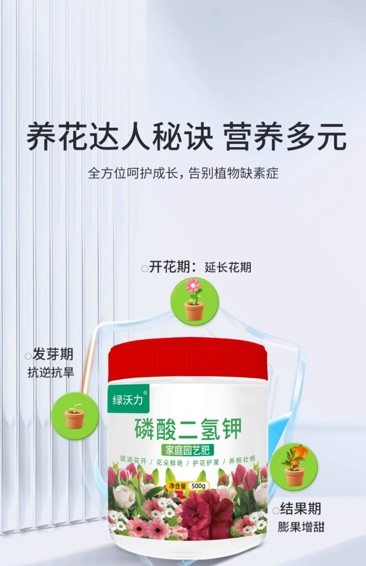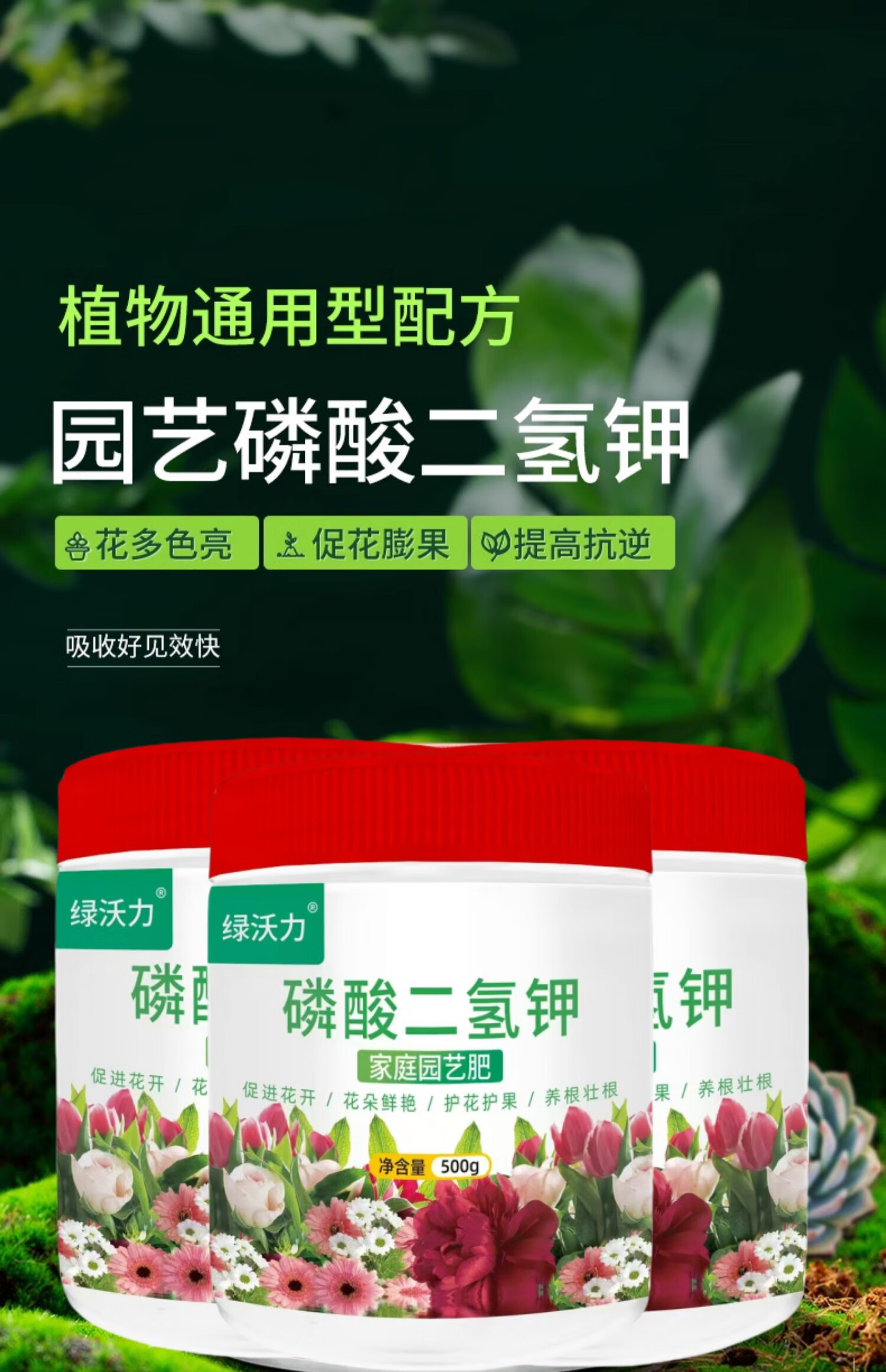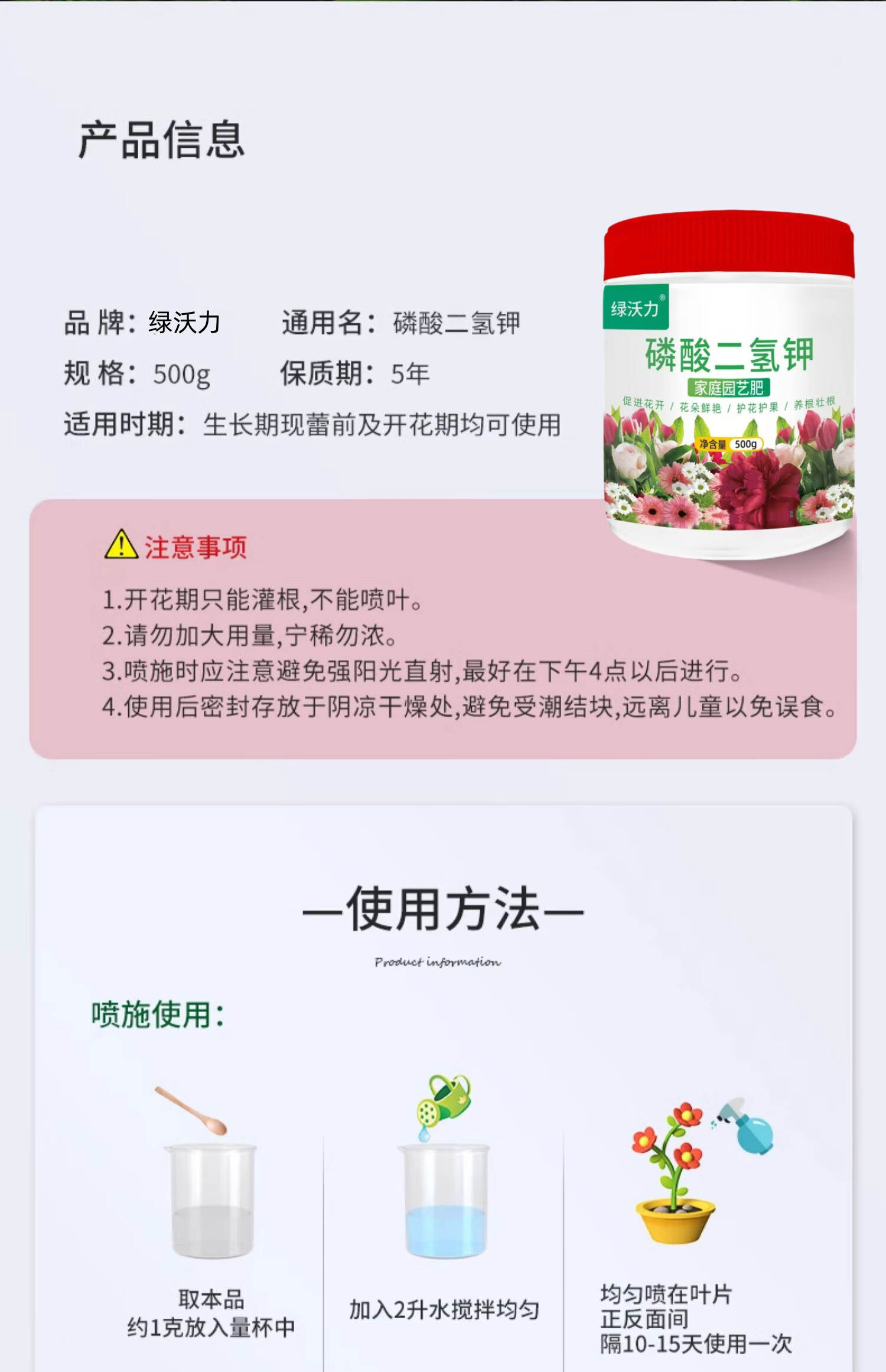 Green Woli Potassium Dihydrogen Phosphate Fertilizer Flowers and Vegetables General Agricultural Plant Potted Flower-promoting Phosphorus Potassium Fertilizer Water-soluble Foliar Fertilizer Potassium Dihydrogen Phosphate 500g