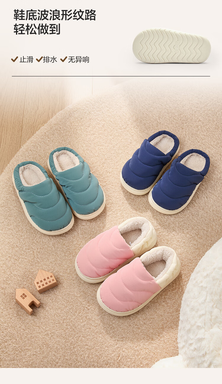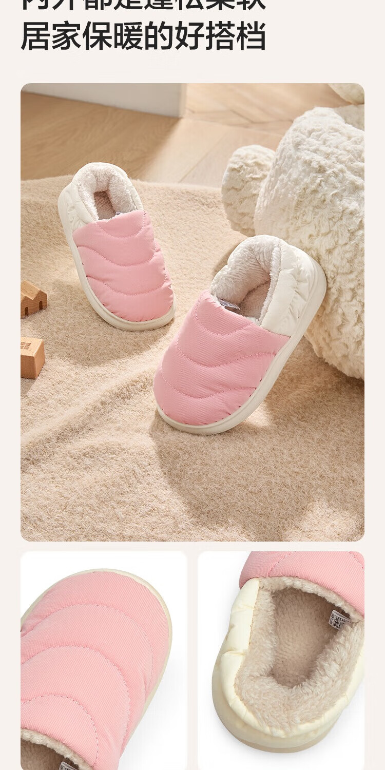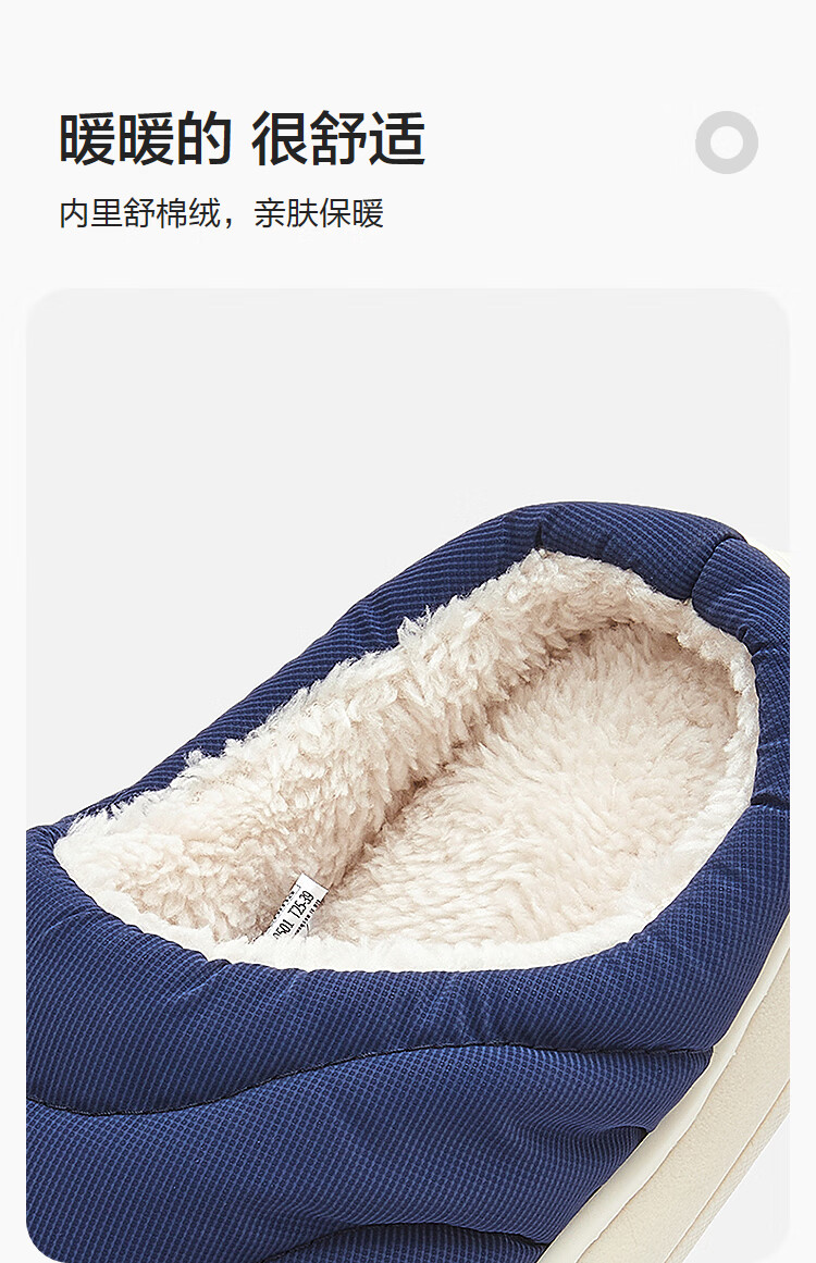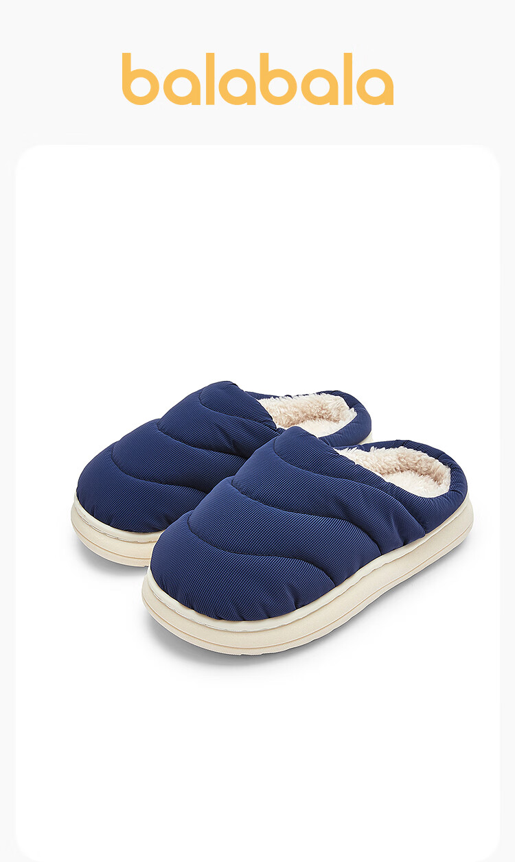Balabala children's cotton slippers with half heel for boys and girls anti-slip indoor autumn and winter cotton shoes with velvet to keep warm Chinese blue 80501 35 (foot length 21.8-22.2/inner length 23)
