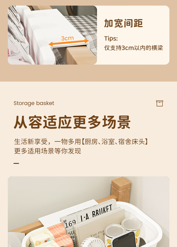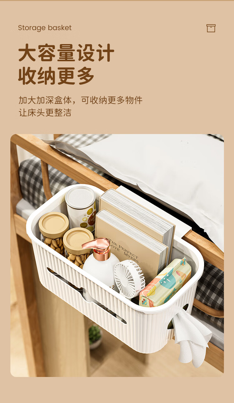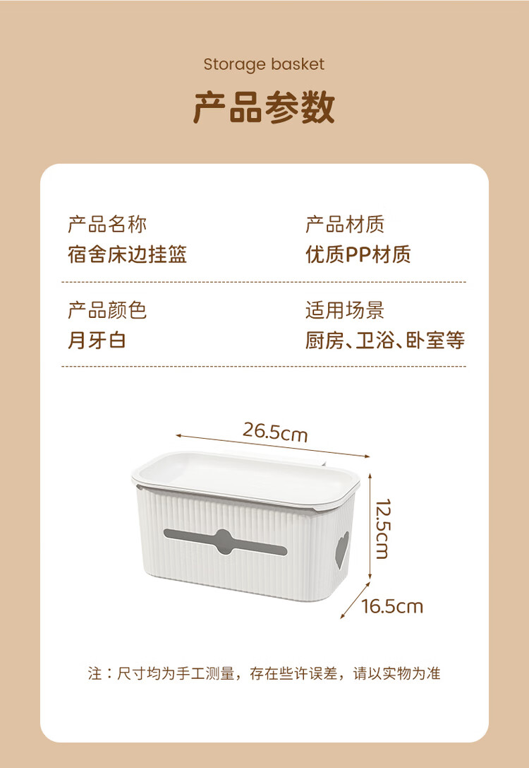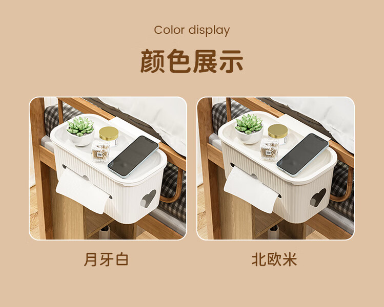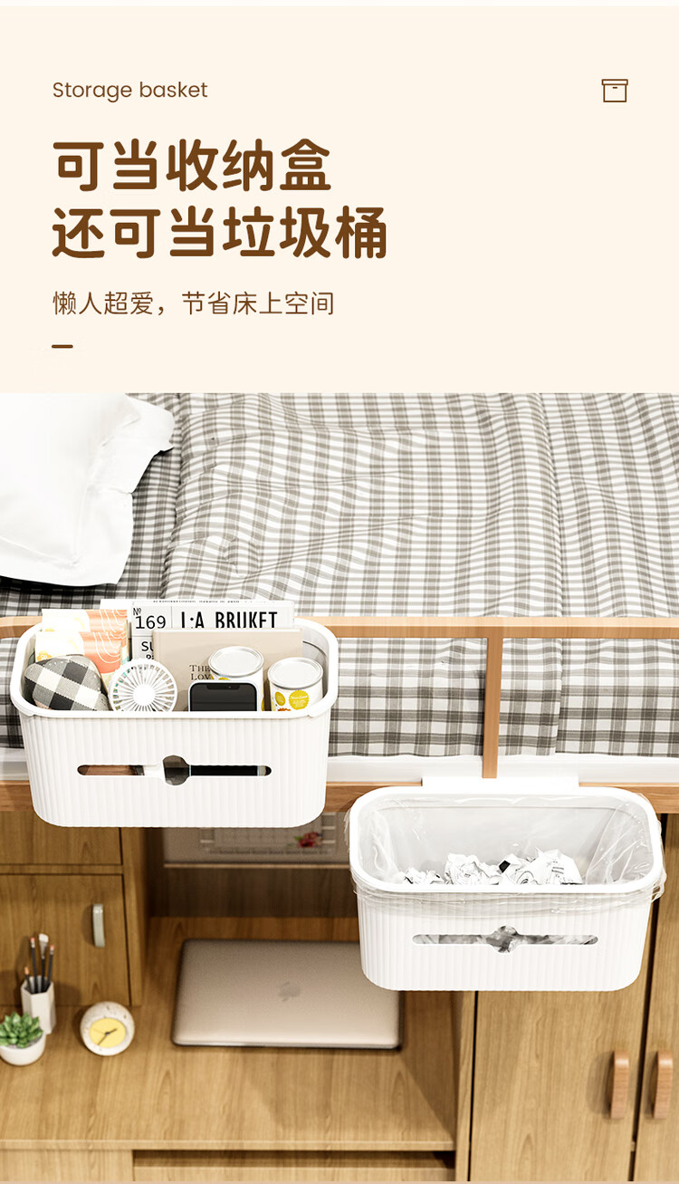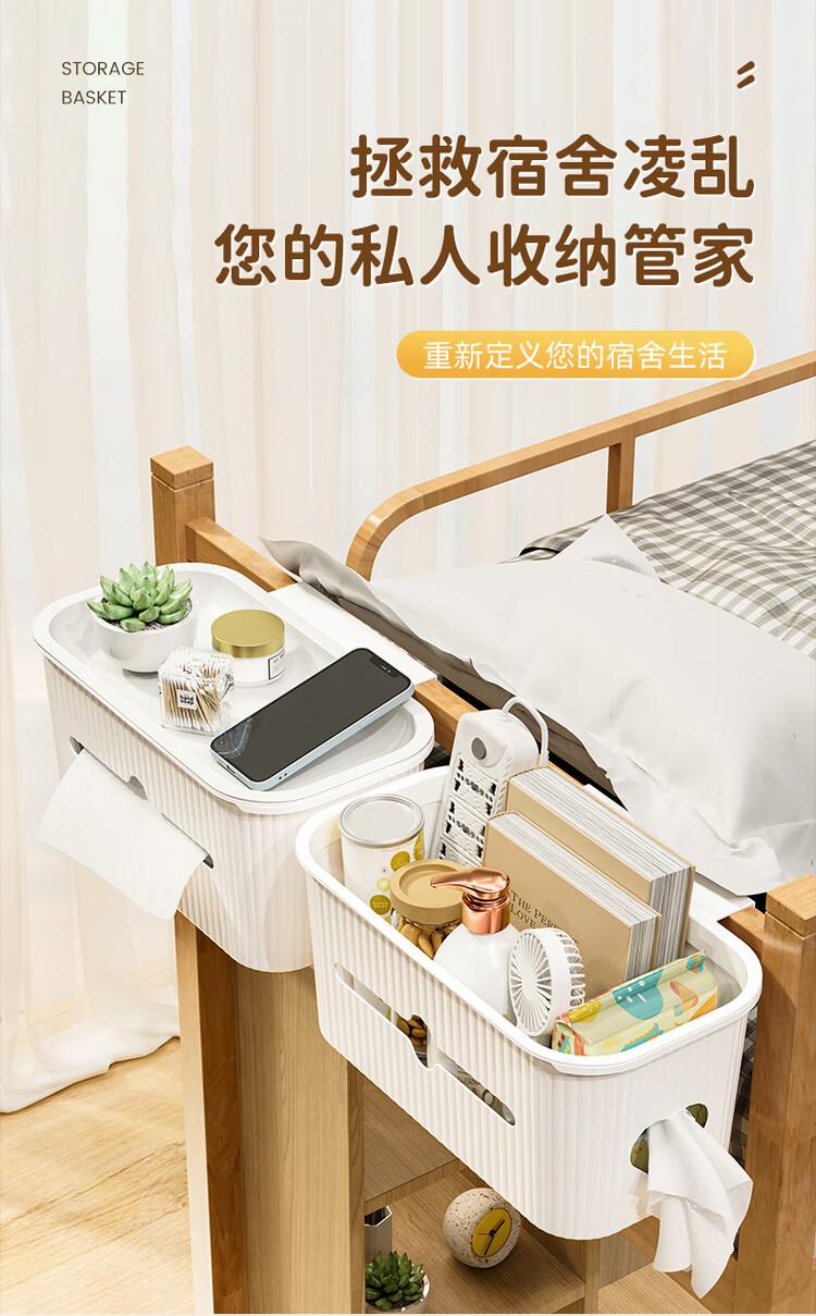 Fantasy bedside hanging basket student dormitory bedside storage rack on the bed mobile phone storage artifact crib diapers crescent white upgraded version of two packs