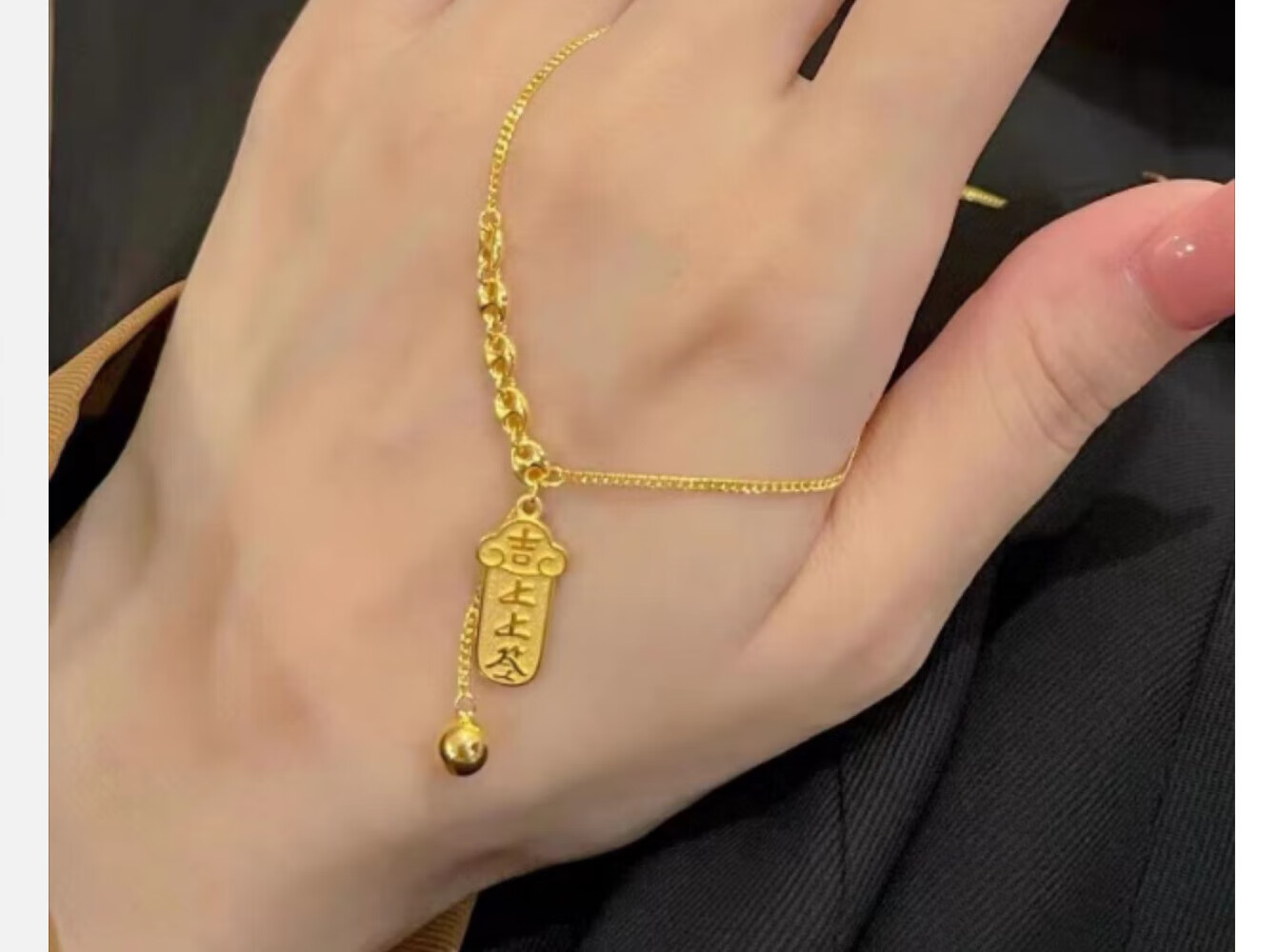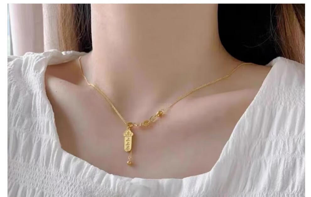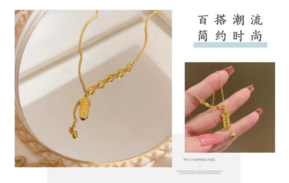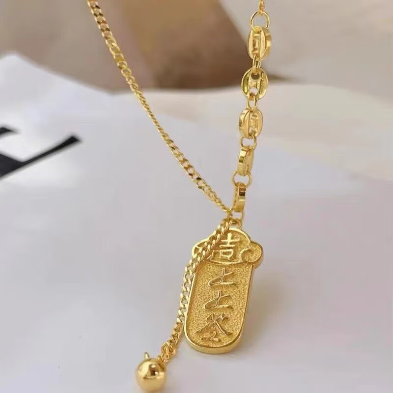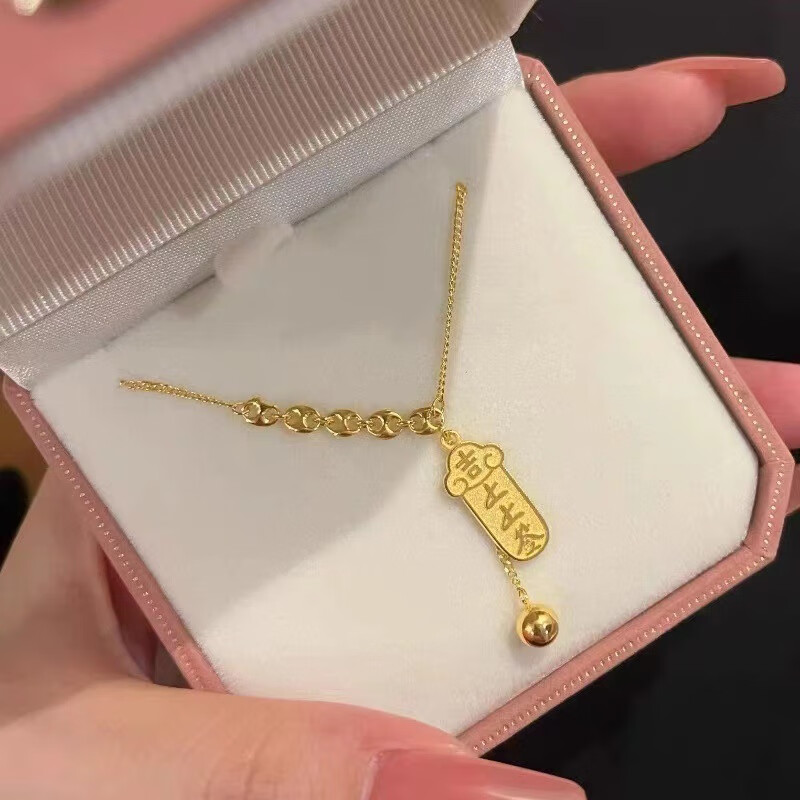 Aibana meets Lucky Sign 18K gold necklace with signed clavicle chain auspicious chain for girls as a gift, gold