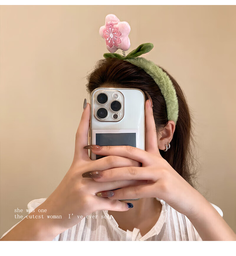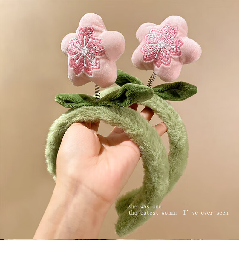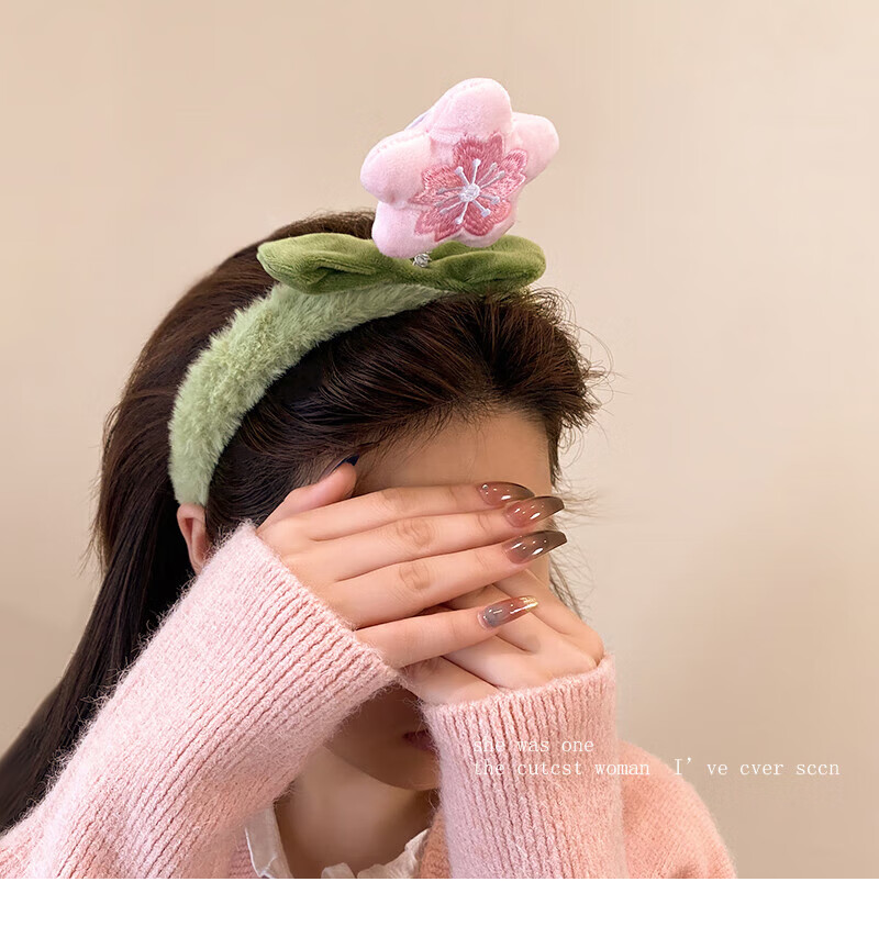 Youfang attracts peach blossom_cute plush flower headband female cartoon sweet hairpin face wash non-slip furry headband hair accessories pink peach plush headband 1 pack