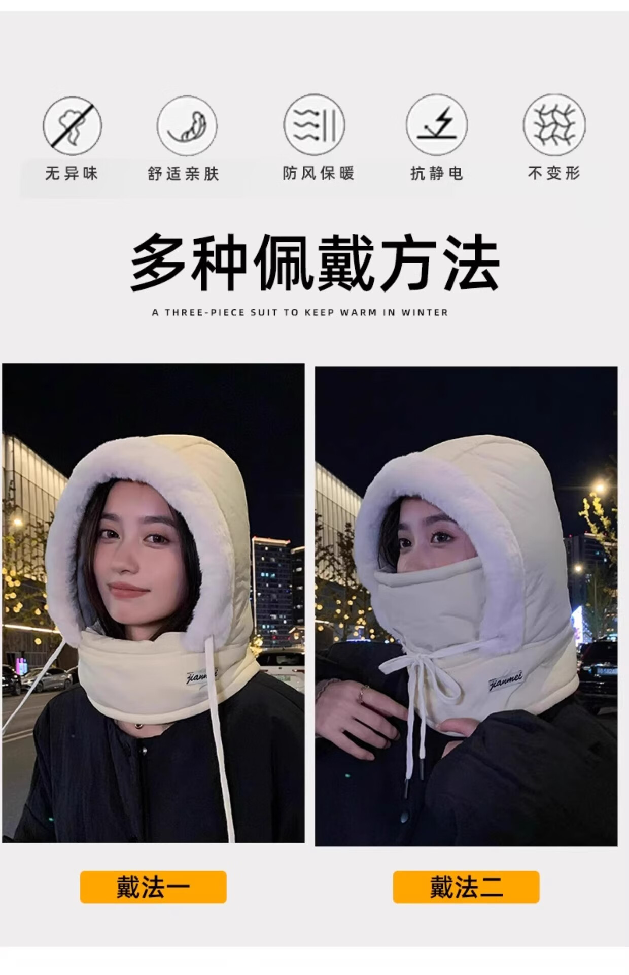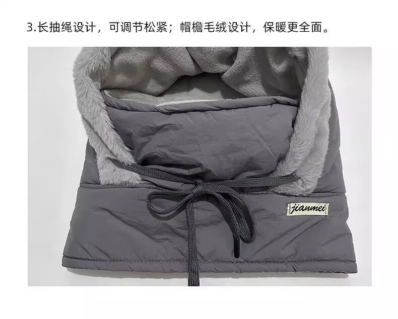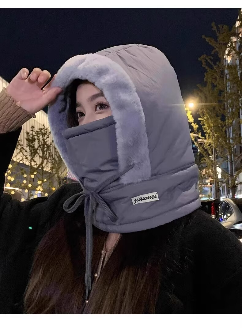 Ming Sui Lei Feng hat plus velvet cycling windproof hat for men and women in autumn and winter, one-piece thickened warm and cold-proof hood and mask, dark gray