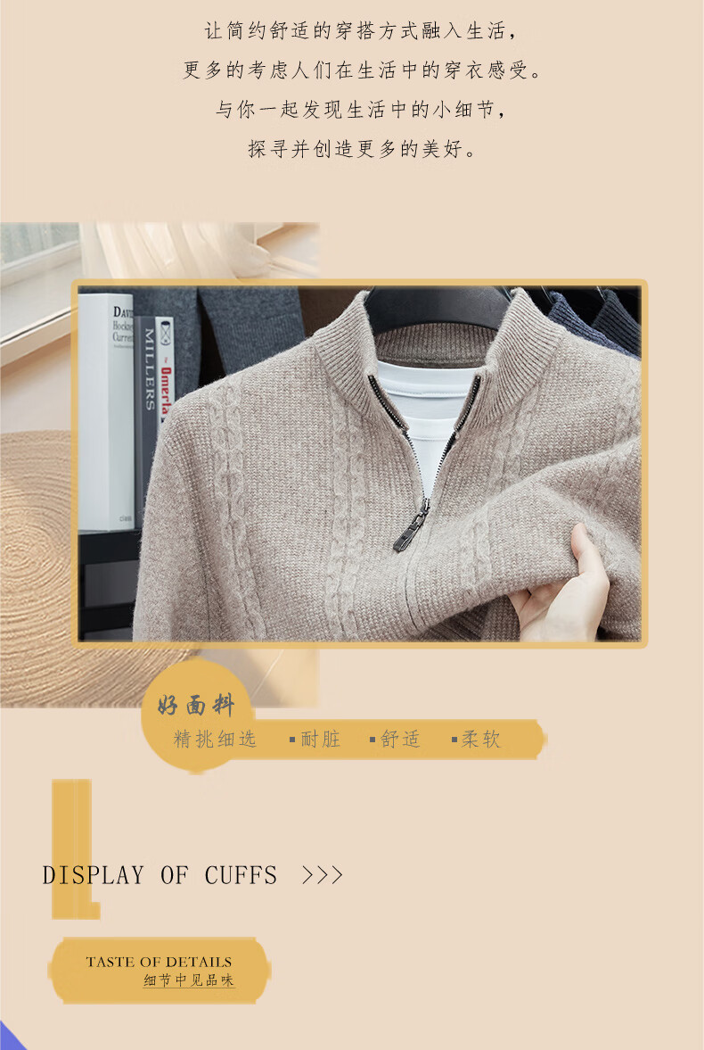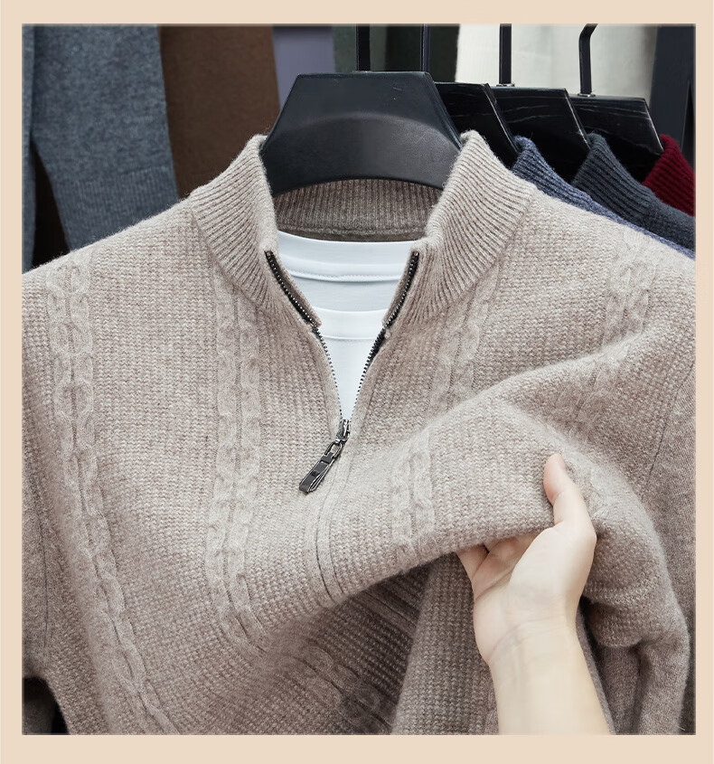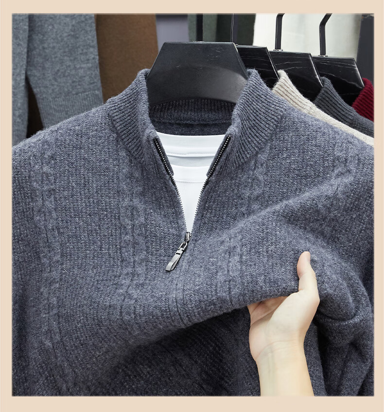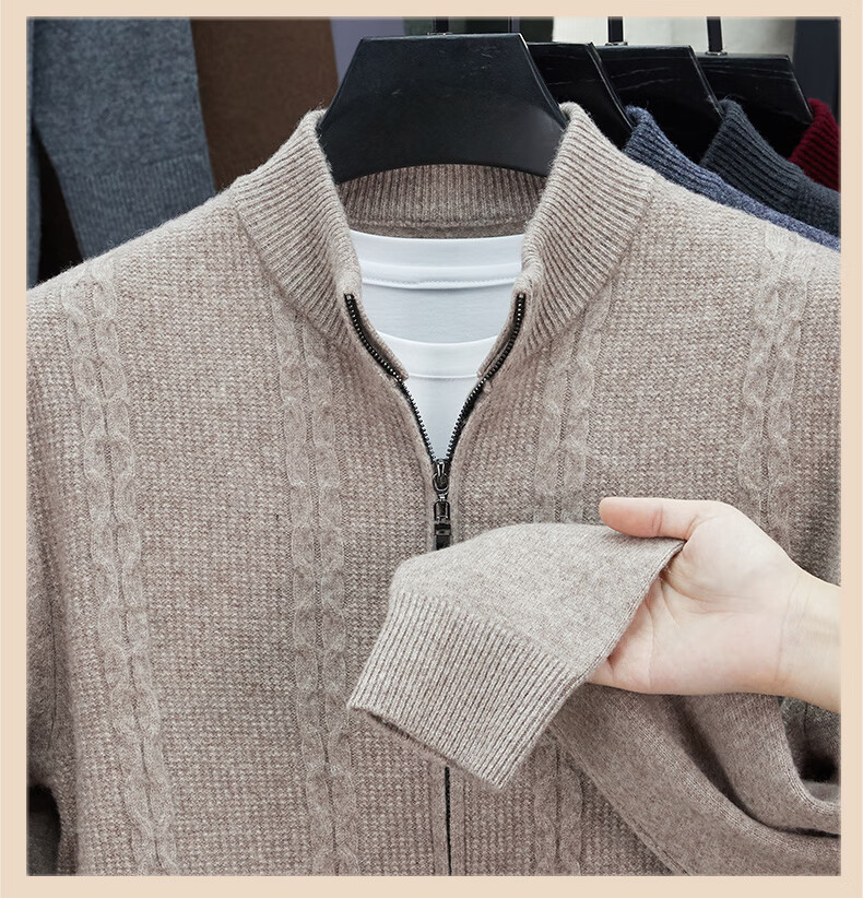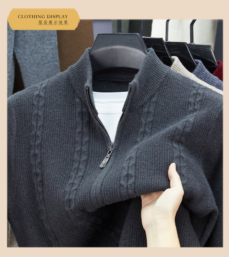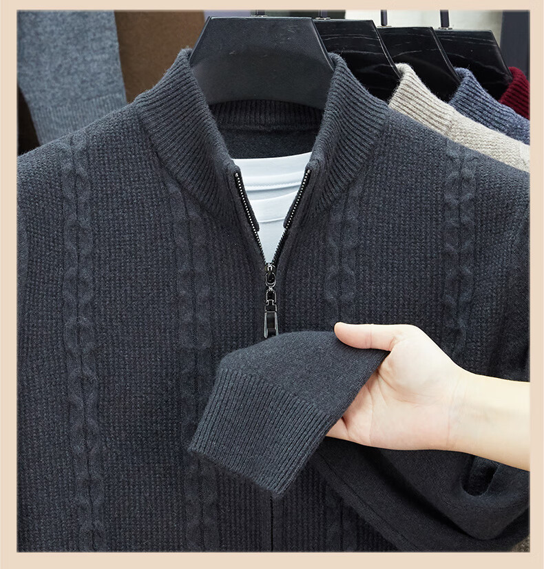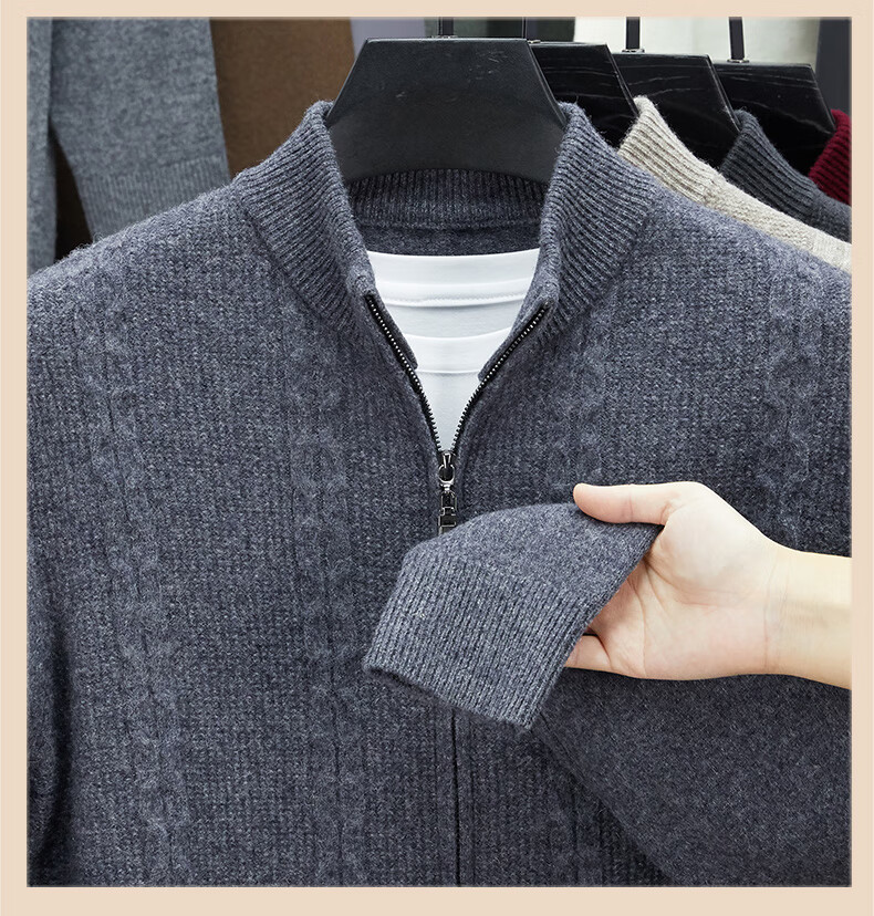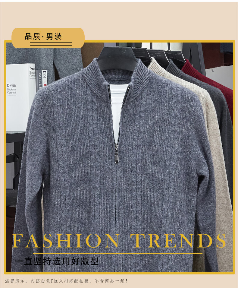 Golden Rabbit 100% pure wool sweater men's brand high-end stand-up collar sweater autumn new zipper cardigan lazy sweater jacket ink gray 46-year-old brand wool sweater 2XL /180