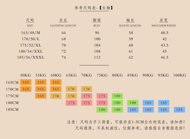China (cm) 160-165/84-86 165-170 / 88-90 167-172 / 92-96 168-173 / 98-102 170-176 / 106-110