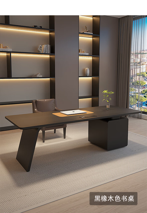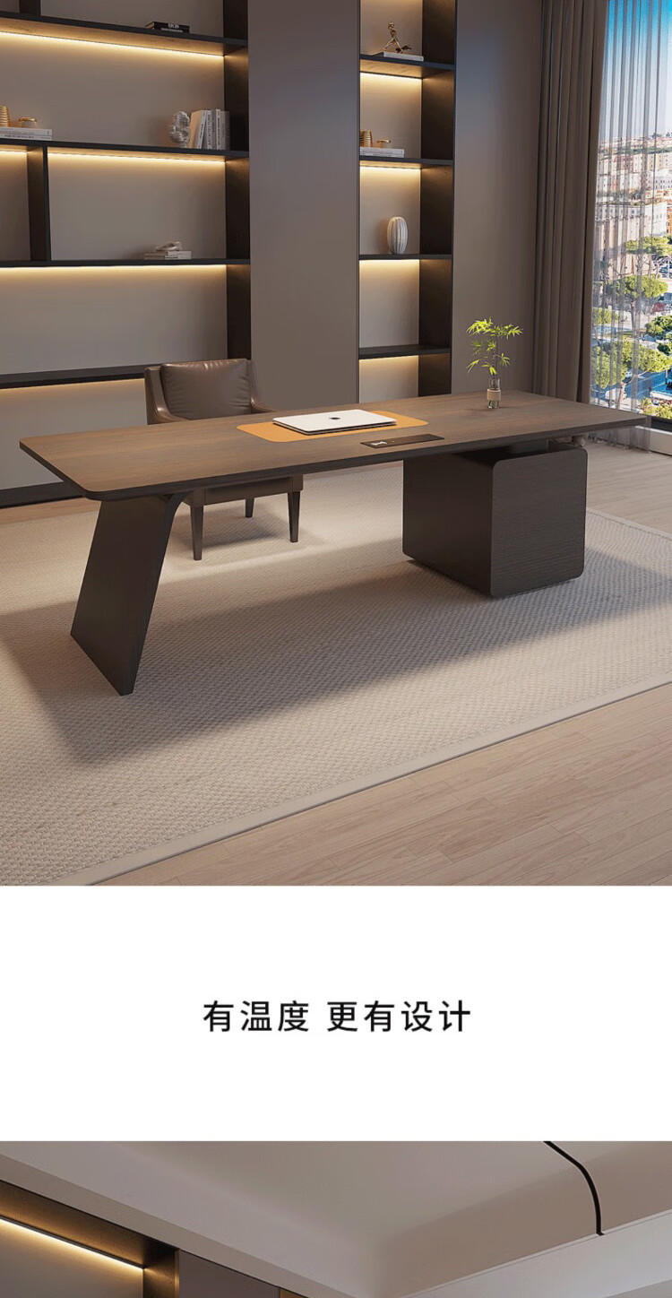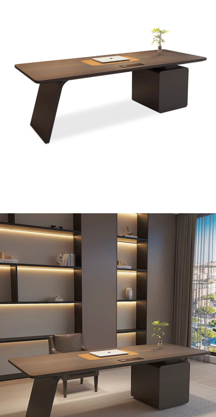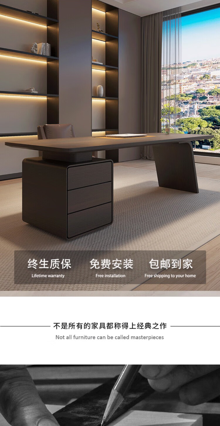 Italian minimalist solid wood desk home living room study desk simple light luxury boss high-end computer desk smoked wood desk/smart power strip 240*80*75cm