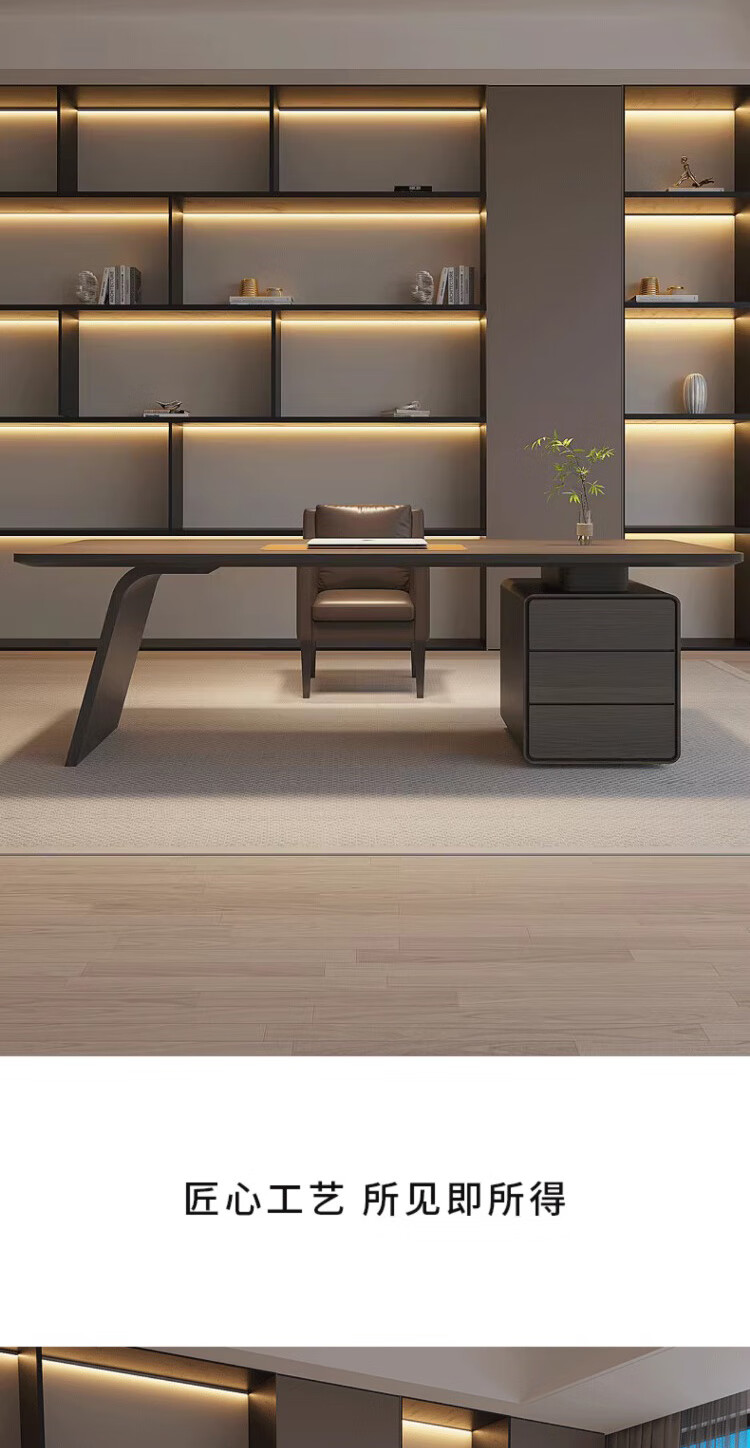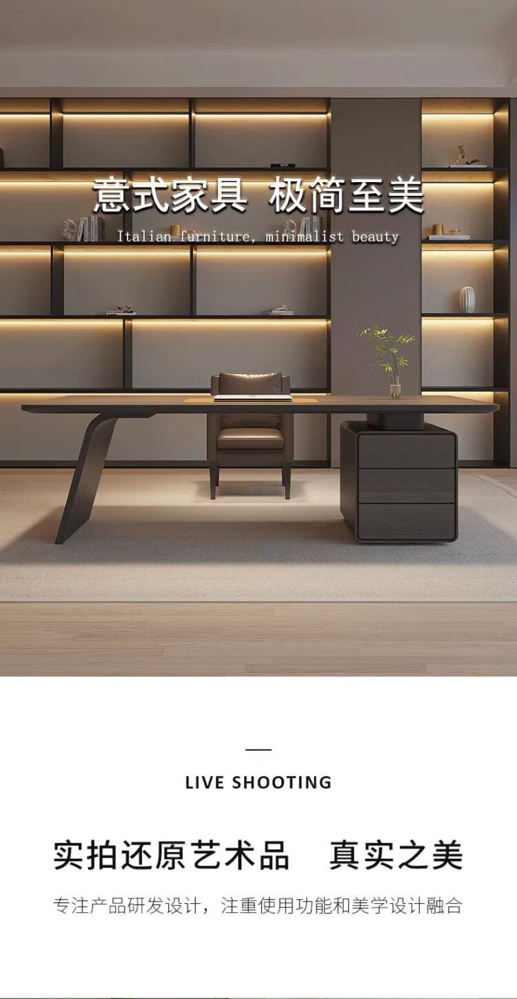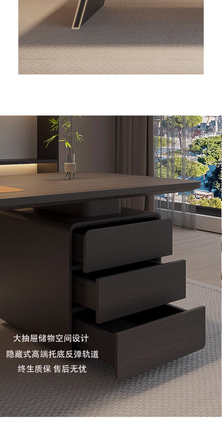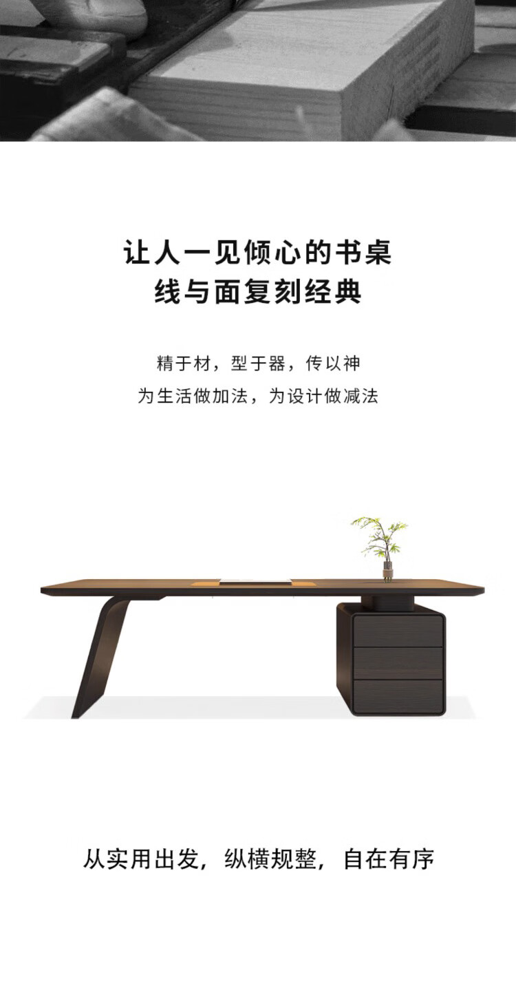 Italian minimalist solid wood desk home living room study desk simple light luxury boss high-end computer desk smoked wood desk/smart power strip 240*80*75cm