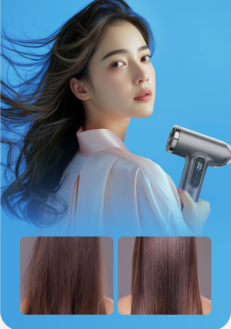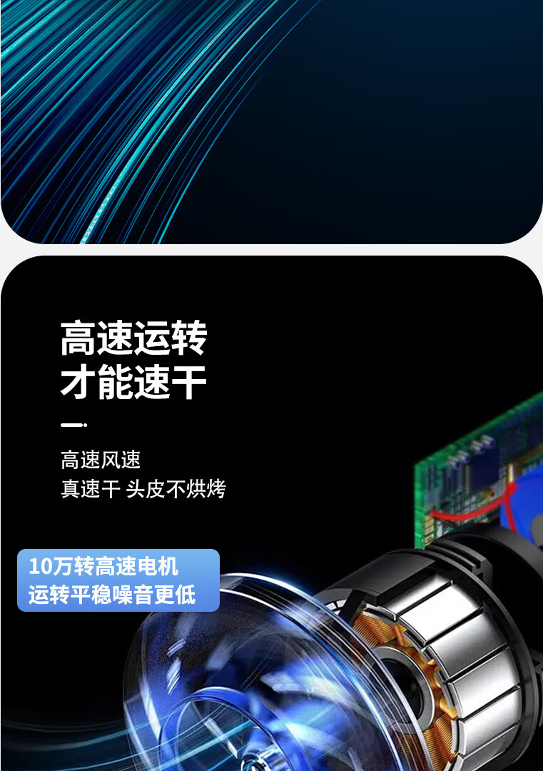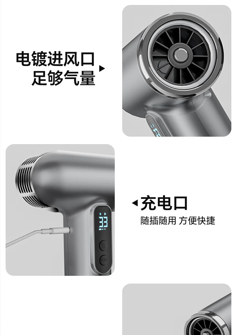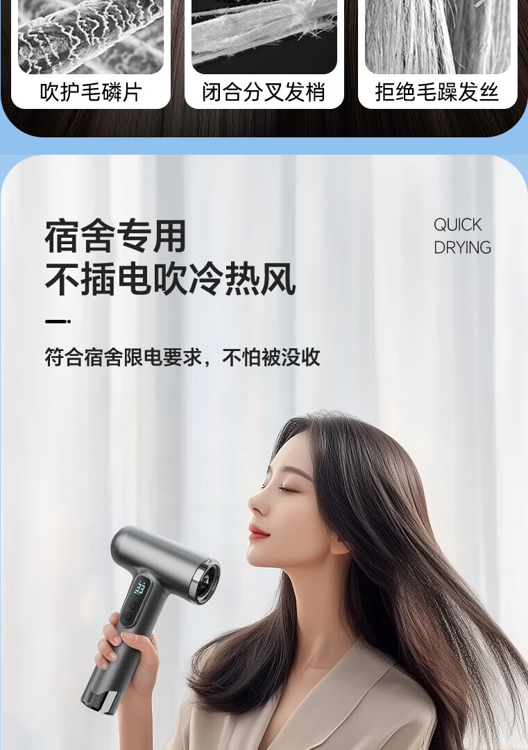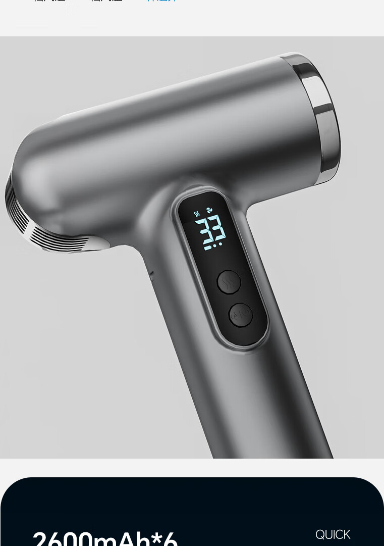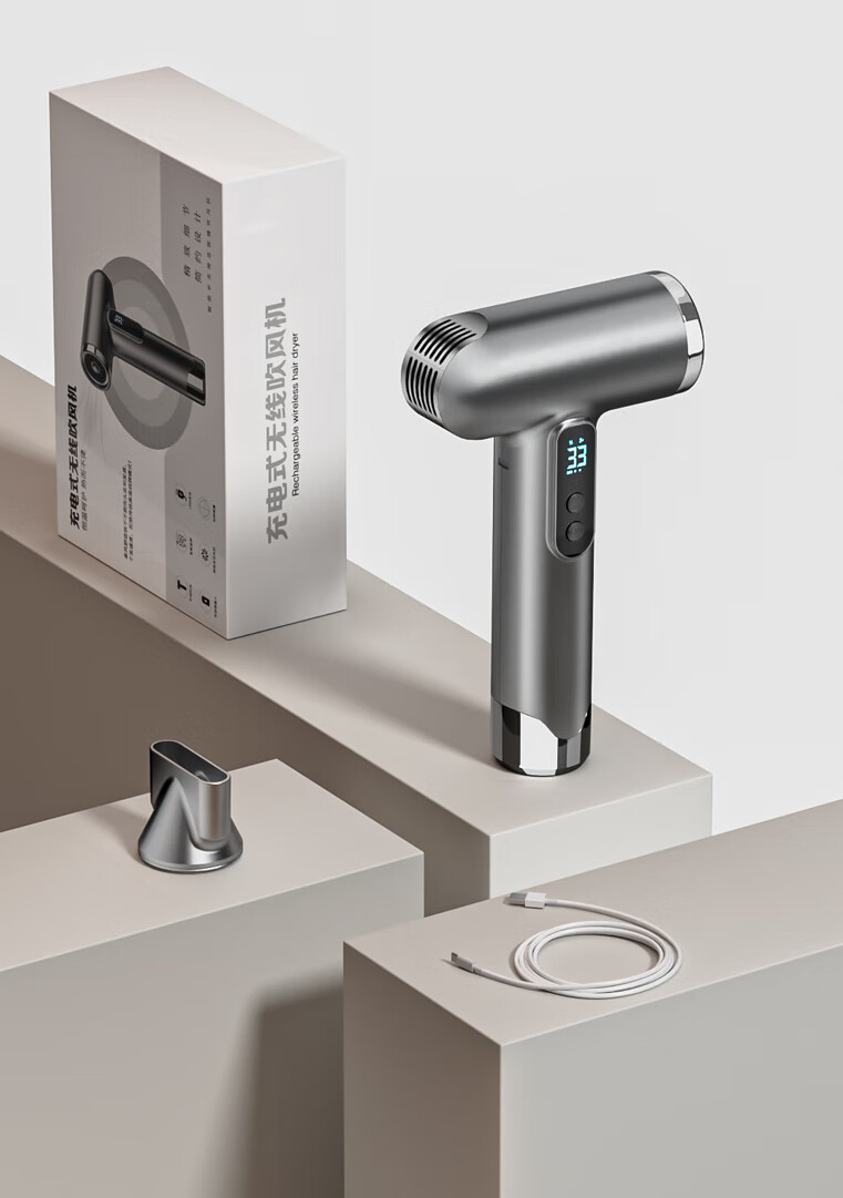 Rechargeable wireless hair dryer hair dryer for student dormitories, dedicated for unplugged hair drying, hot and cold, portable, mechanical gray, 100,000 rpm, unplugged, can blow hot air, smart charging/unplugged hot air