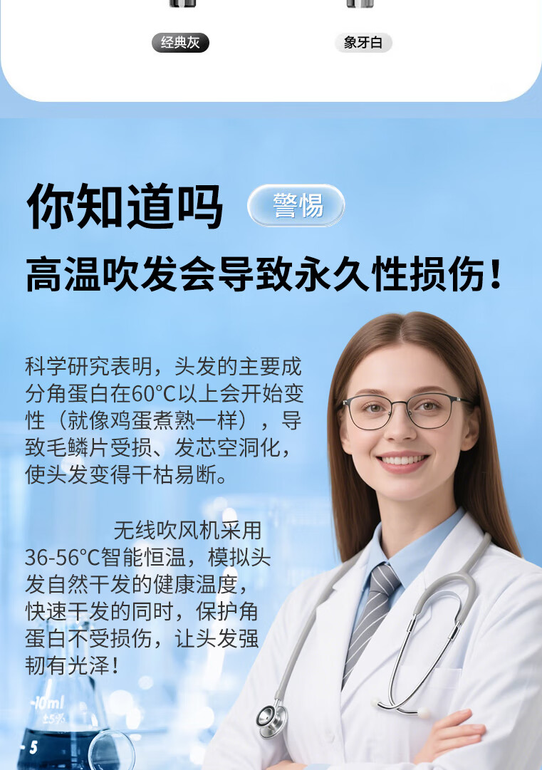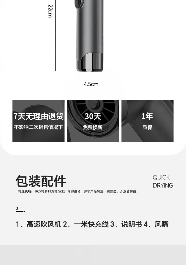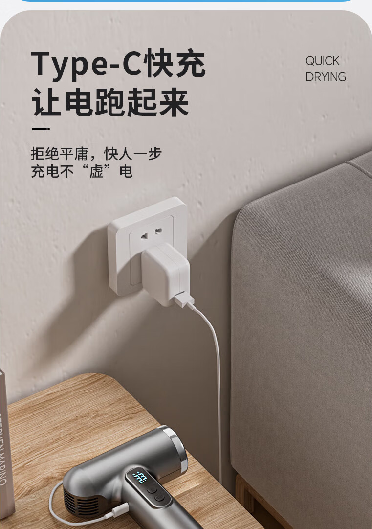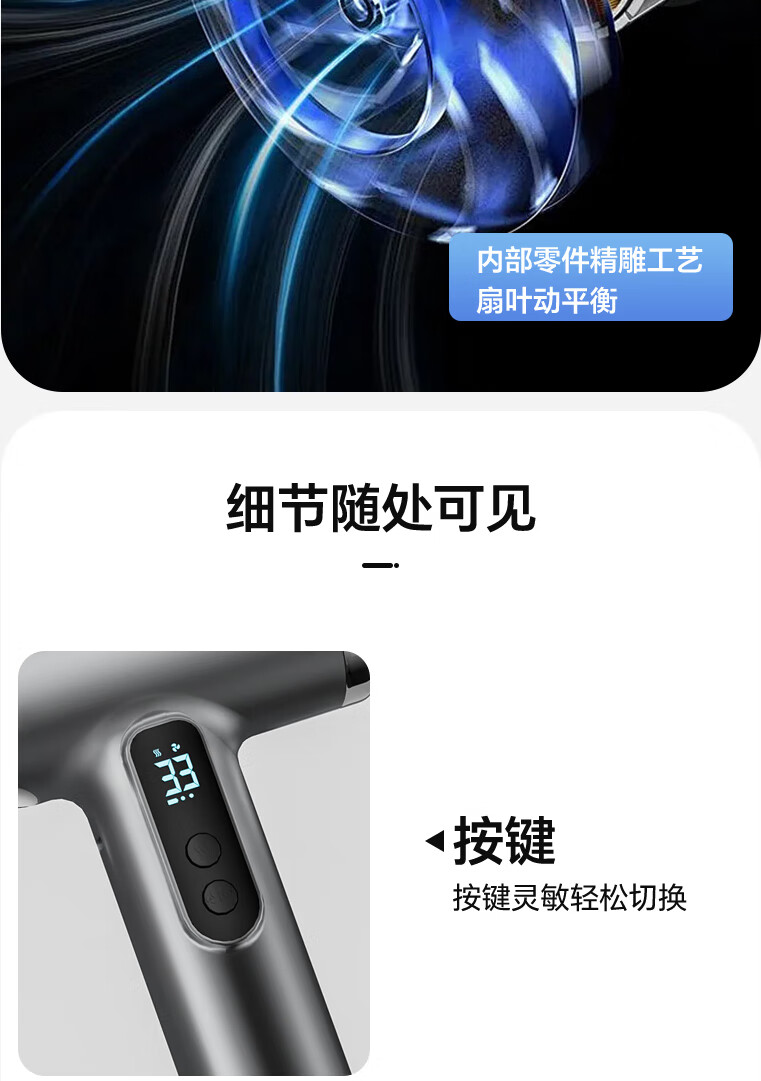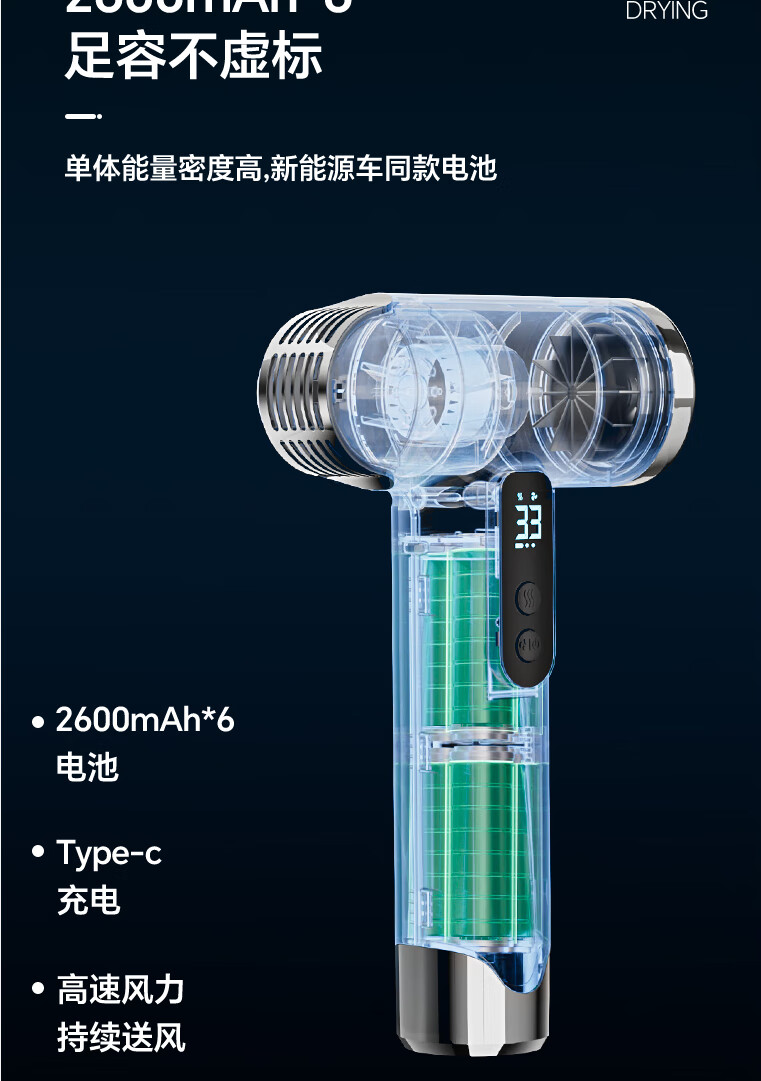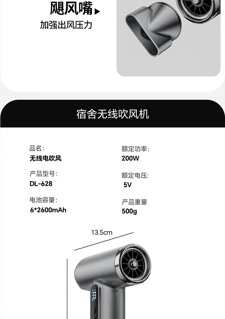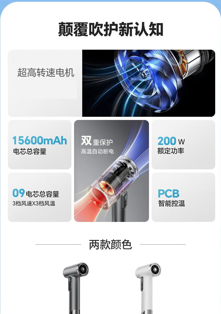 Rechargeable wireless hair dryer hair dryer for student dormitories, dedicated for unplugged hair drying, hot and cold, portable, mechanical gray, 100,000 rpm, unplugged, can blow hot air, smart charging/unplugged hot air