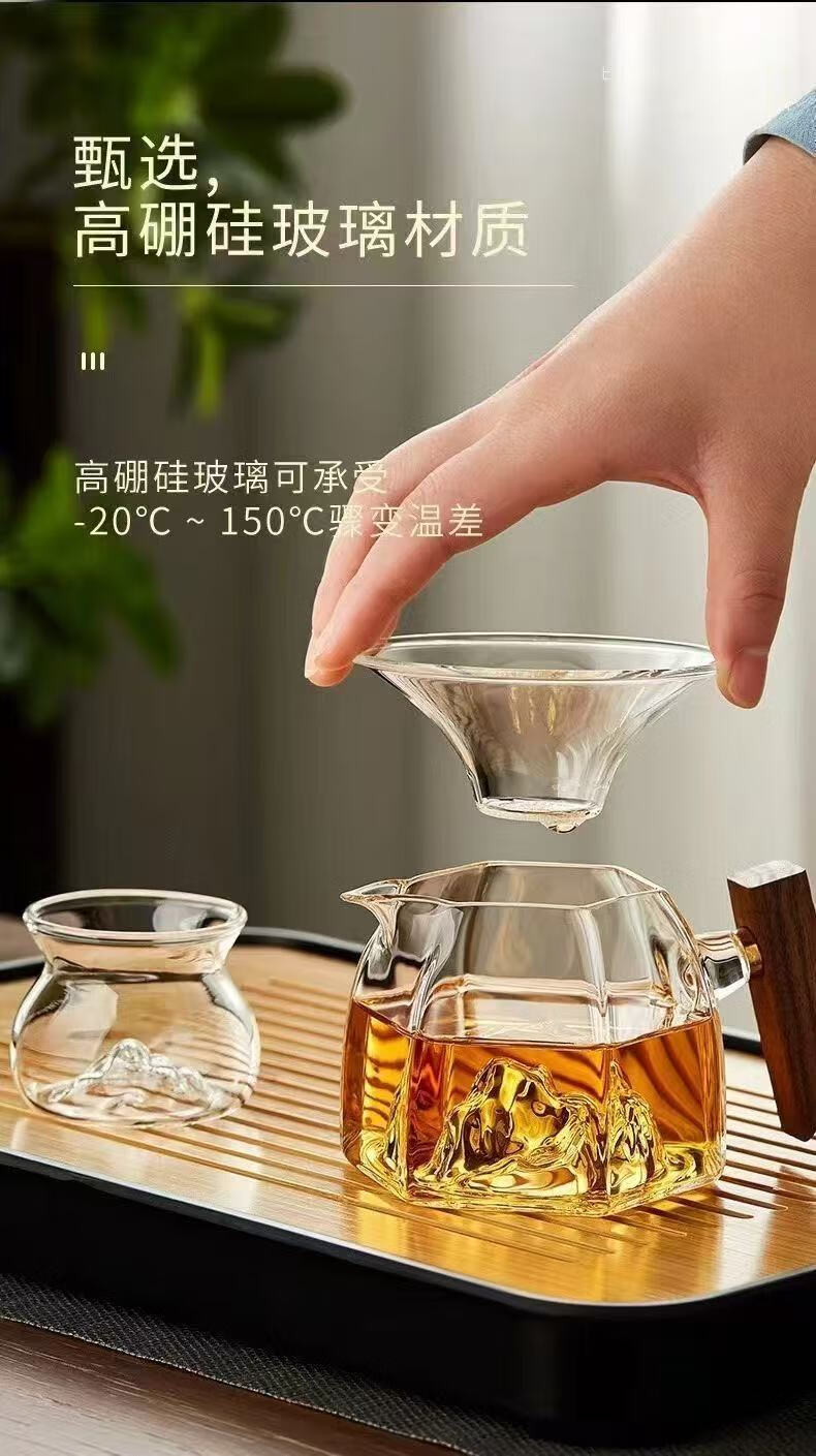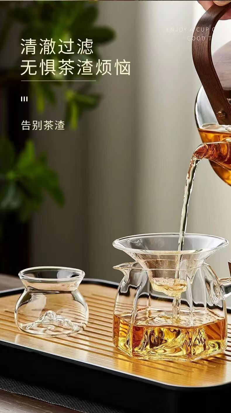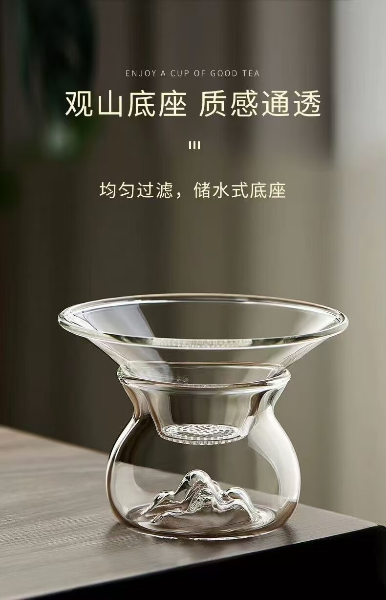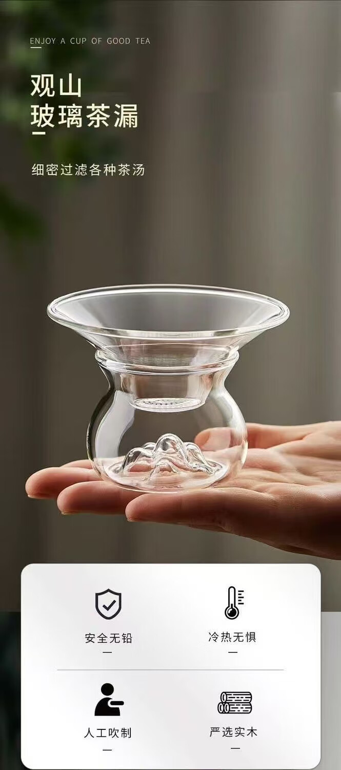 Tea leak tea filter tea filter tea water separation tea separator tea artifact glass tea leak split filter transparent color view mountain tea leak set