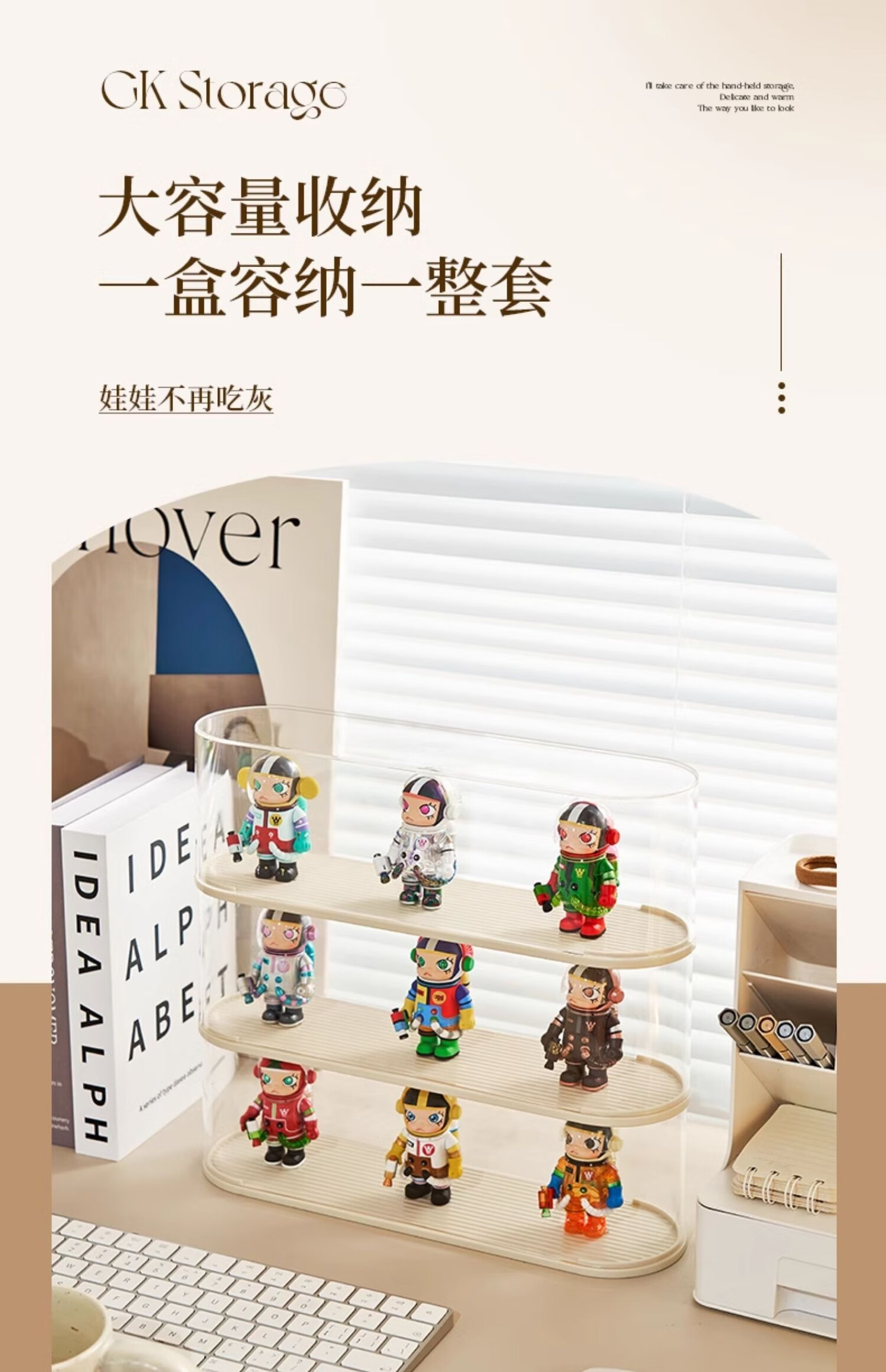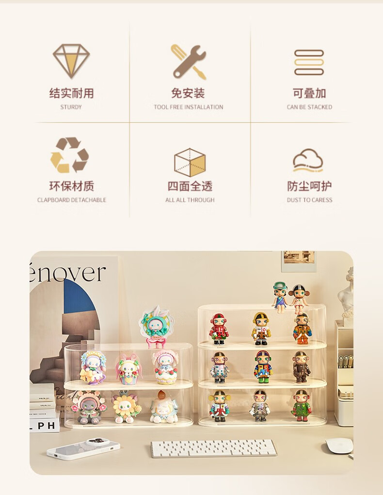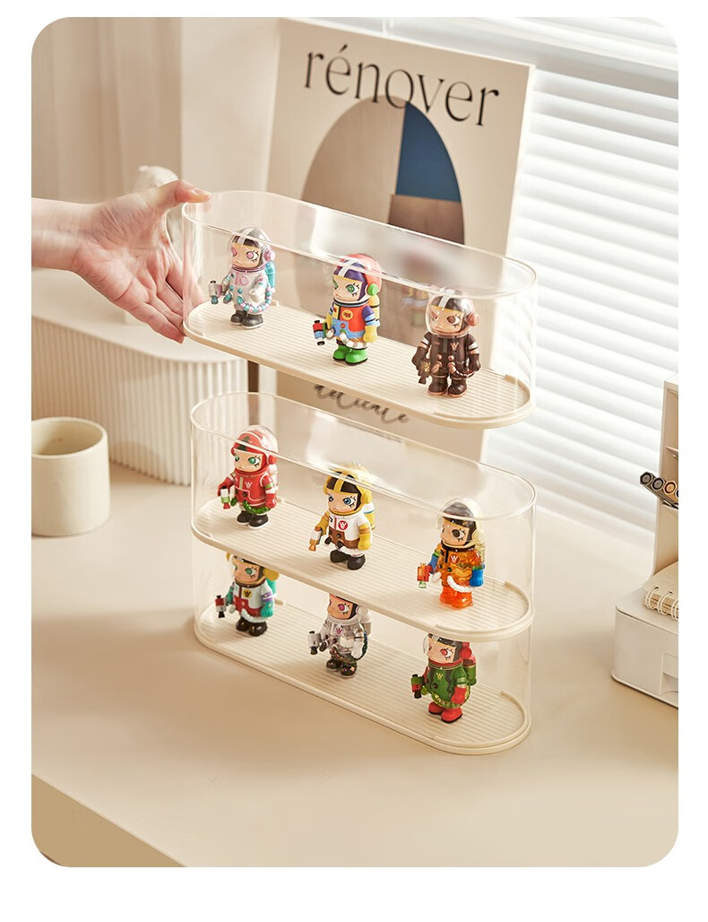 Blind box storage display stand Bubble Mart display cabinet small figurine doll doll cloth transparent dust-proof box arc single layer * 1 pack - free of glue / thickened and strong