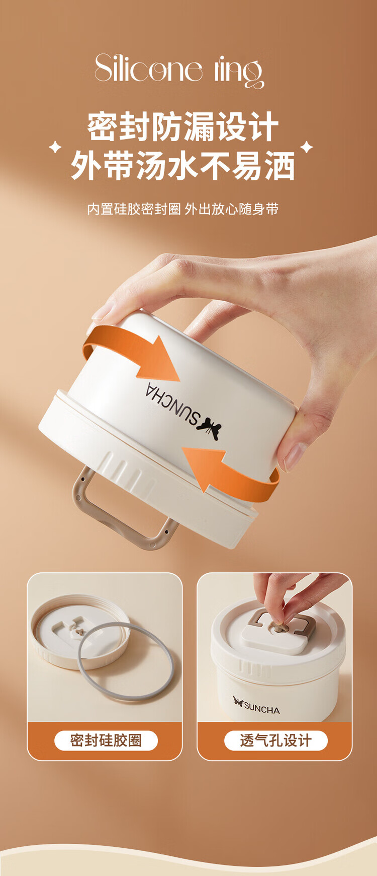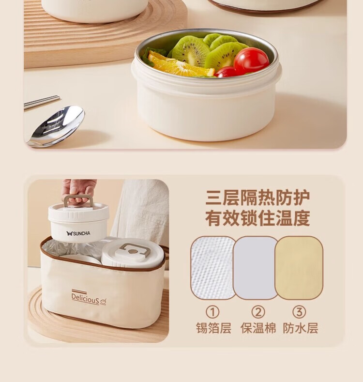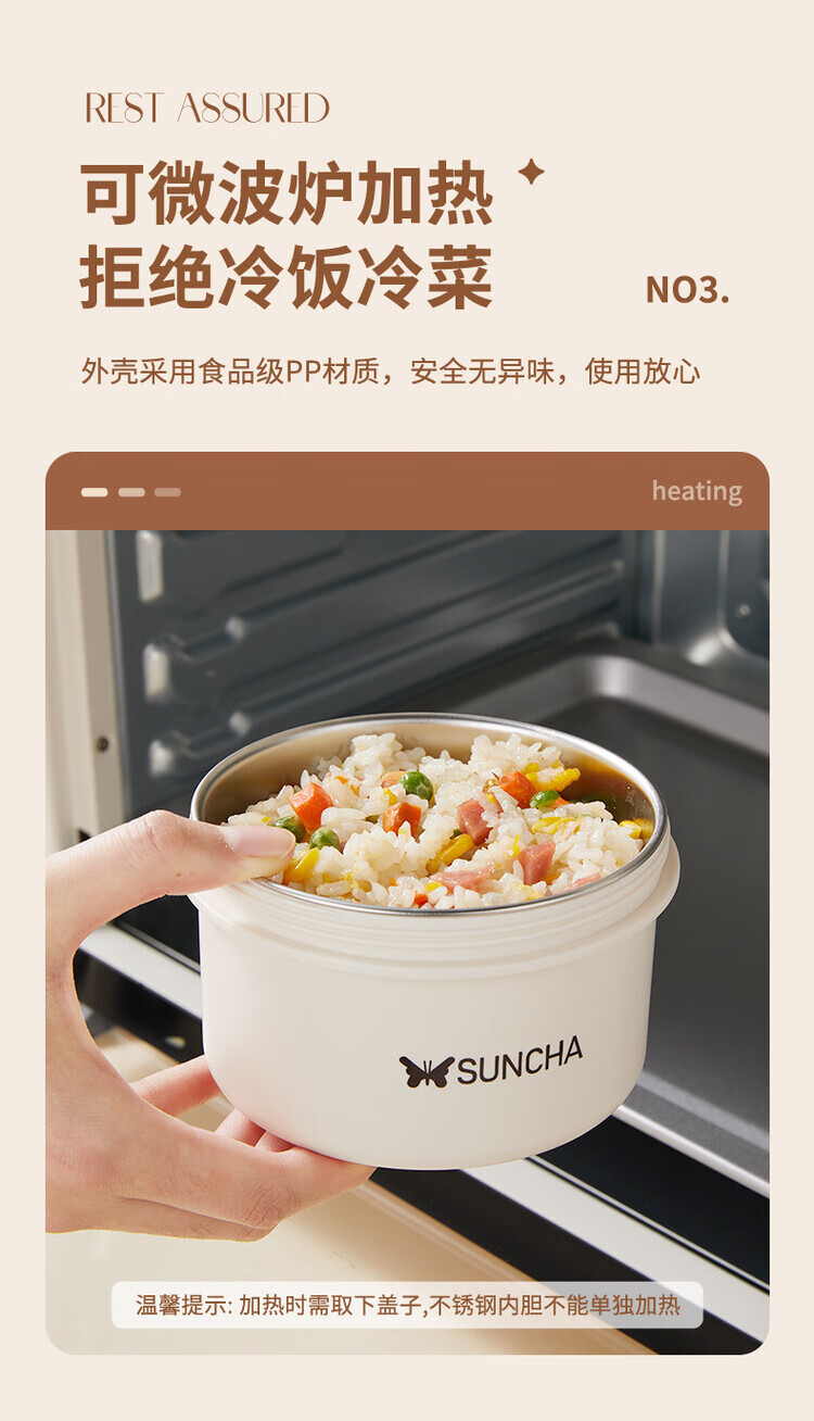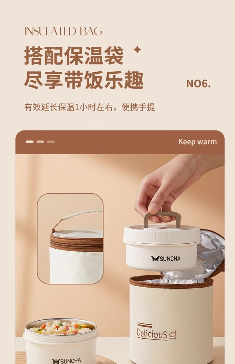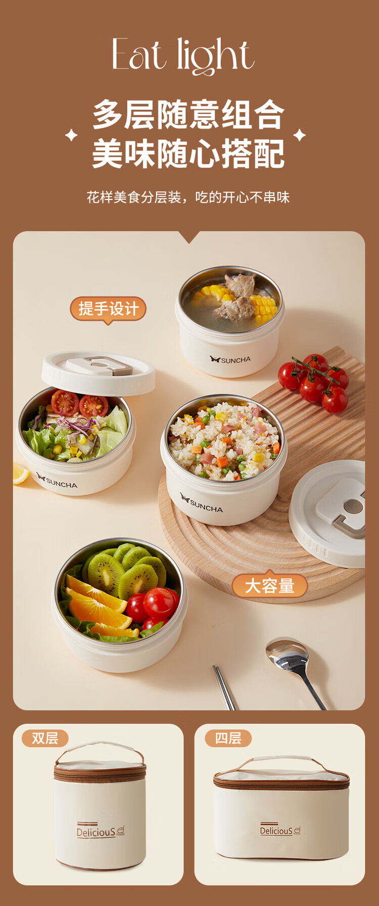 Suncha stainless steel insulated lunch box, a lunch tool for office workers, 2025 new lunch box, microwaveable lunch box, 2 pieces, free insulated bag
