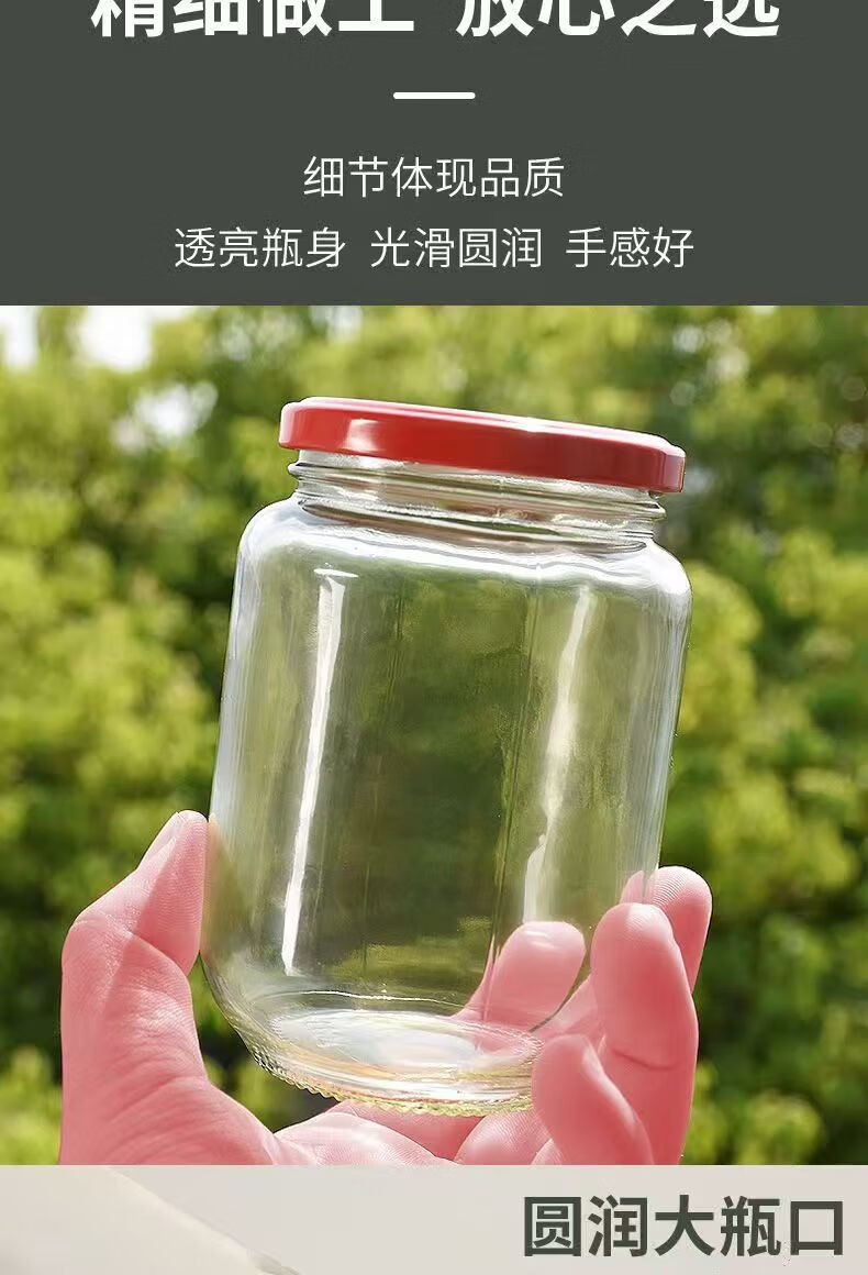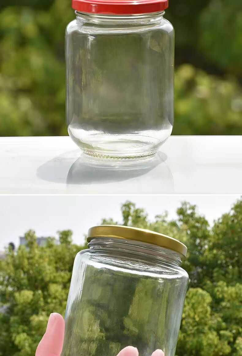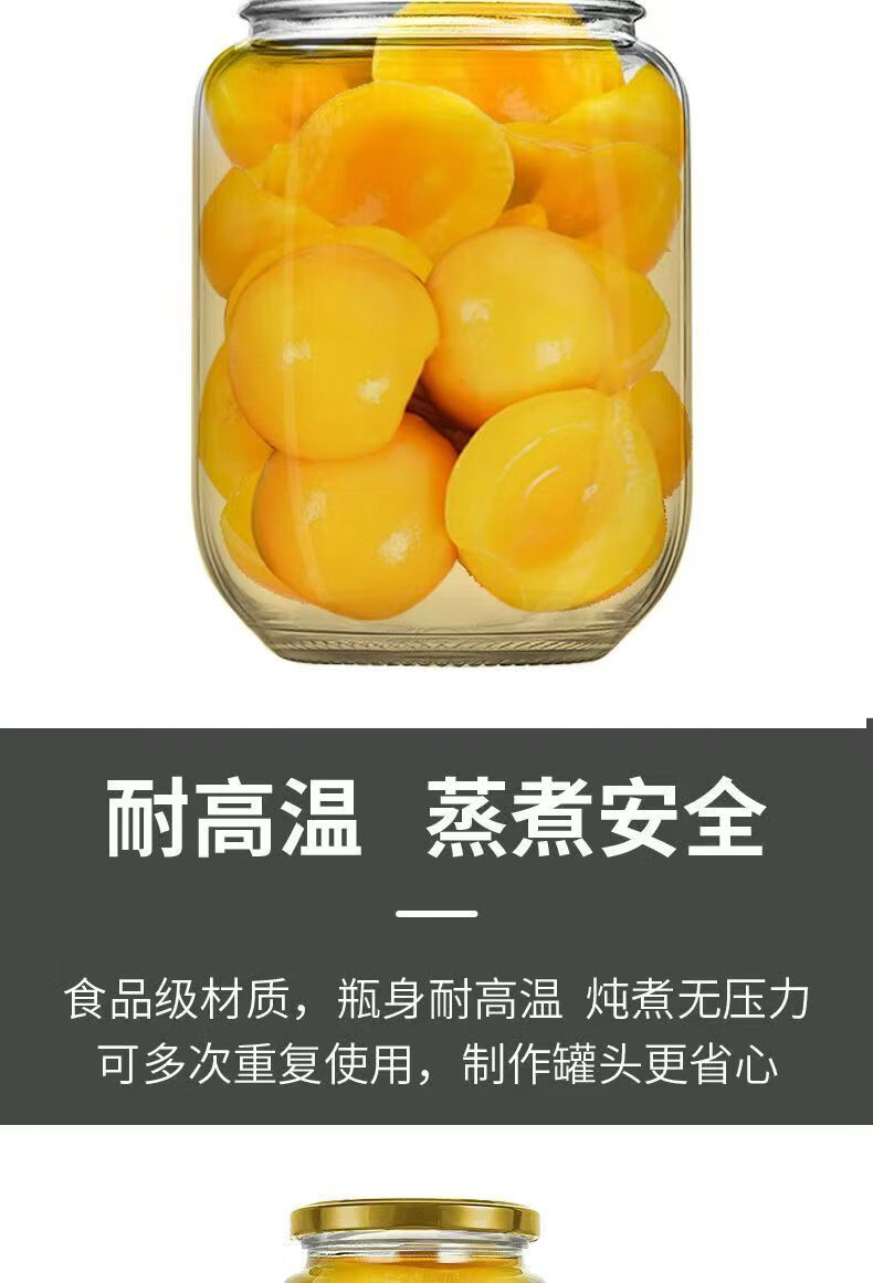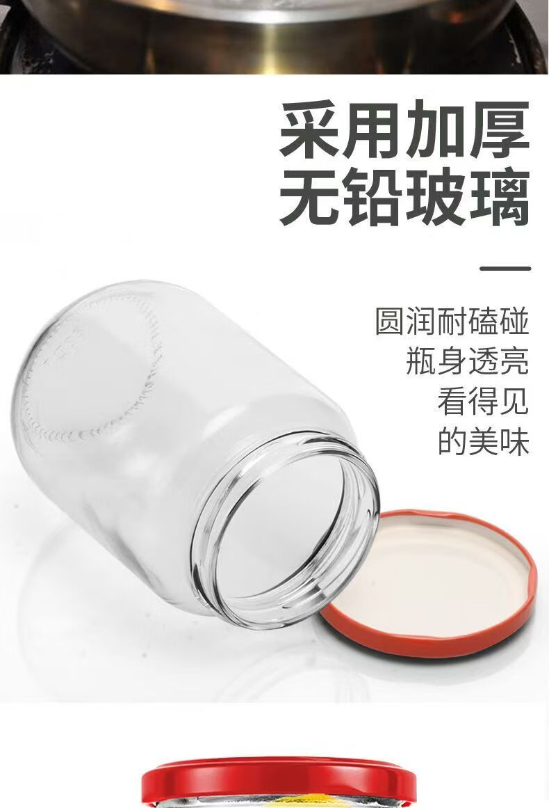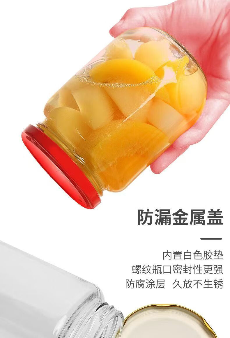 Retortable canned bottle empty bottle with lid high temperature resistant fruit yellow peach glass bottle sealed jar food grade household 1000ml red lid 6 pieces