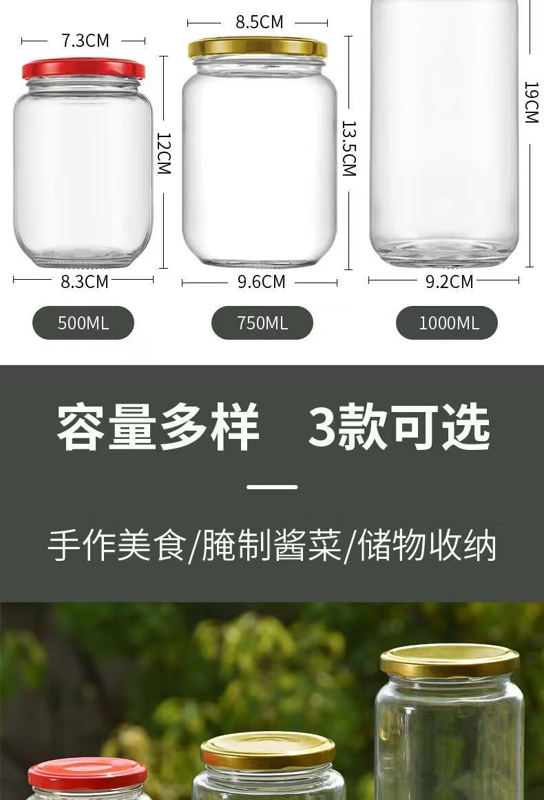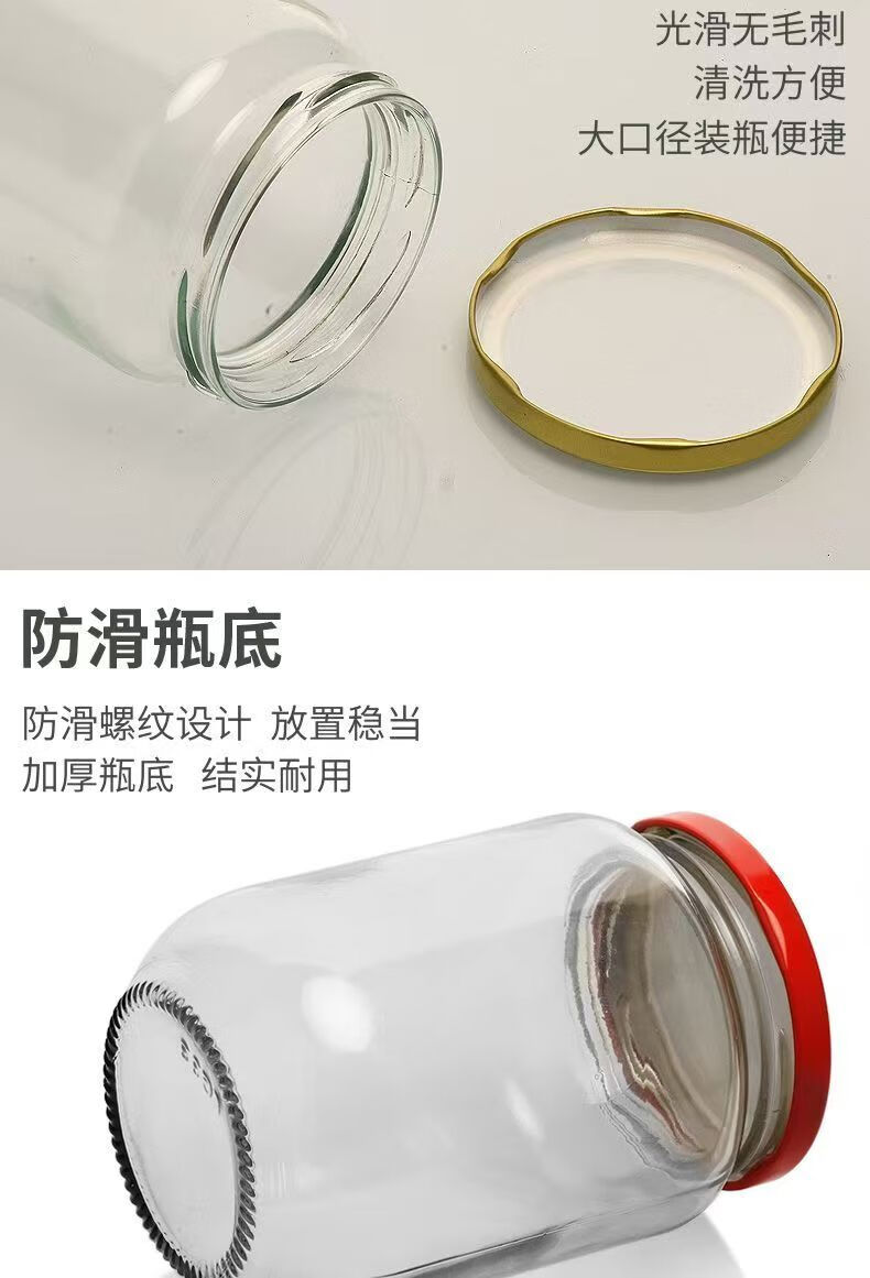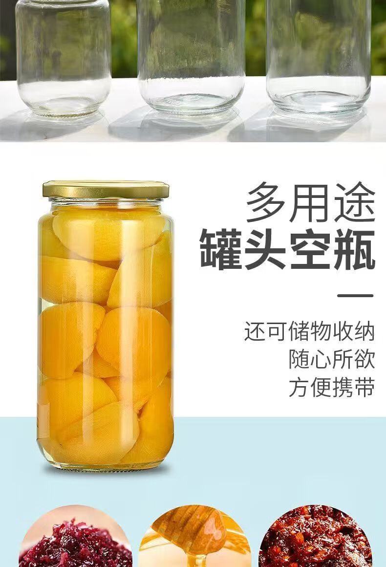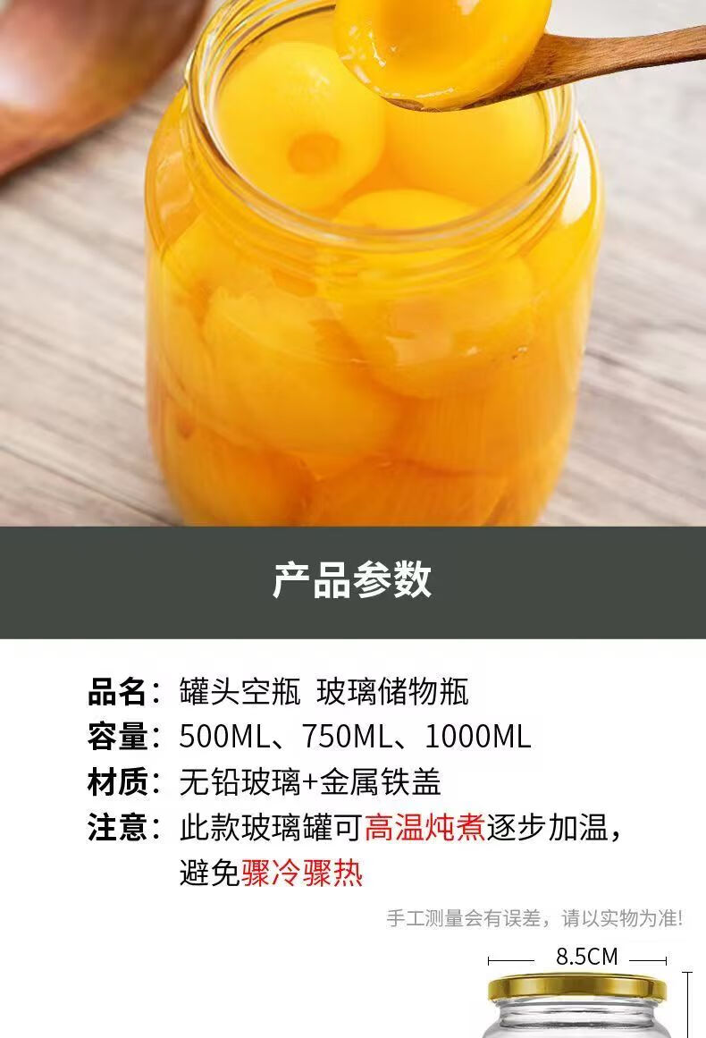 Retortable canned bottle empty bottle with lid high temperature resistant fruit yellow peach glass bottle sealed jar food grade household 1000ml red lid 6 pieces