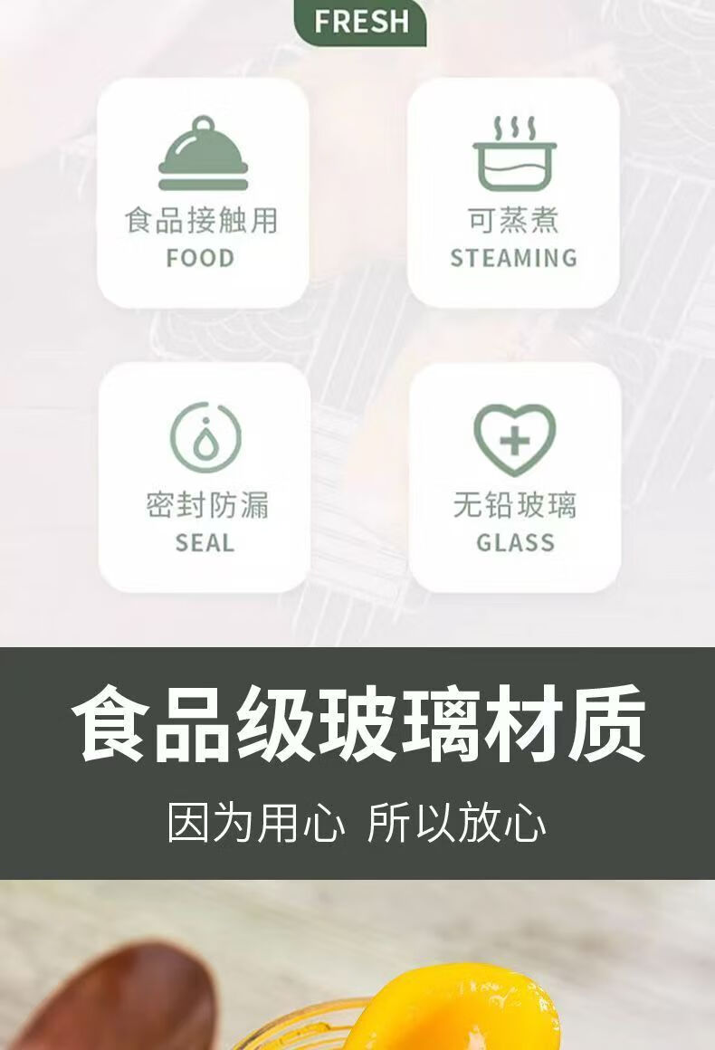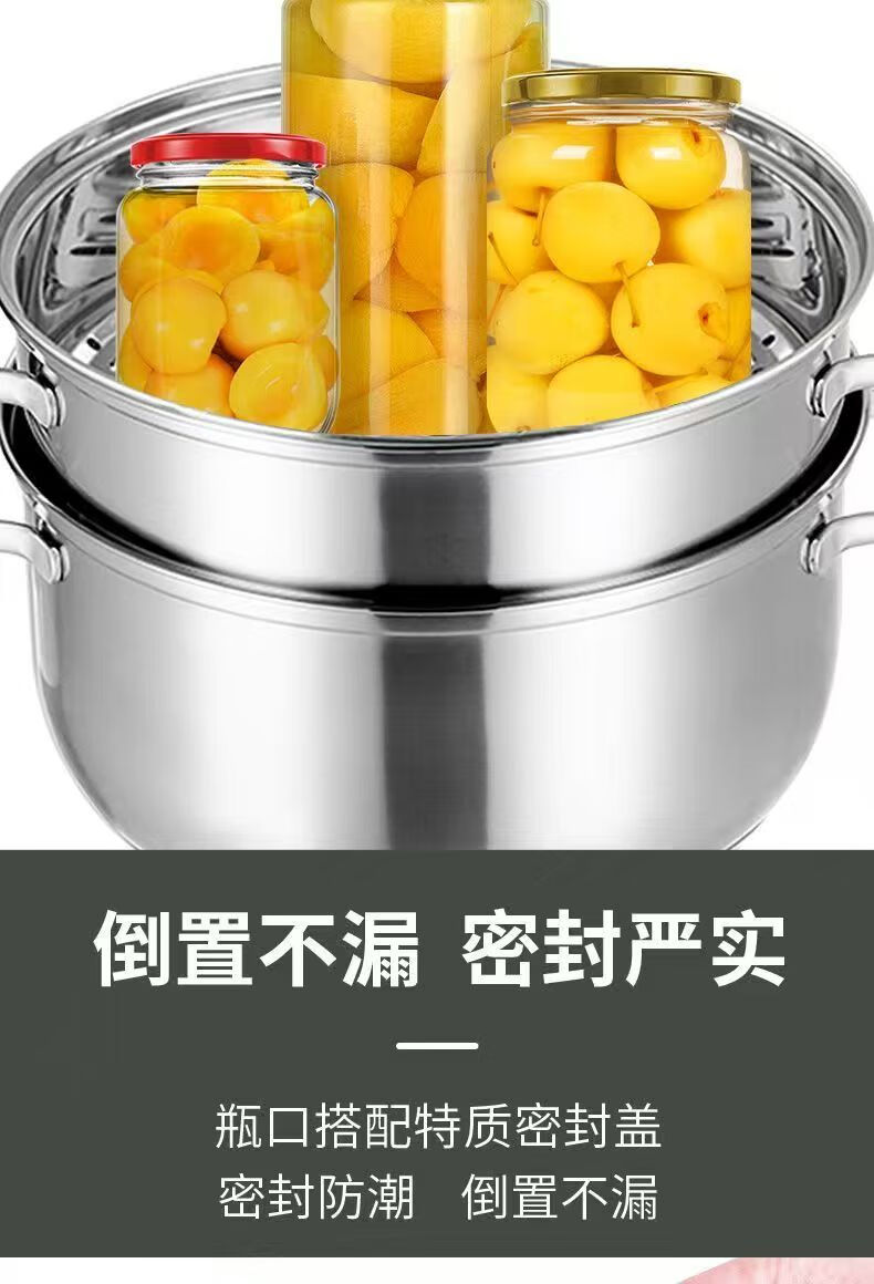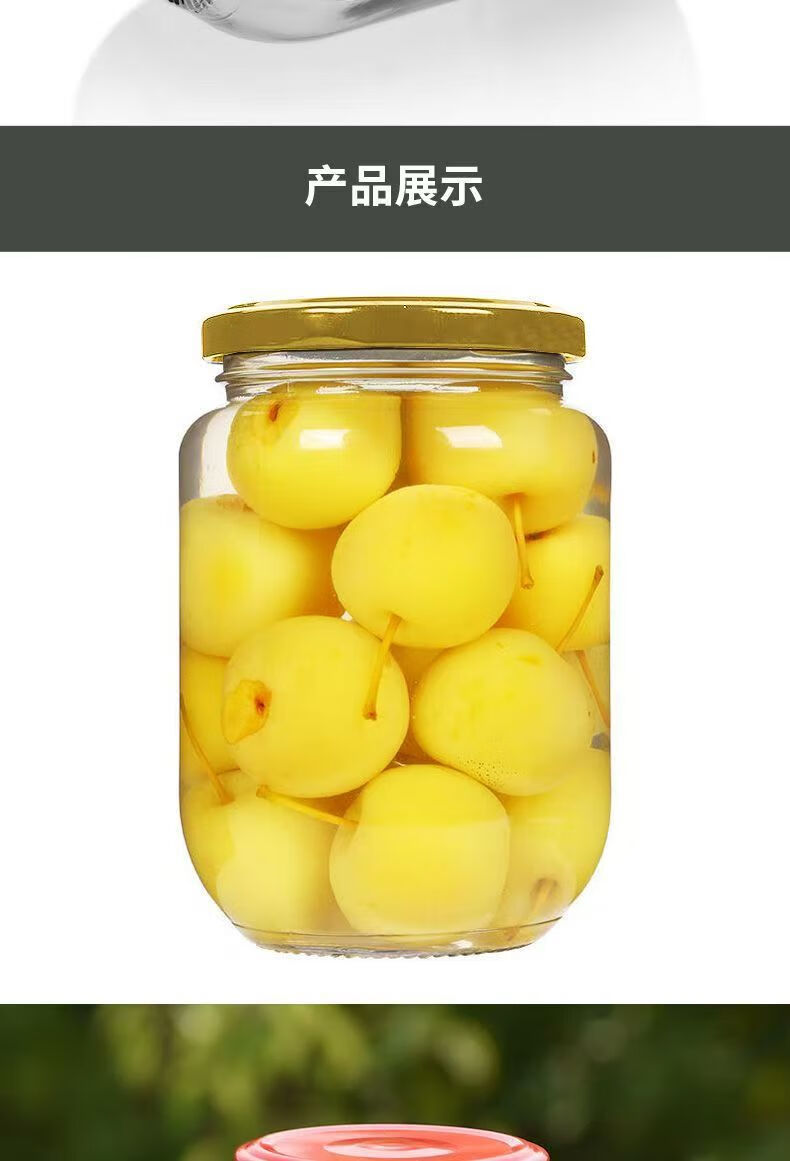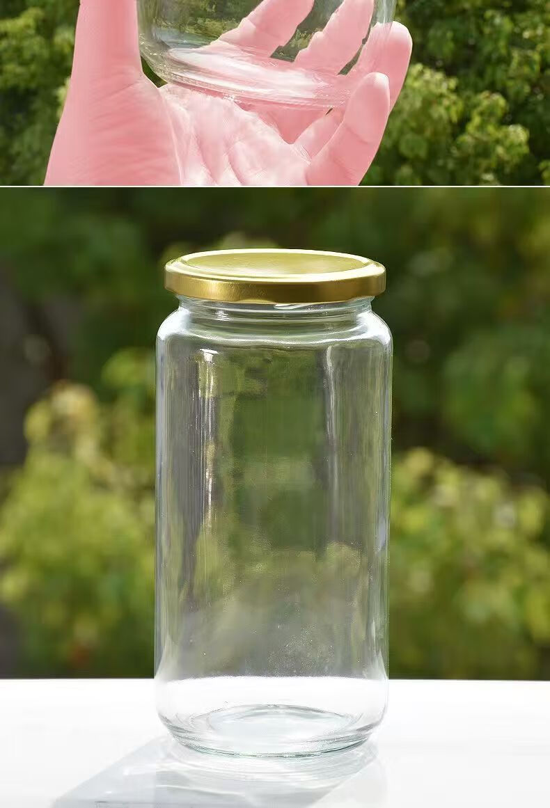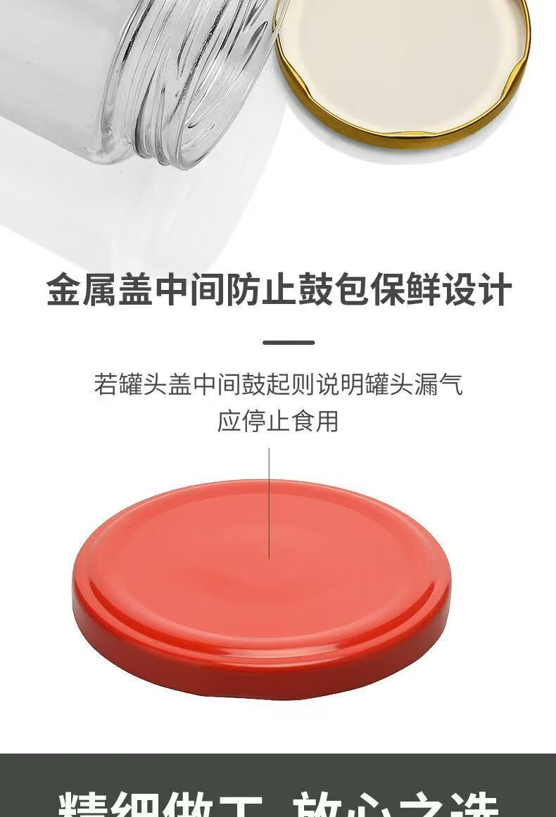 Retortable canned bottle empty bottle with lid high temperature resistant fruit yellow peach glass bottle sealed jar food grade household 1000ml red lid 6 pieces