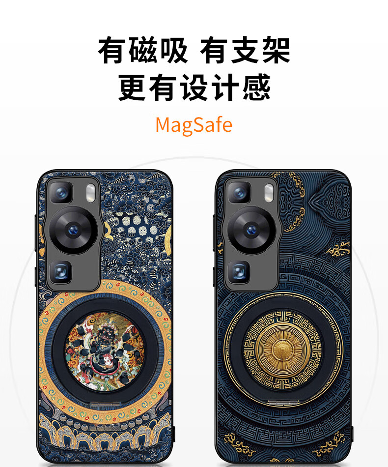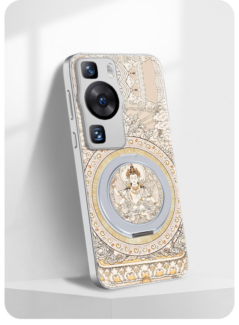 The country of trouble is suitable for Huawei p60pro magnetic art fulcrum mobile phone case 50 integrated with stand 360 degree rotation 40 five gods of wealth twelve zodiac national style all-inclusive edge protective cover new six-arm Mahakala (universal for the twelve zodiac signs) - magnetic fulcrum case Huawei P50