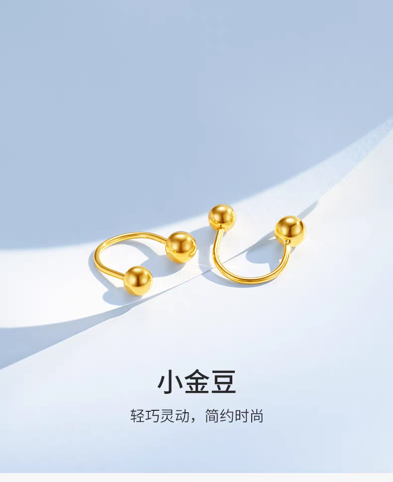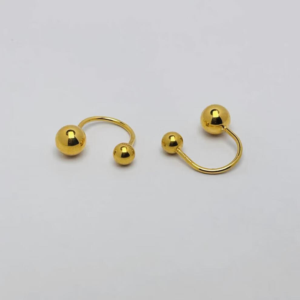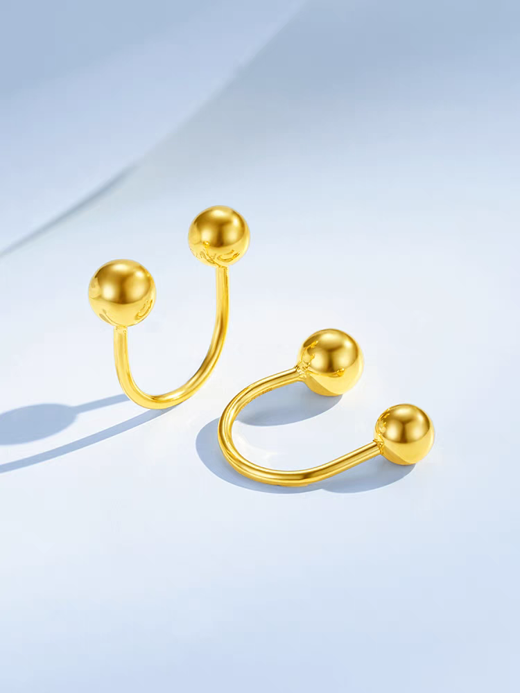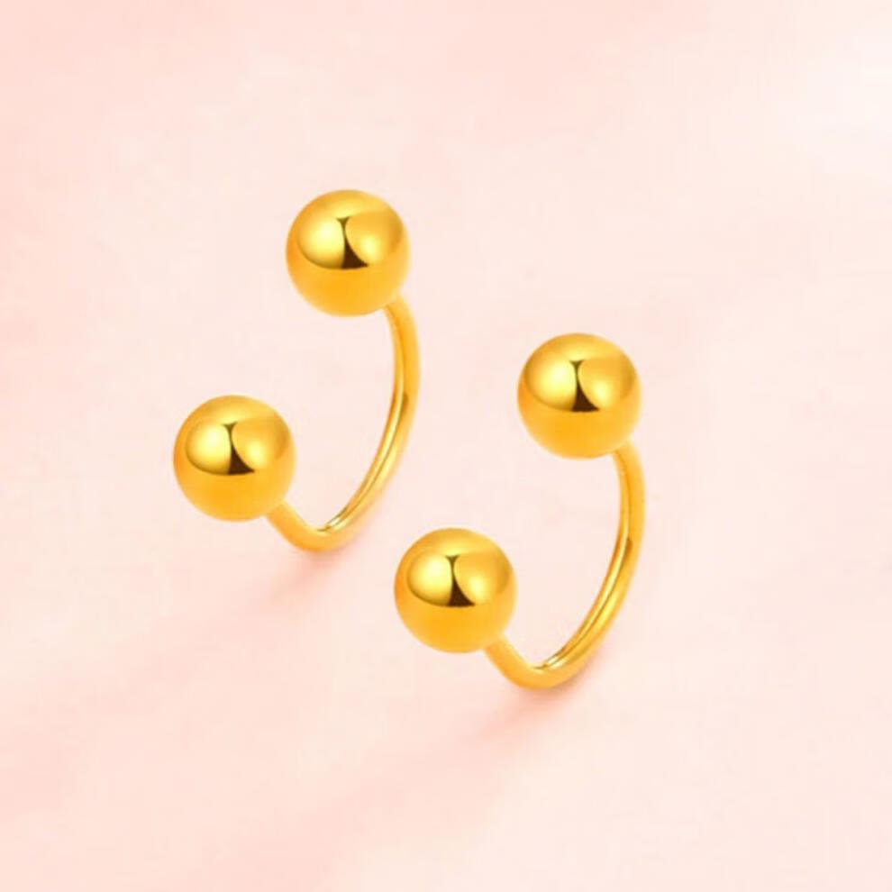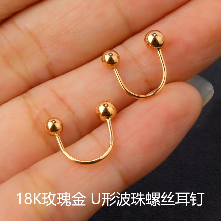 Fat Donglai's same color gold earrings 18K gold women's rose gold U-shaped bean earrings gold round bead earrings U-shaped double gold bean earrings pair