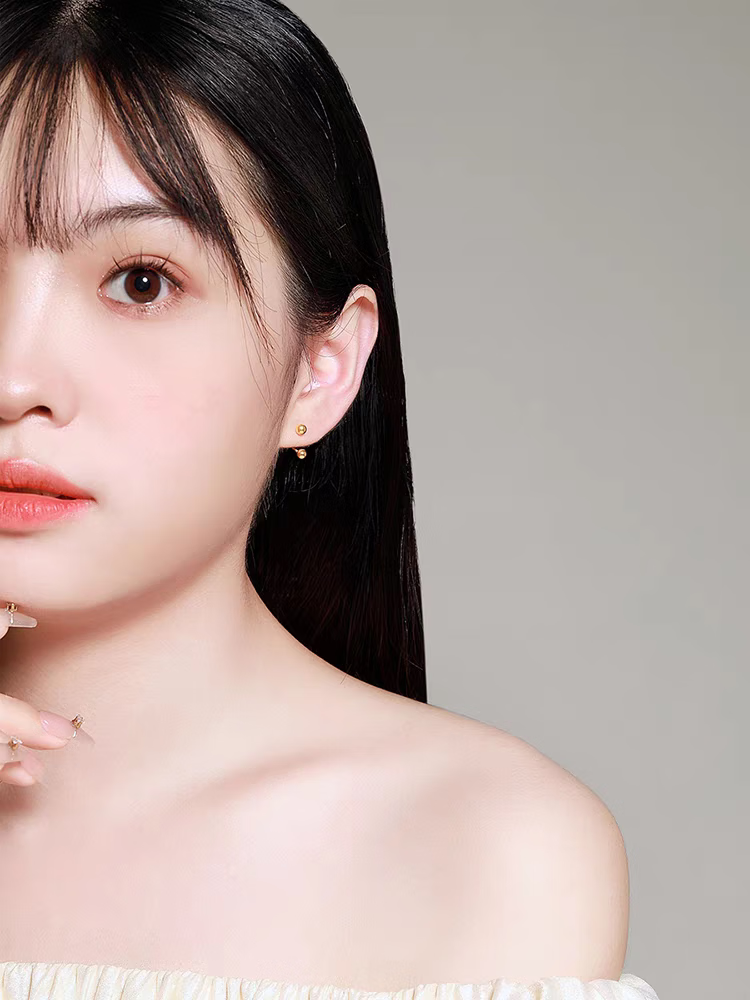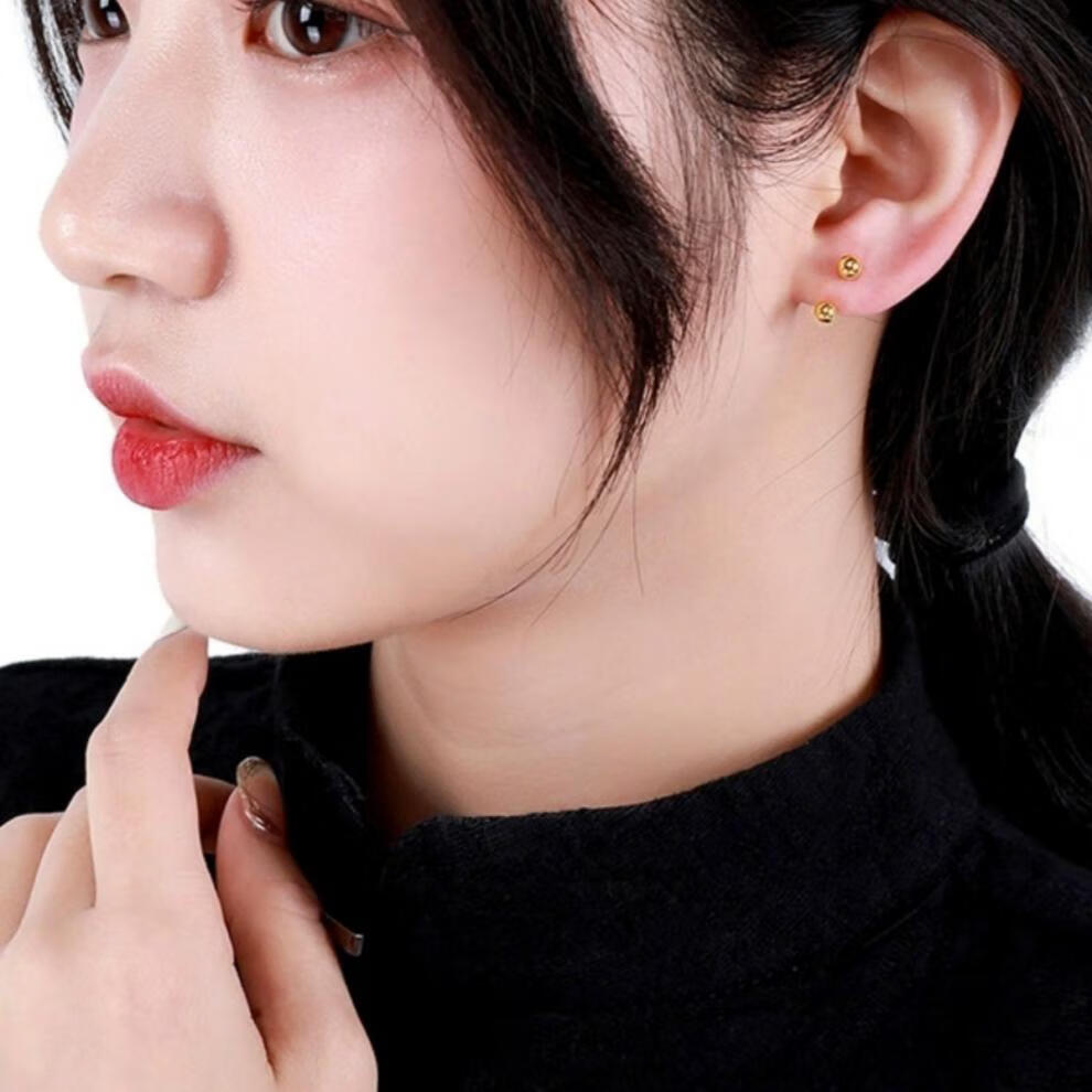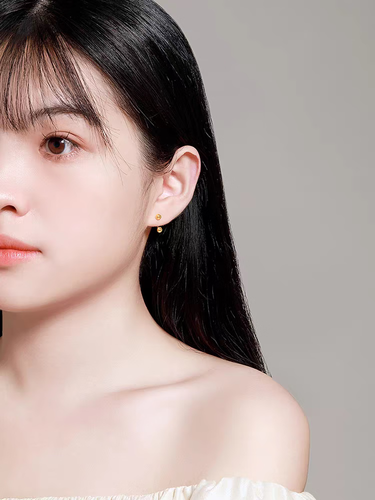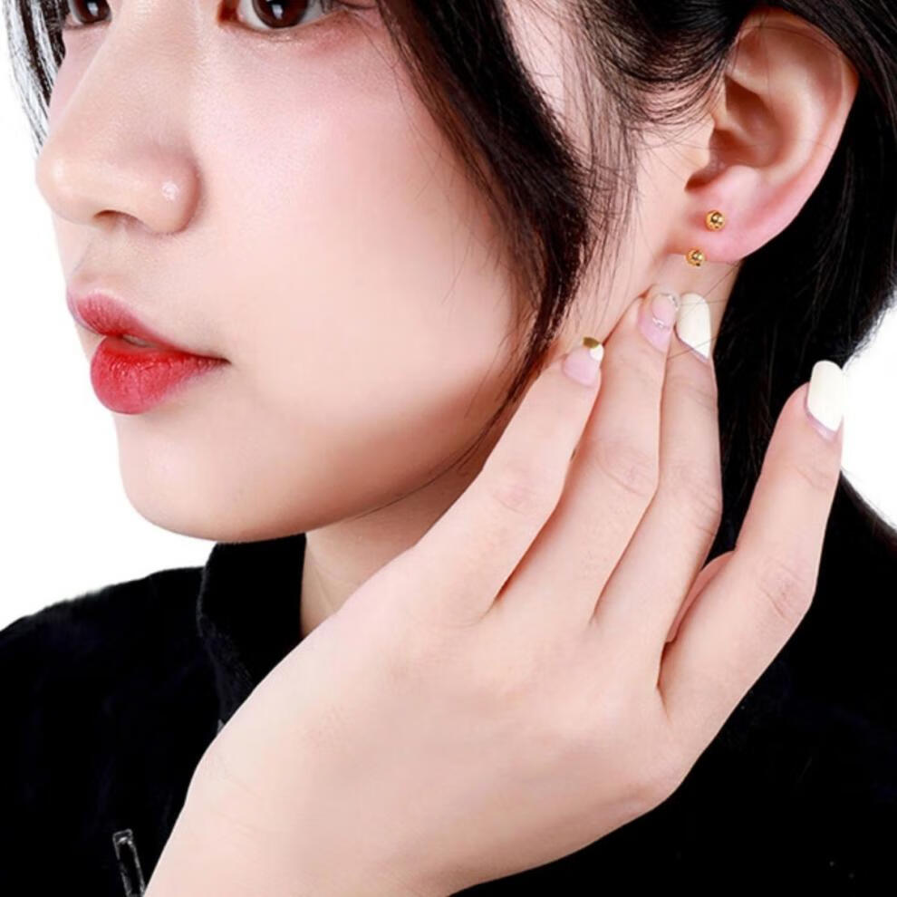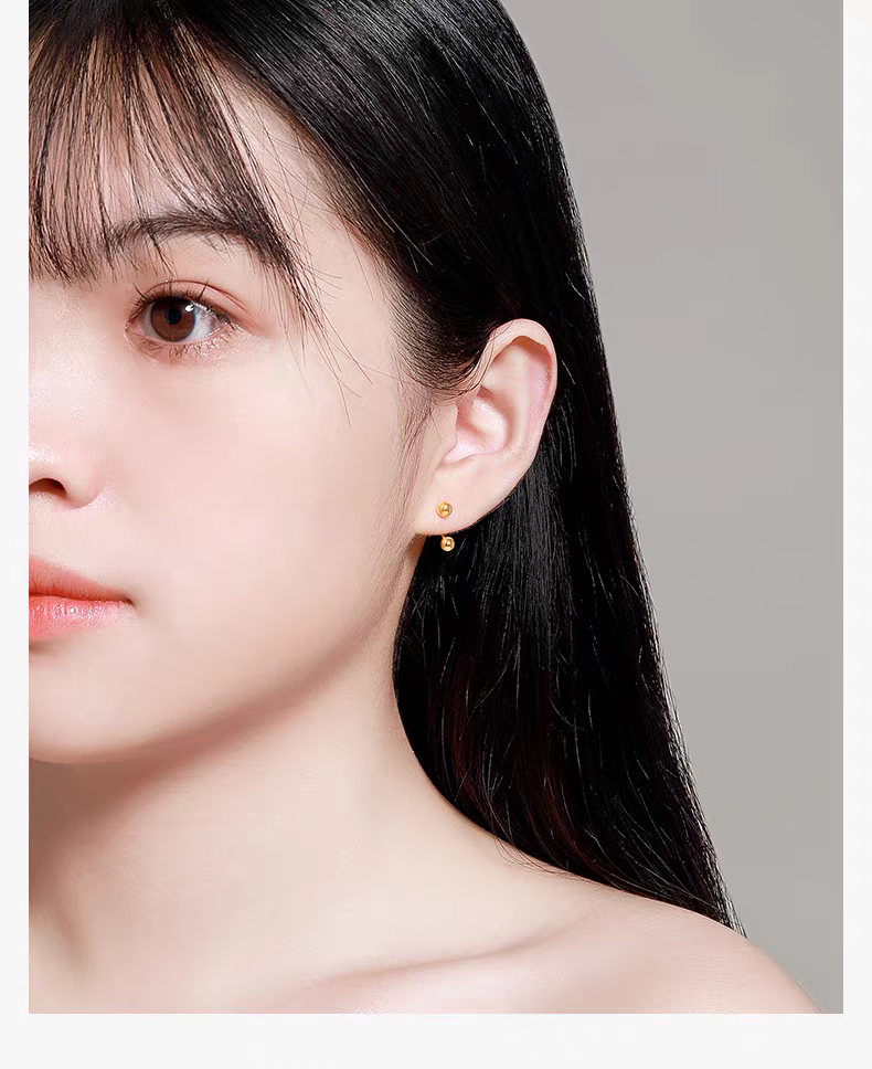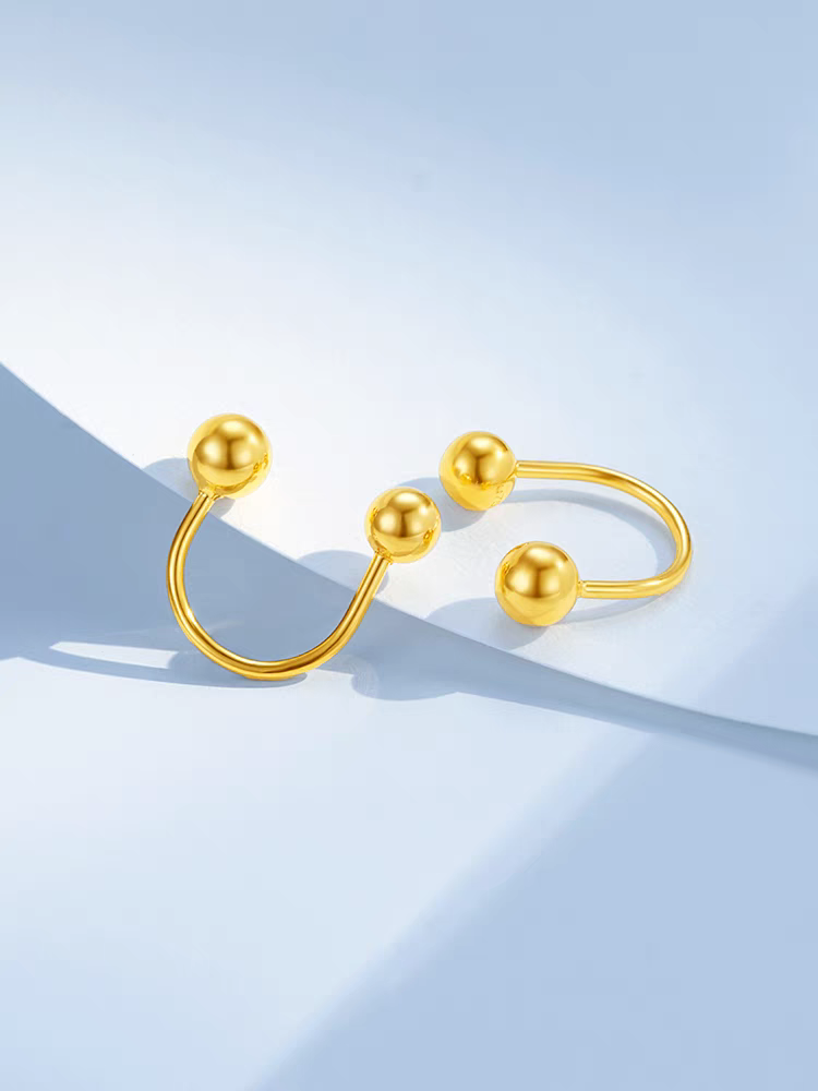 Fat Donglai's same color gold earrings 18K gold women's rose gold U-shaped bean earrings gold round bead earrings U-shaped double gold bean earrings pair
