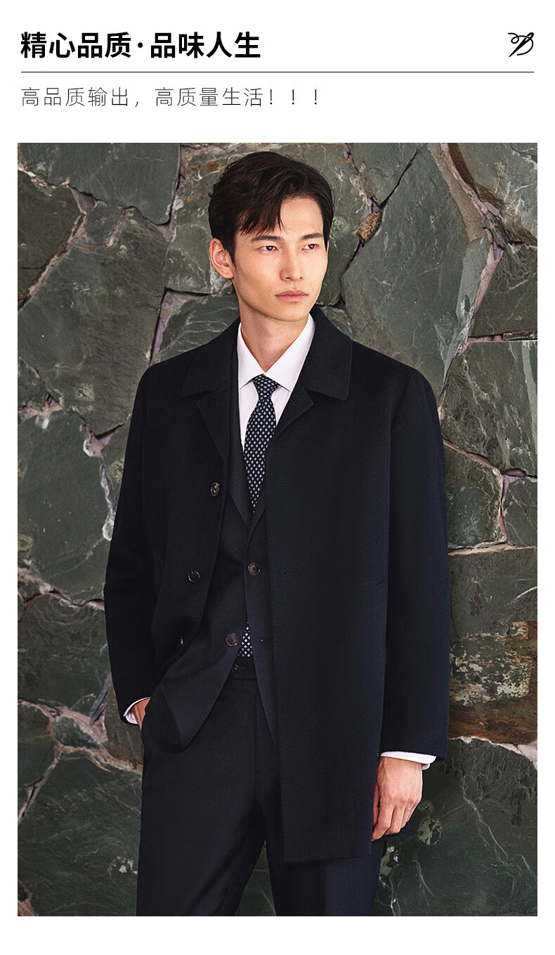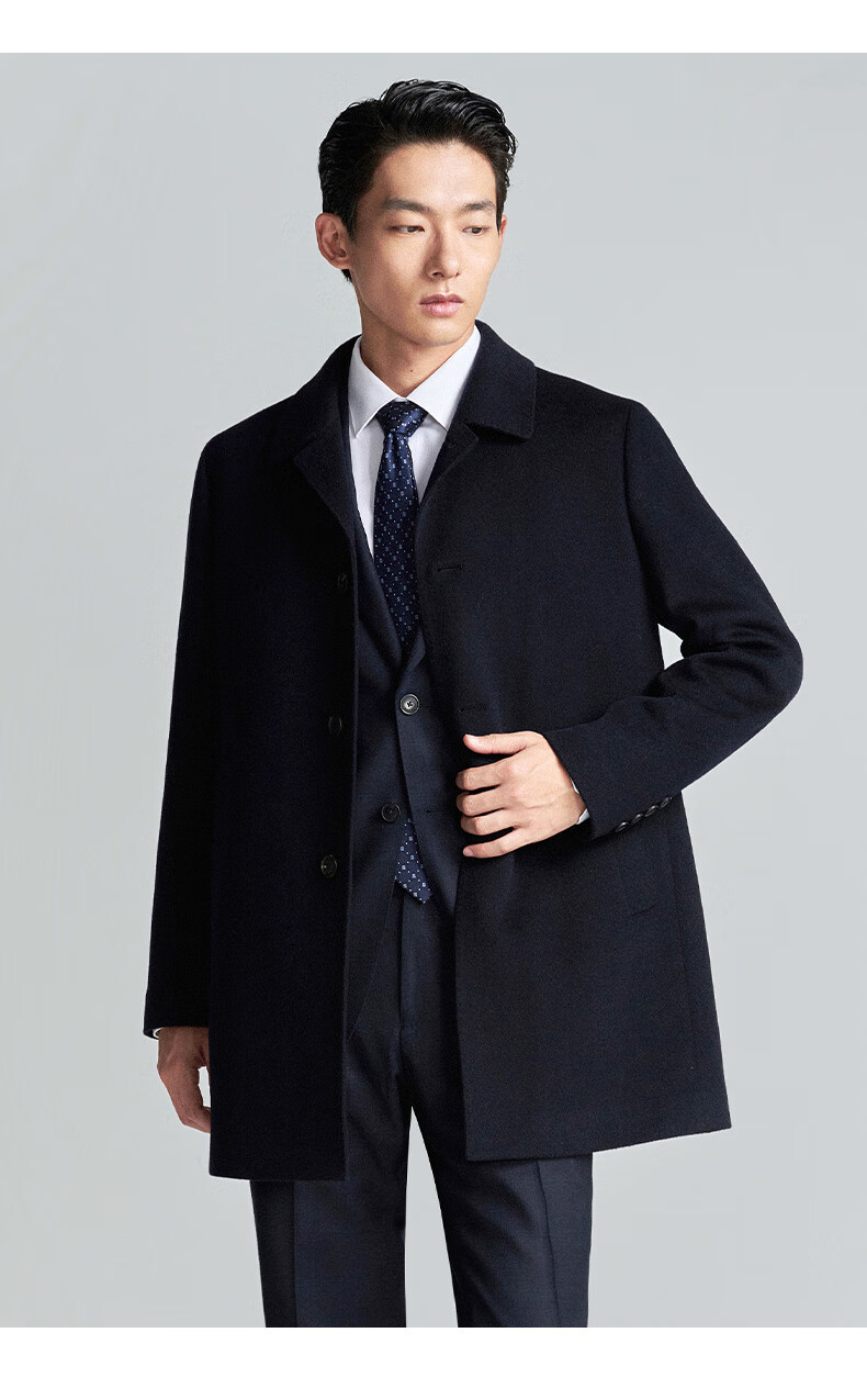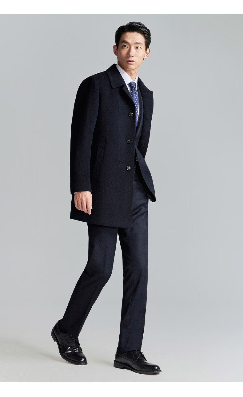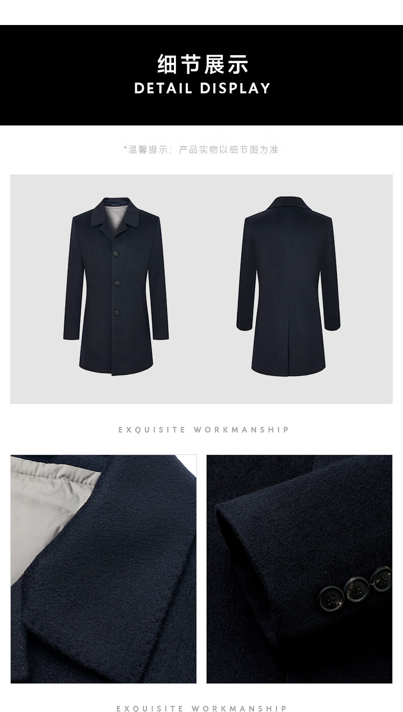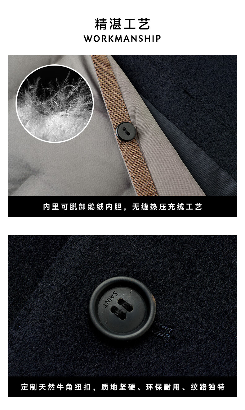 Angel Bird Coat Men's Removable Goose Down Liner Autumn and Winter Men's Fashion Casual Woolen Coat Jacket Men Navy Blue L -48(175/96)