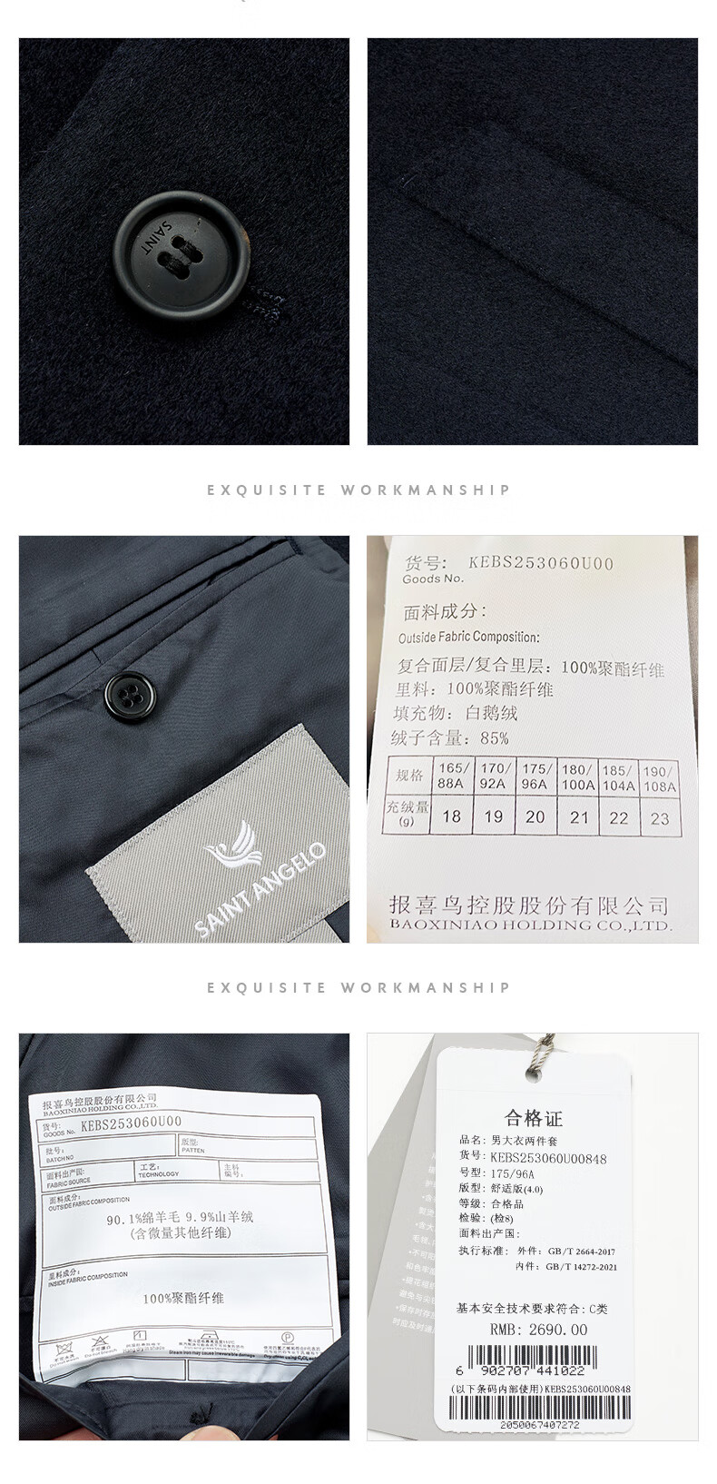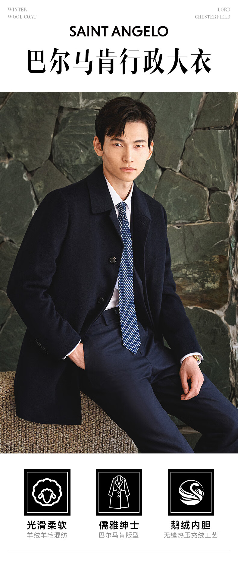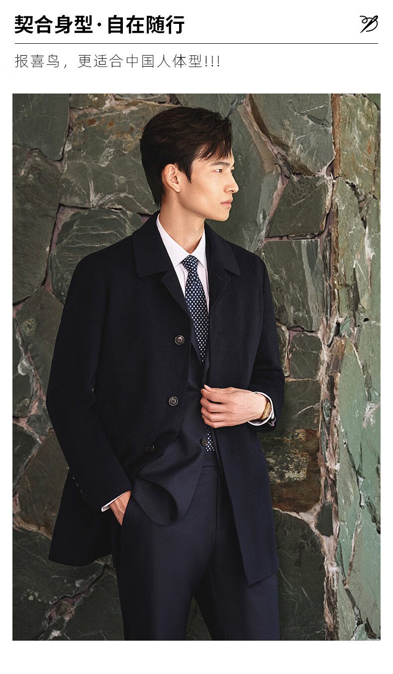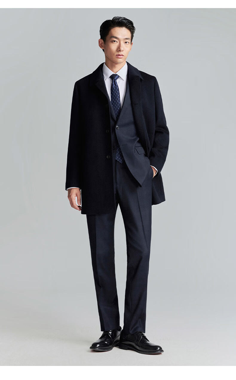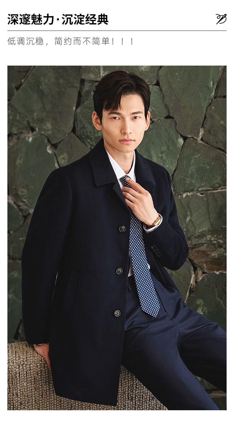 Angel Bird Coat Men's Removable Goose Down Liner Autumn and Winter Men's Fashion Casual Woolen Coat Jacket Men Navy Blue L -48(175/96)