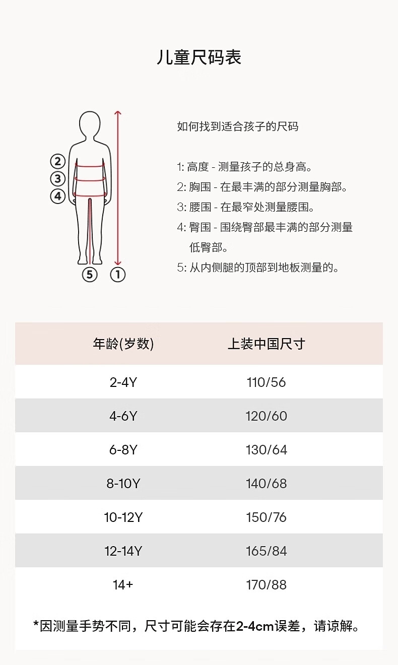 China (cm) 160-165/84-86 165-170 / 88-90 167-172 / 92-96 168-173 / 98-102 170-176 / 106-110