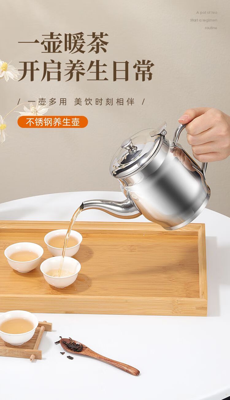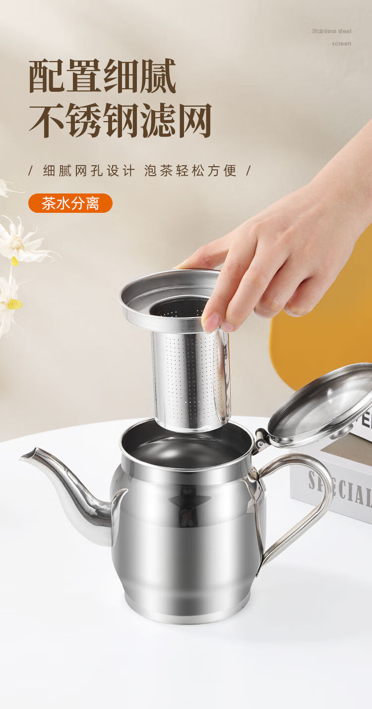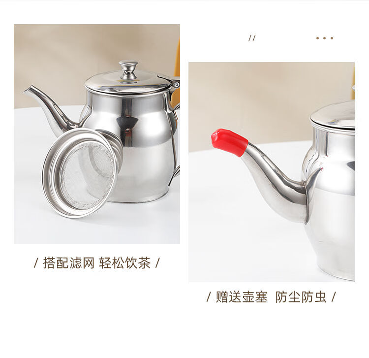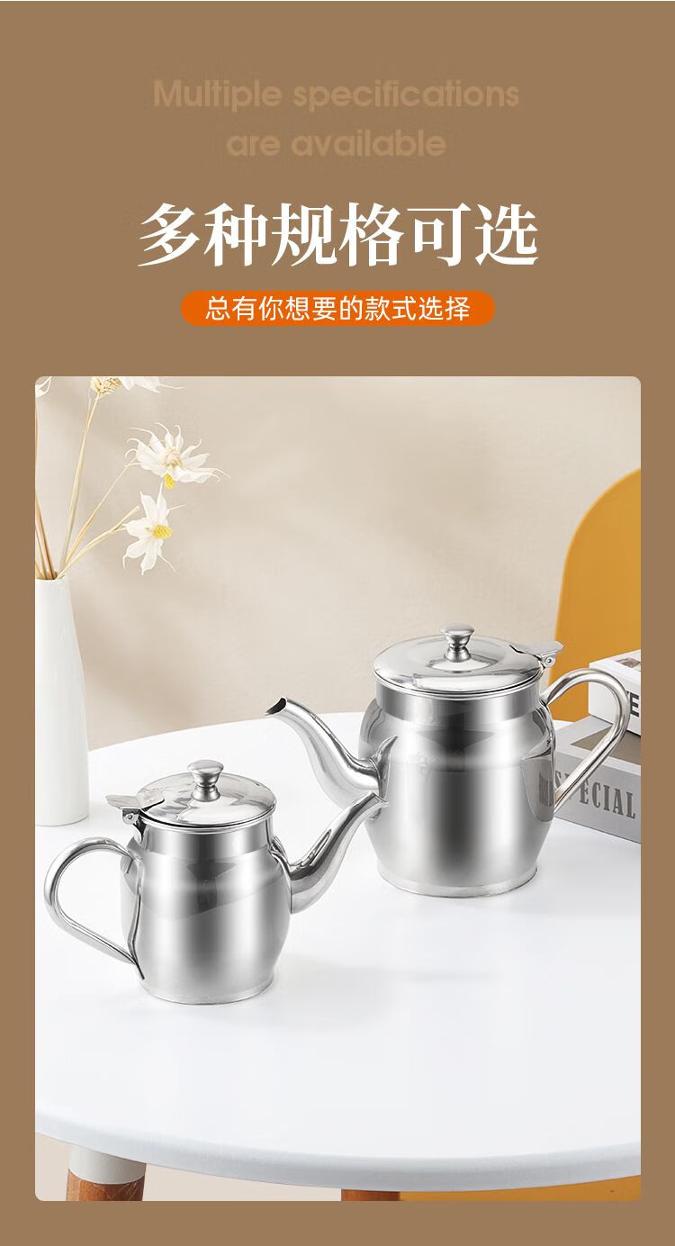 Dual-purpose teapot New stainless steel teapot Dual-purpose oil pot Leak-proof filter kitchen supplies 24 amps Approximately 1Jin Jin is equal to 0.5 kg New style Apple teapot oil pot